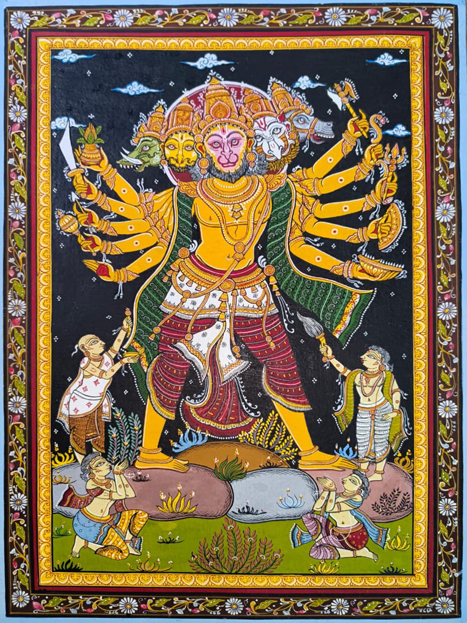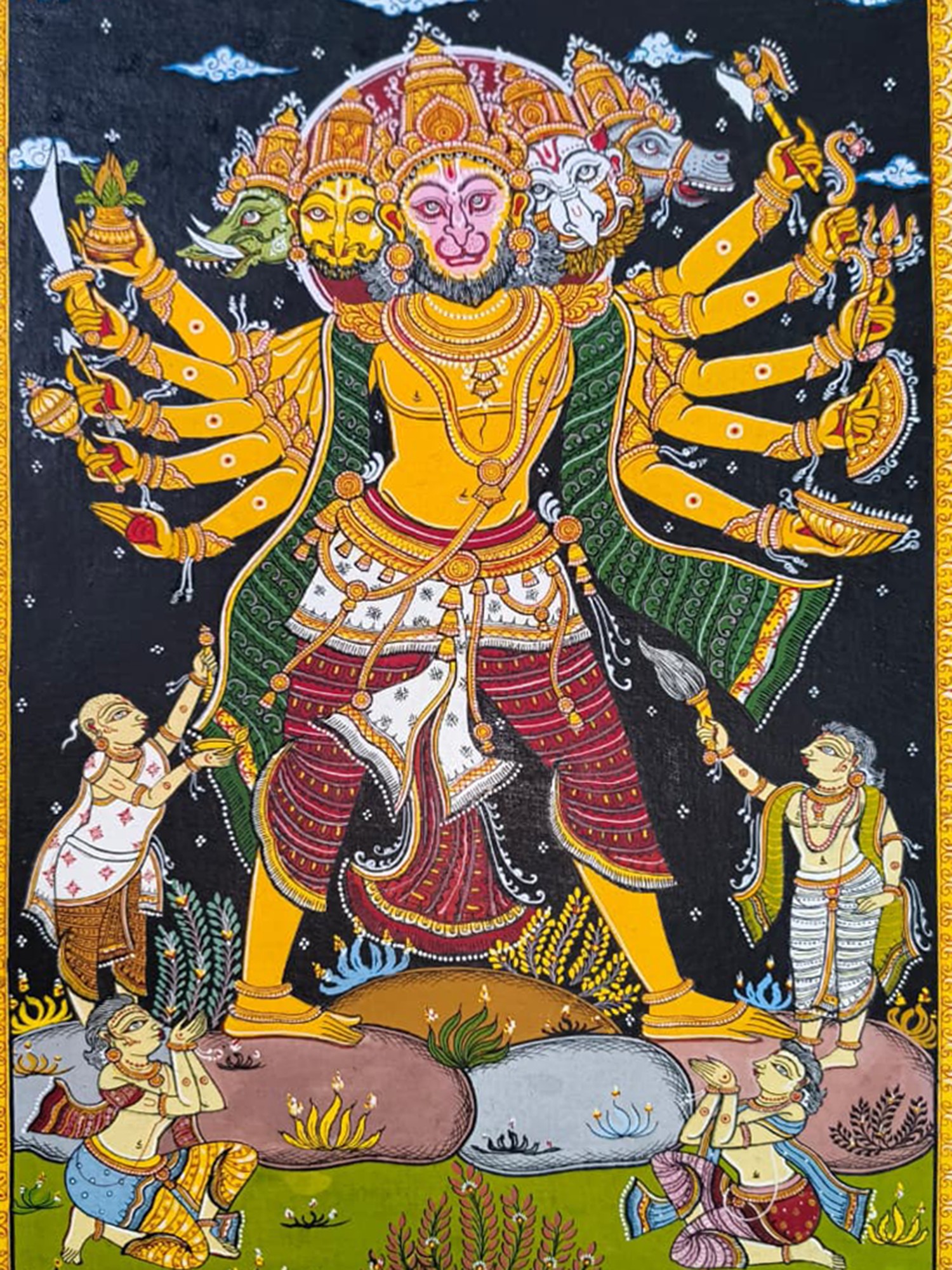 Lord Hanuman - Panchmukhi | Pattachitra Painting | by Akankshya Panda