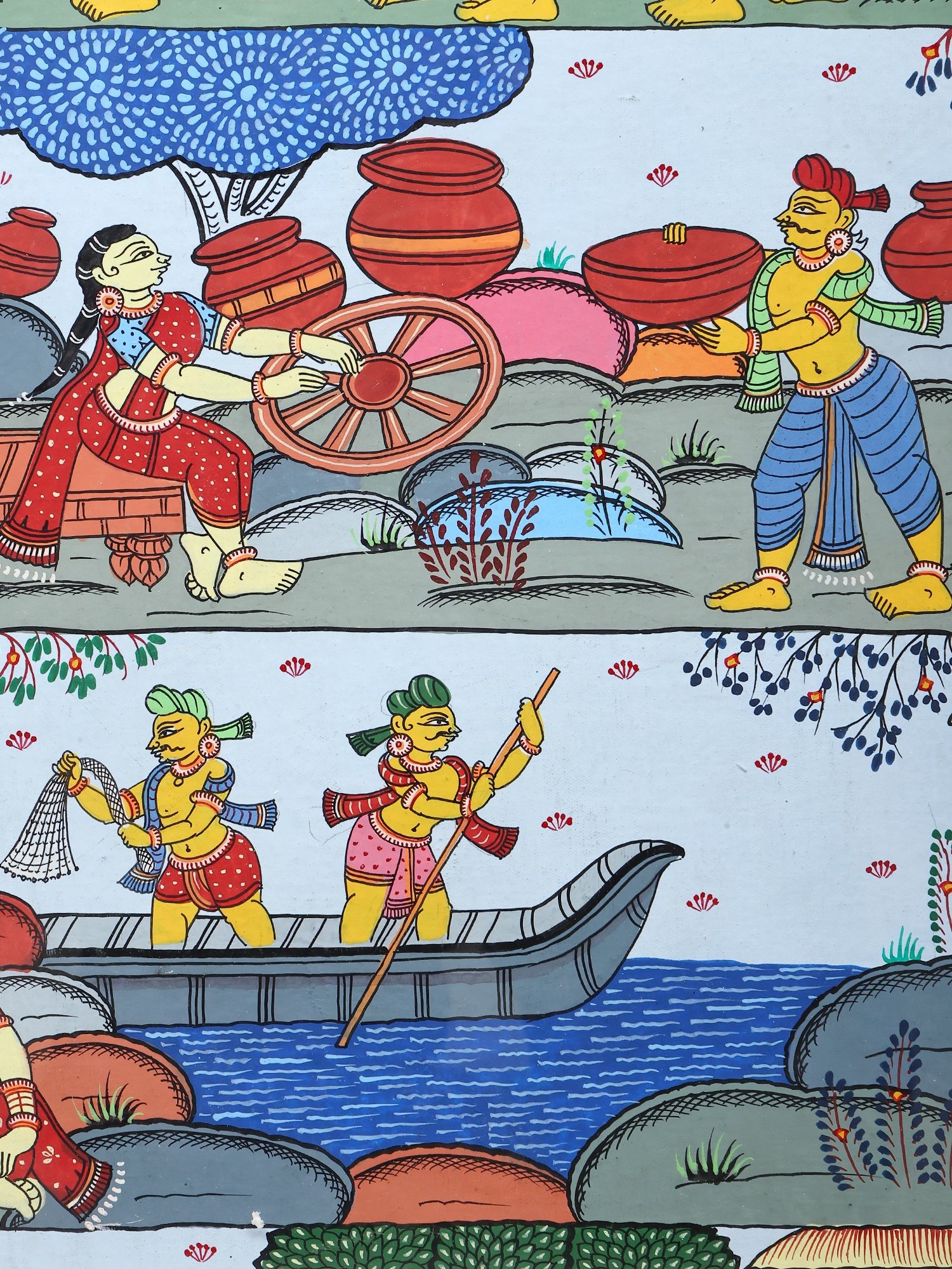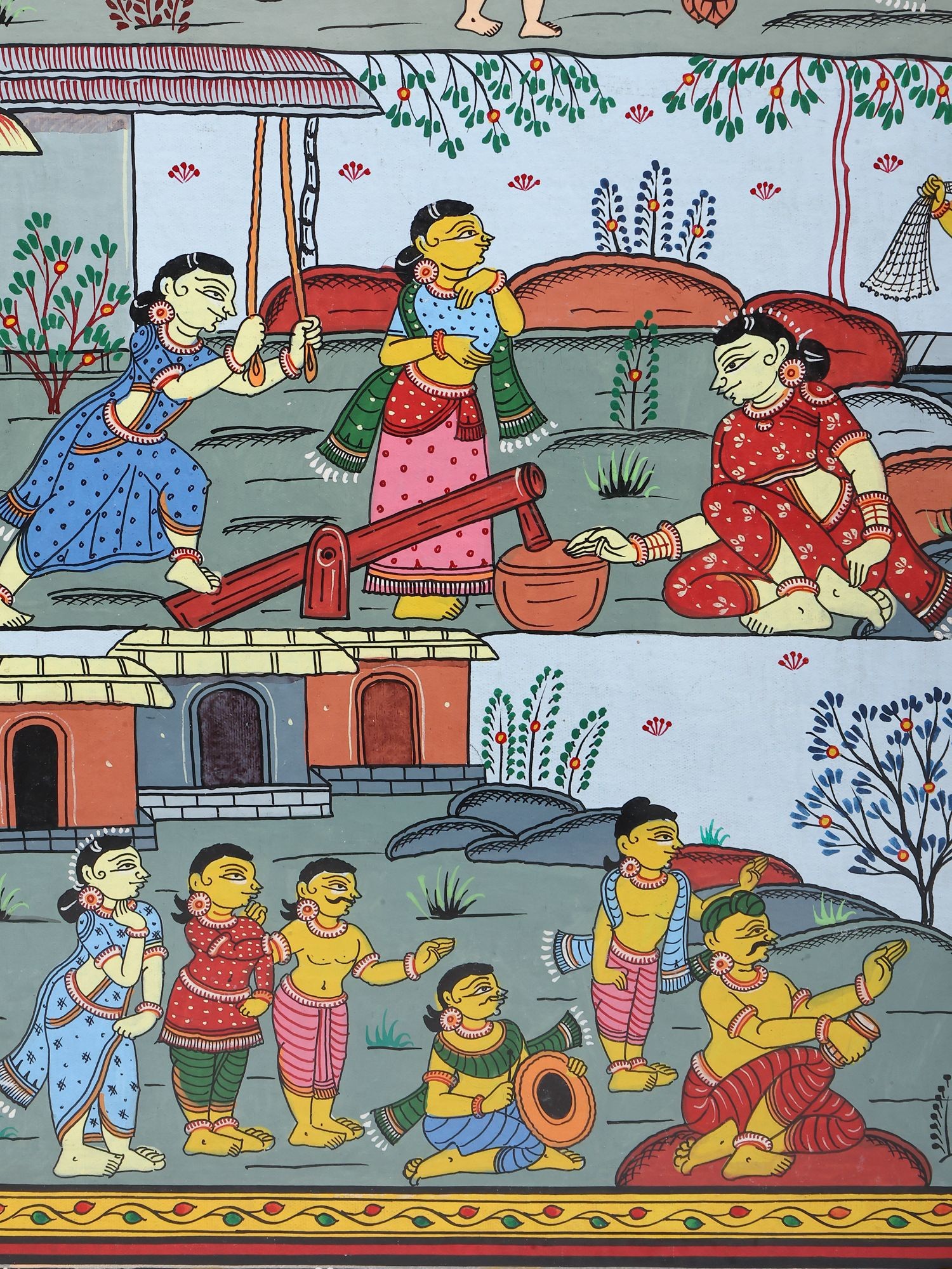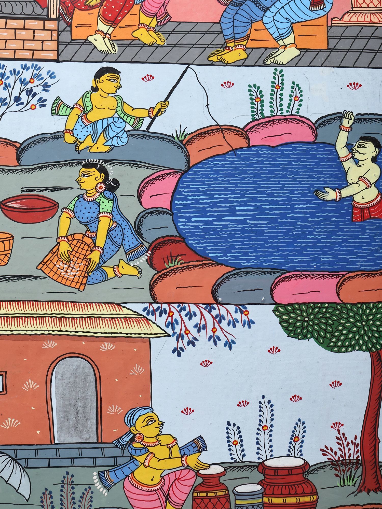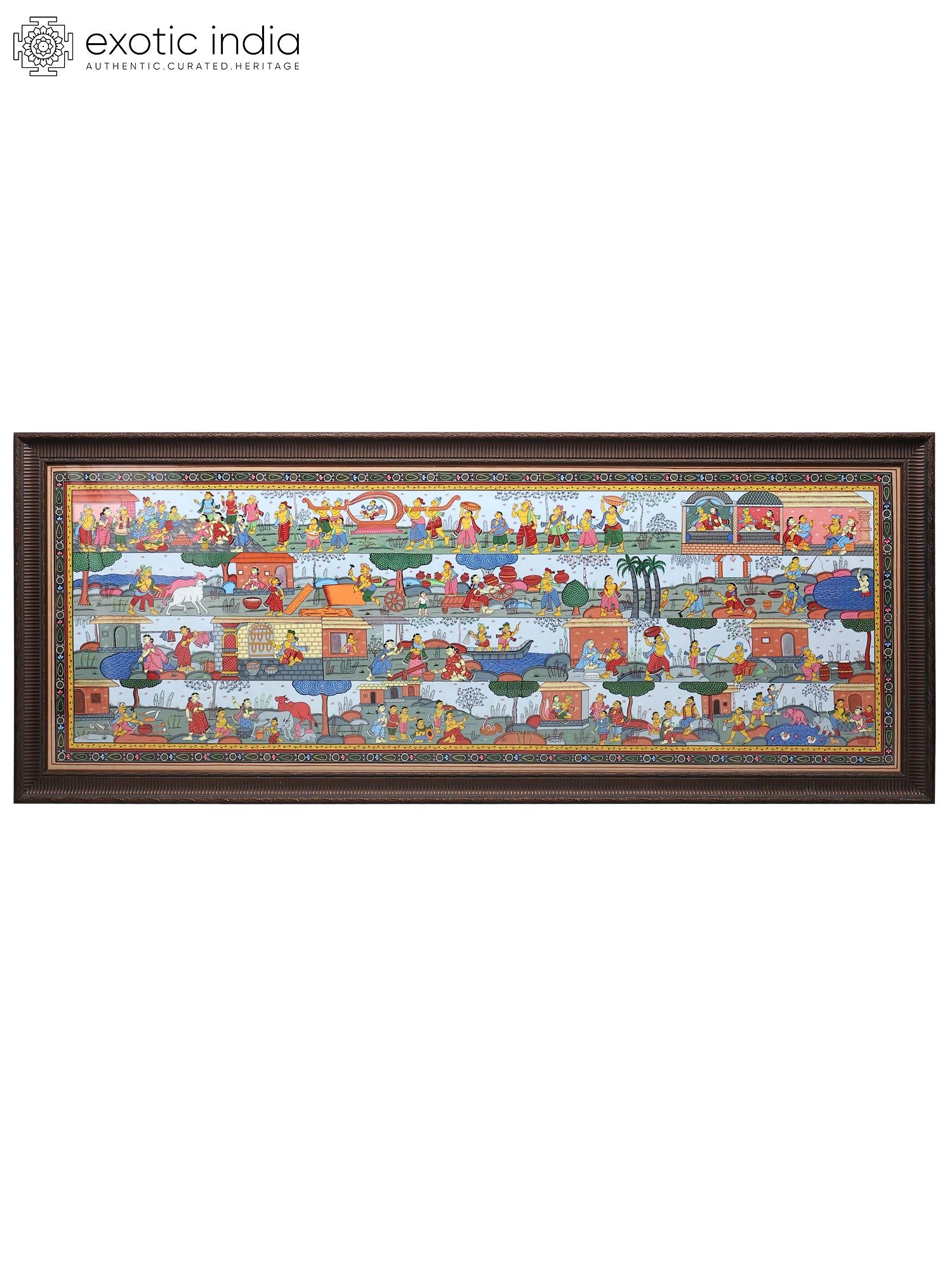 Panoramic Pattachitra Painting: Scenes of Village Life | Without Frame