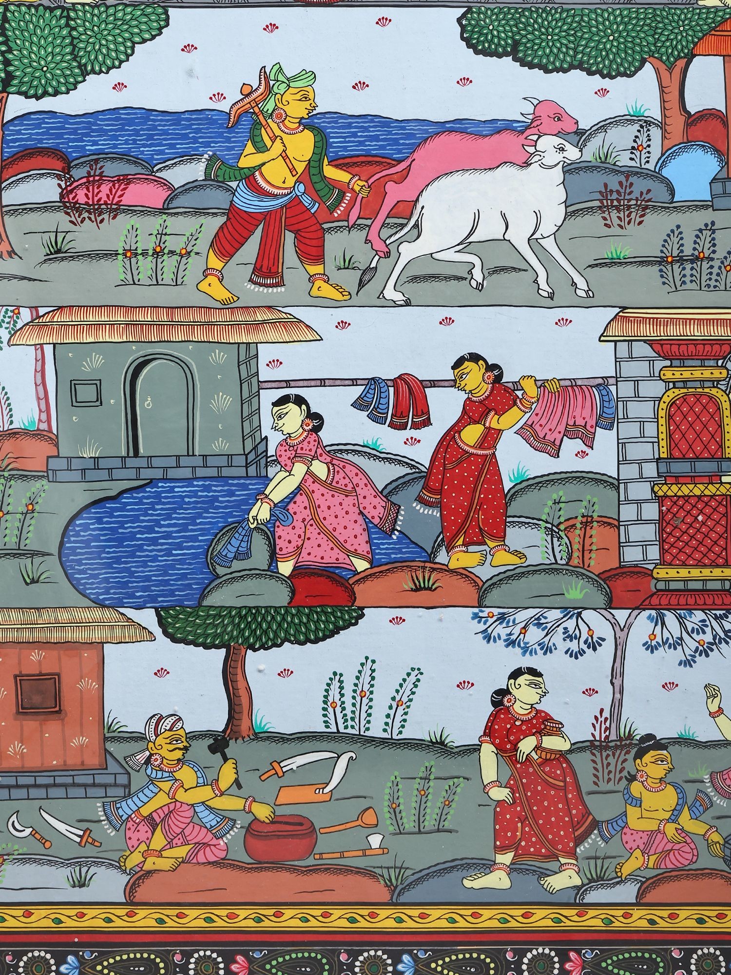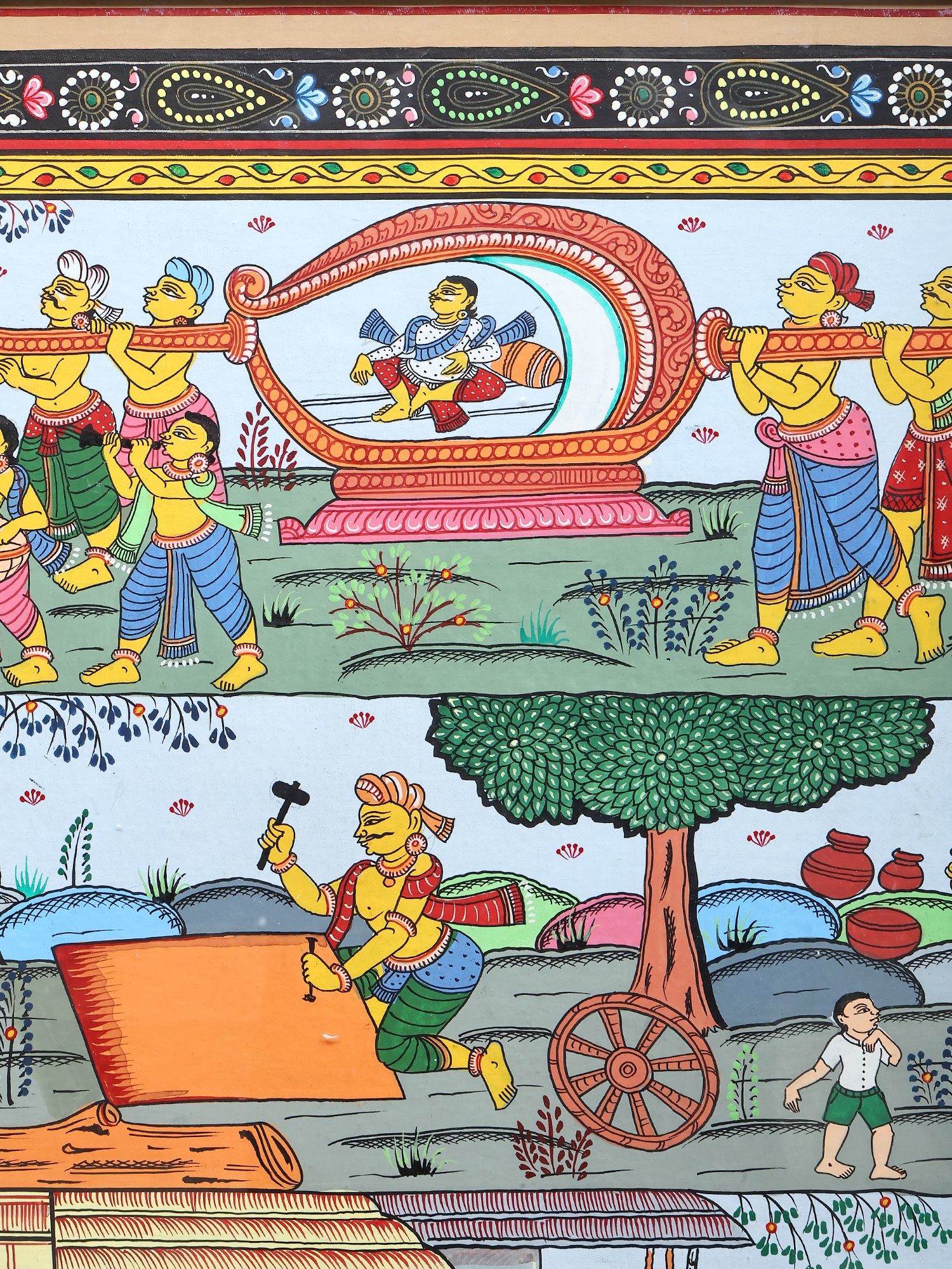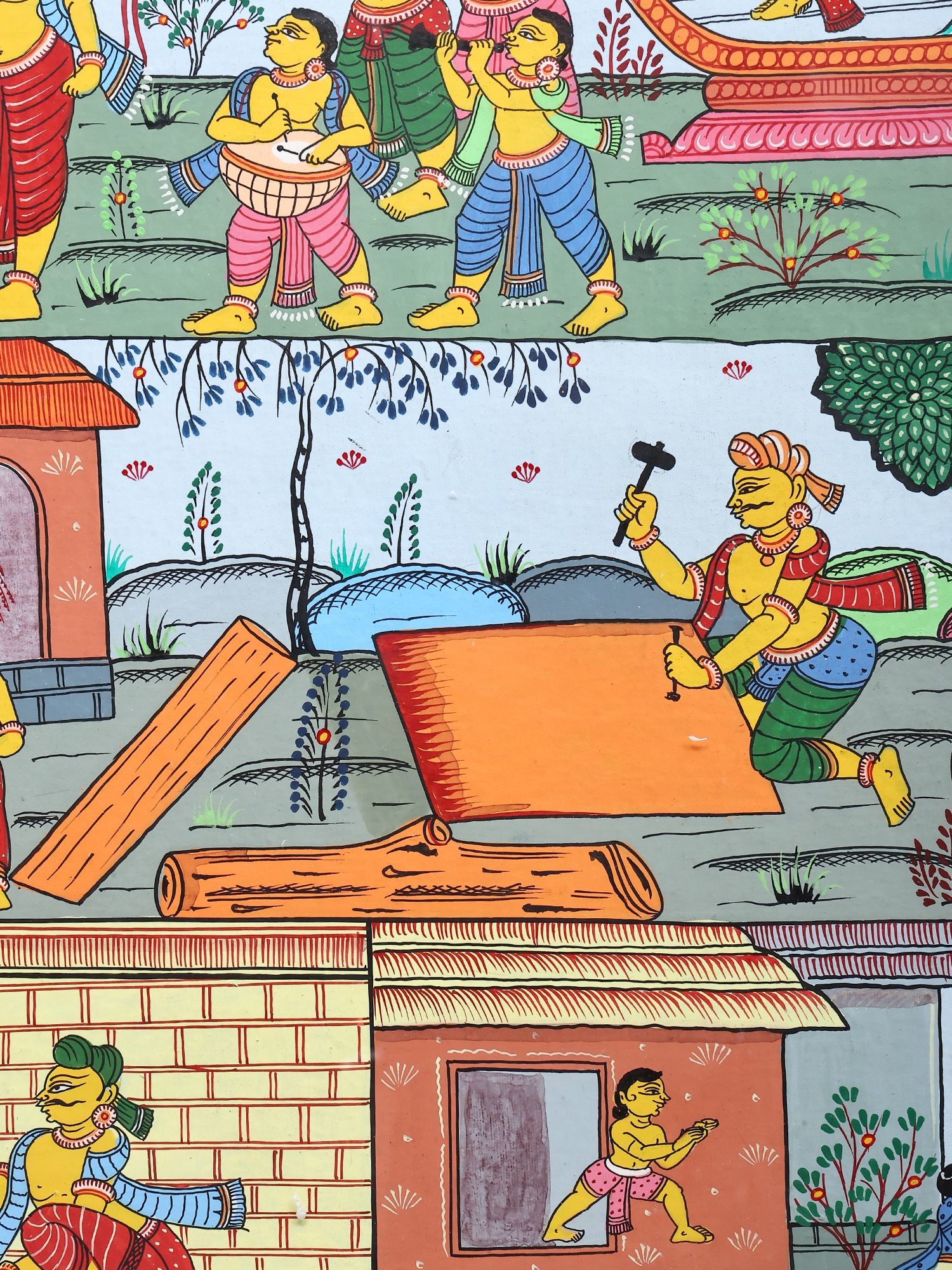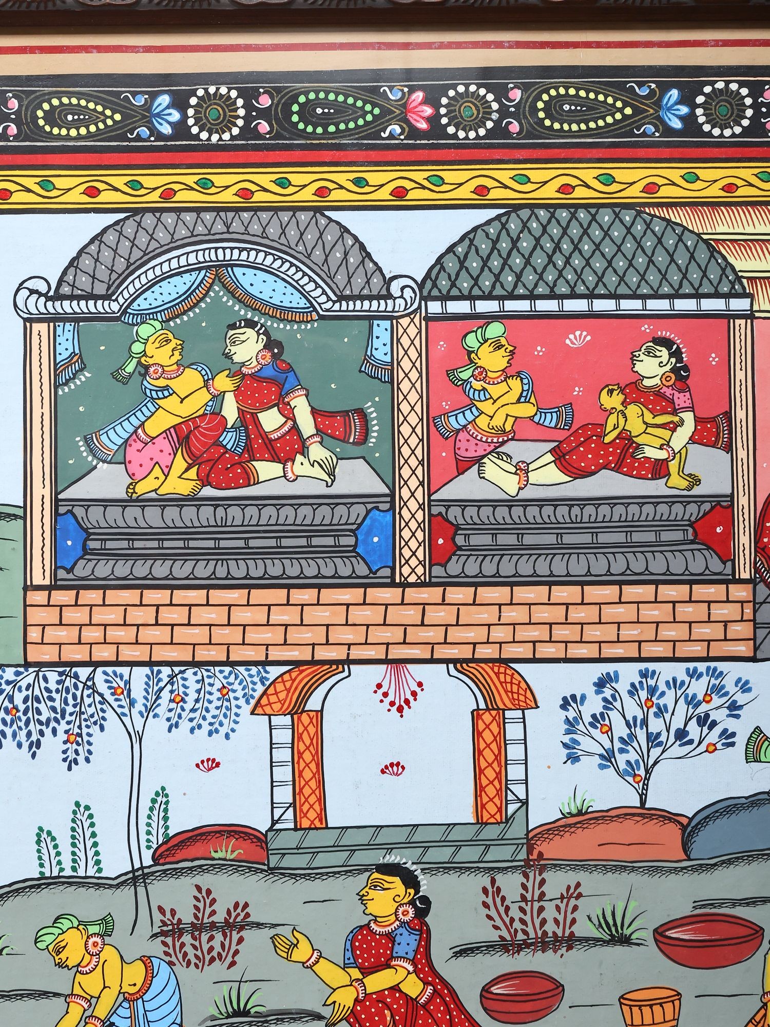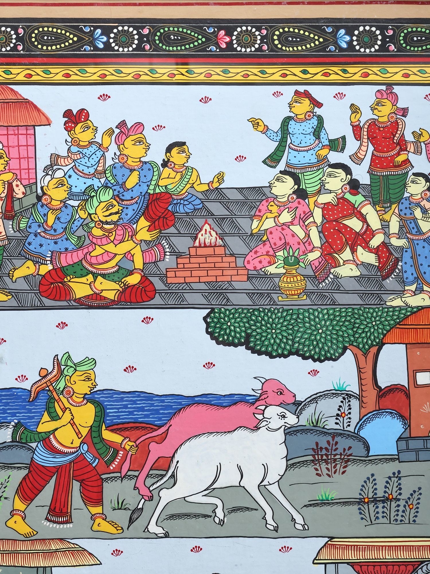 Panoramic Pattachitra Painting: Scenes of Village Life | Without Frame