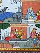 Features a panoramic Pattachitra painting depicting detailed scenes of traditional village life.