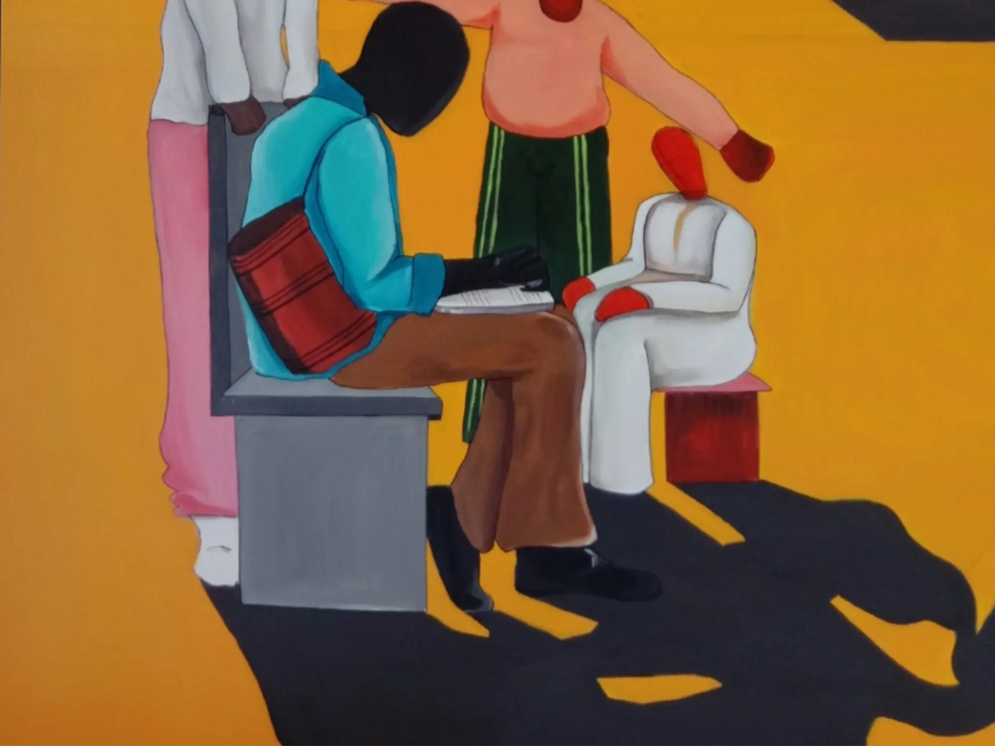 Step into a moment of shared experience, where subtle gestures and bold colors speak volumes about human interaction. This striking acrylic on canvas invites contemplation, offering a unique perspective on everyday encounters and the unspoken bonds that connect us. You'll find yourself drawn into its narrative, exploring the nuances of dialogue and presence.