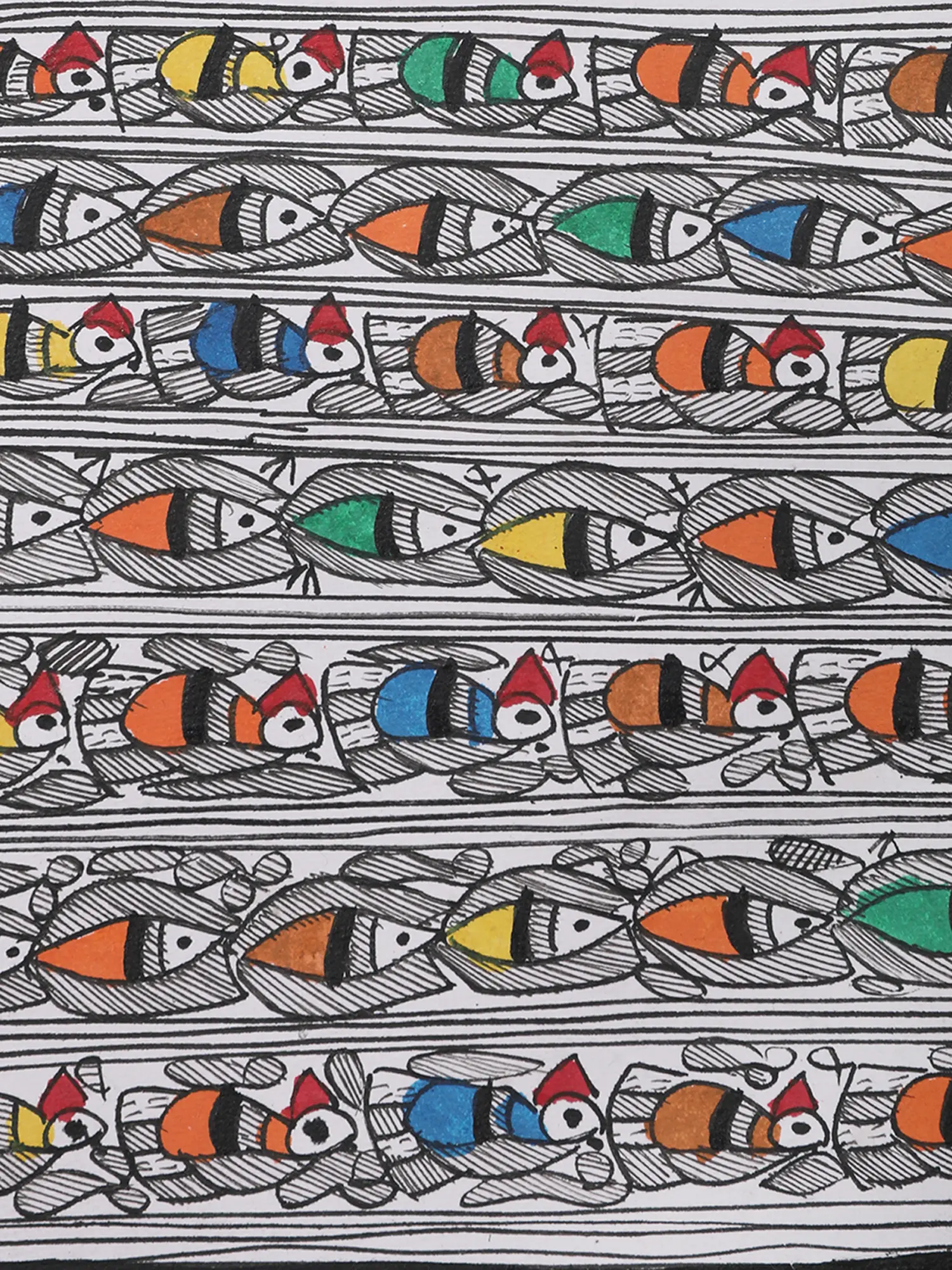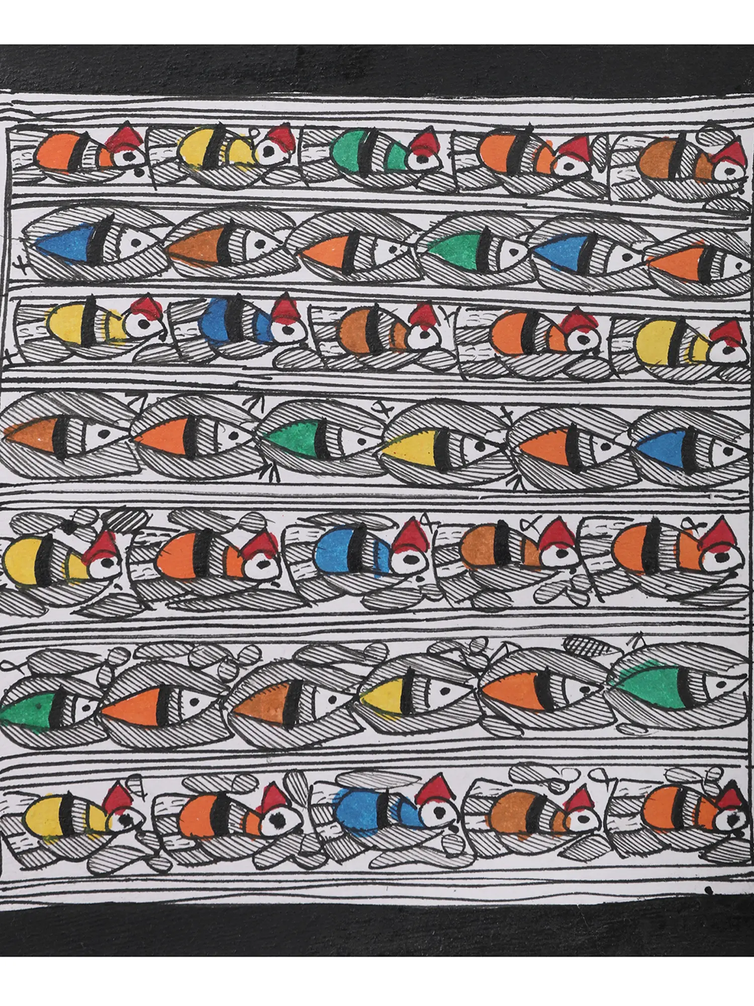 The Pattern of Birds and Fishes by Ajay Kumar Jha, crafted on handmade paper, is an outstanding piece, that seamlessly blends nature's grace with artistic finesse. The intricate detailing of birds and fishes creates a mesmerizing symphony, evoking a sense of tranquility and harmony. Each stroke resonates with the artist's skill, infusing the piece with life and energy.