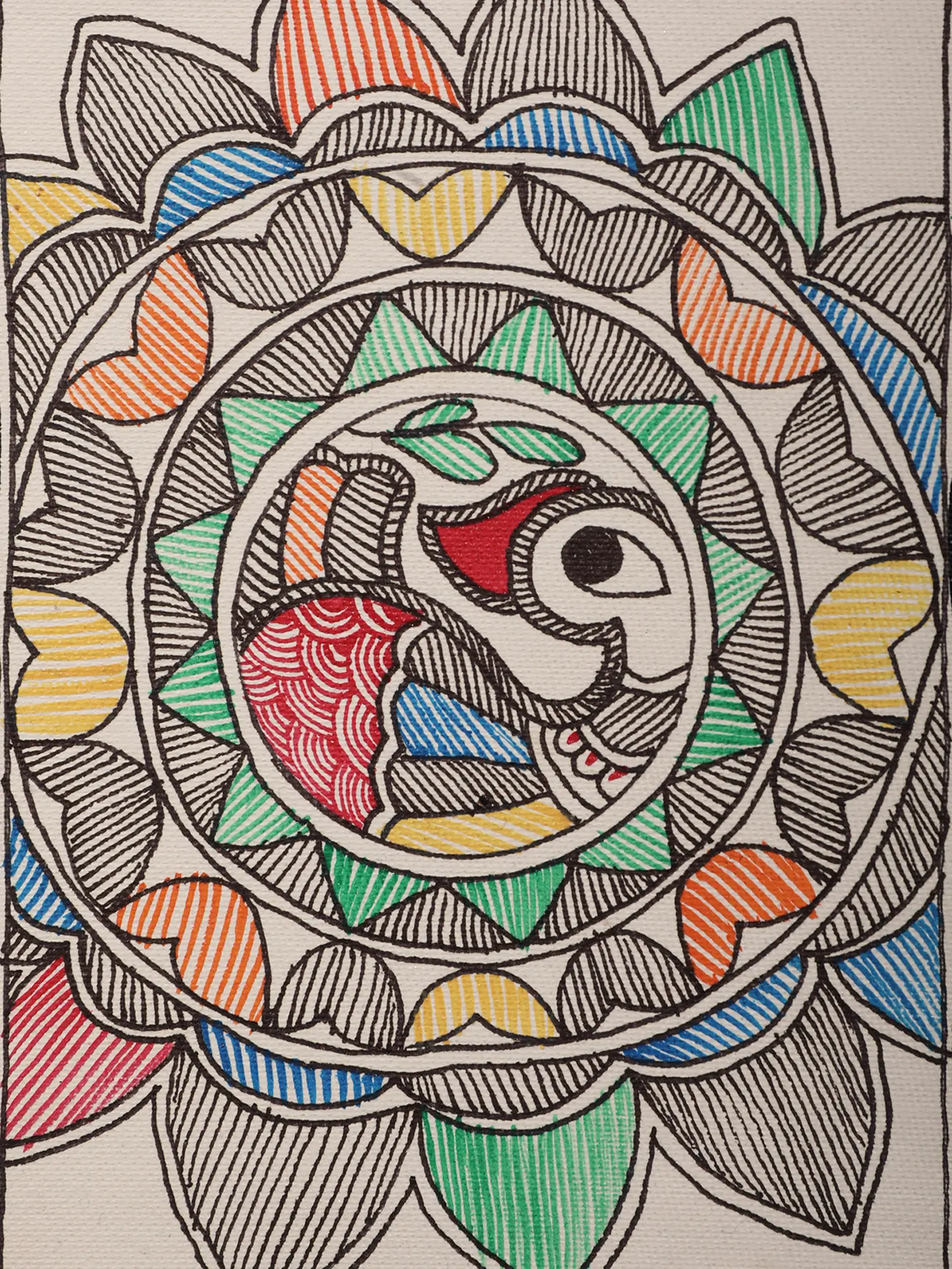 Madhubani paintings, also known as Mithila art, have a history stretching back centuries. Legend has it that this art form originated during the time of the Ramayana, when King Janaka commissioned artists to paint scenes of Sita's wedding. Traditionally, Madhubani paintings were created on freshly plastered mud walls and floors of homes, using natural dyes extracted from plants and minerals. Over time, the art form transitioned to paper and cloth, allowing it to reach a wider audience while still retaining its unique style and cultural significance. Madhubani art is characterised by bold outlines, geometric patterns, and the use of vibrant colours like red, yellow, blue, and green. These colours are derived from natural sources such as turmeric, sandalwood, and indigo. The paintings often depict themes from Hindu mythology, folklore, and everyday life, providing a glimpse into the rich cultural tapestry of the Mithila region.