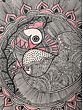In Indian mythology, the peacock holds a place of great significance, often associated with the goddess Lakshmi, the deity of wealth and prosperity. Its iridescent plumage symbolizes beauty, grace, and divinity. The peacock is also linked to Lord Krishna, who is frequently depicted adorned with peacock feathers, representing love, devotion, and the divine dance of creation. In this artwork, the peacock's central placement suggests a powerful presence, radiating beauty and spiritual significance. The detailed rendering of its feathers showcases the artist's mastery and dedication to the traditional Madhubani style.