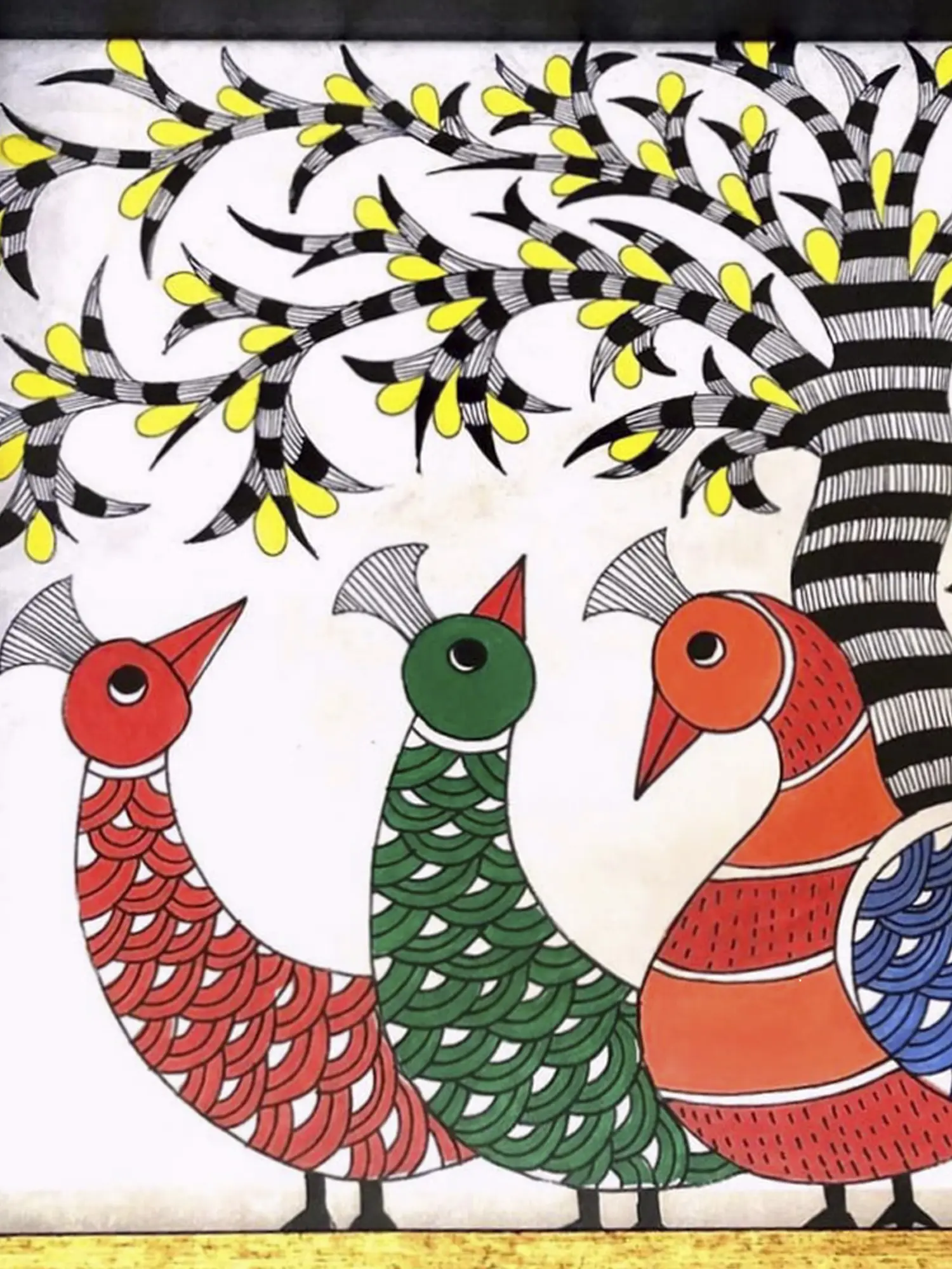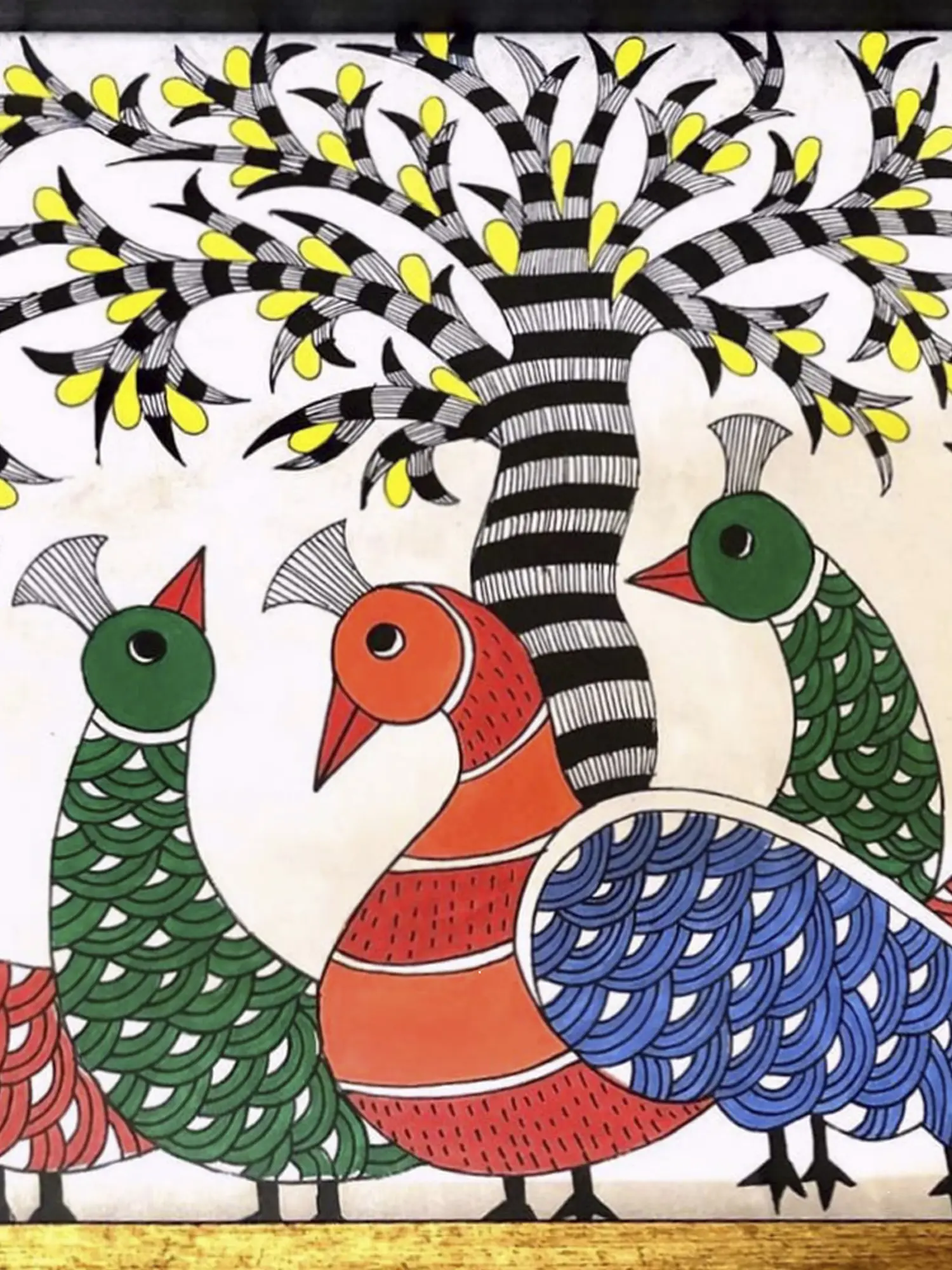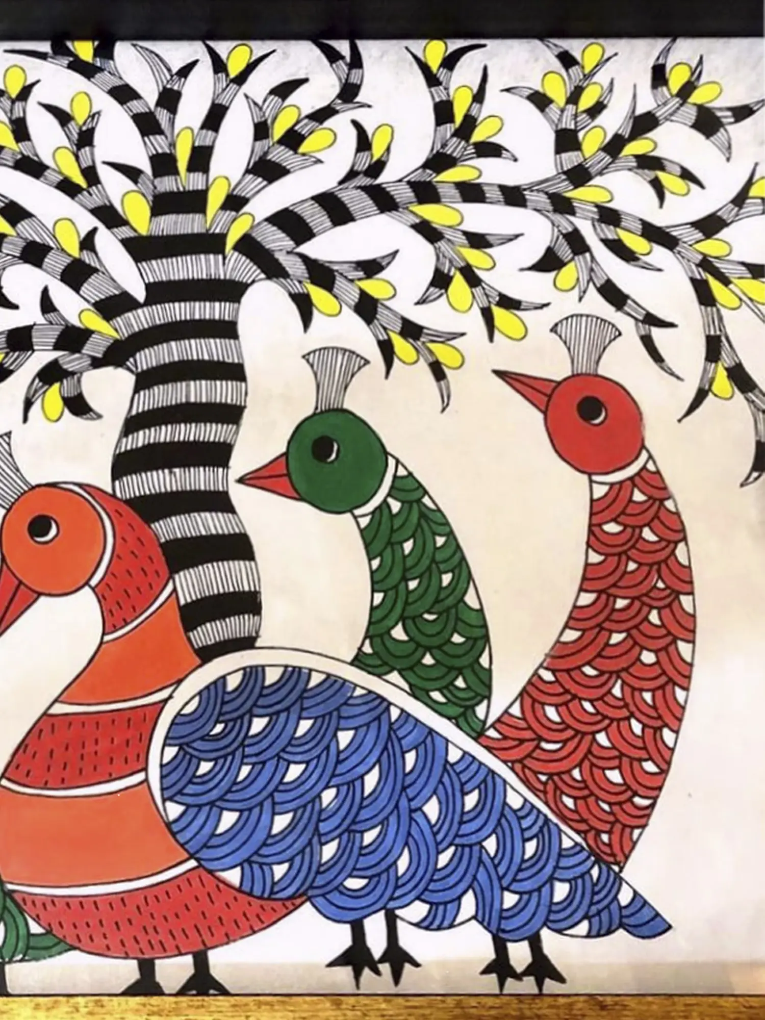 In a symphony of colours, the acrylic painting "Mayuras Under the Tree" transports viewers to a serene oasis of natural beauty. The majestic peacocks, adorned with resplendent plumage, find solace under the sheltering embrace of the ancient tree. Each brushstroke captures the essence of tranquillity and harmony, inviting observers to immerse themselves in the timeless rhythms of nature. The artwork resonates with the vibrant hues of life, celebrating the exquisite beauty of creation in all its splendour.
