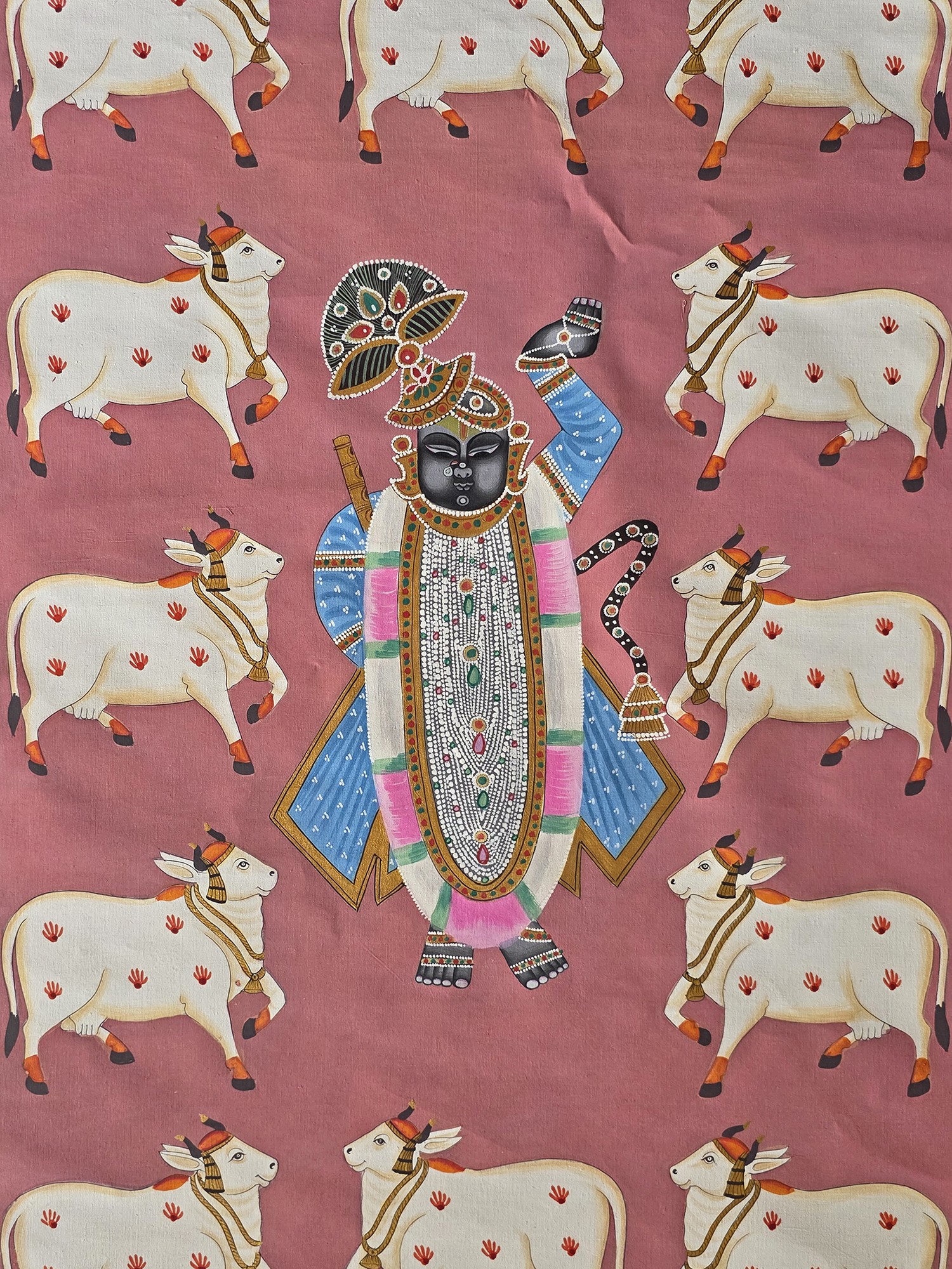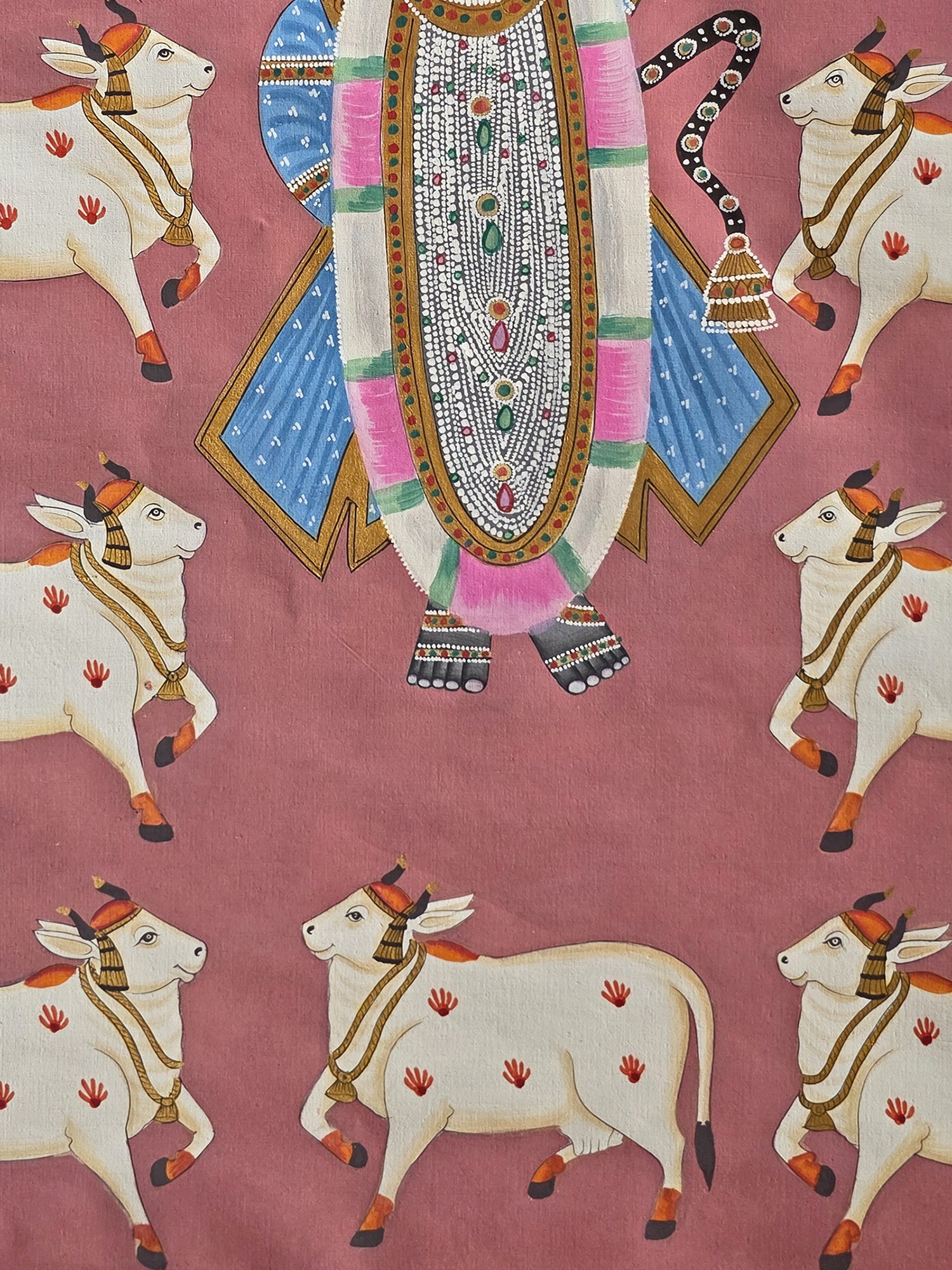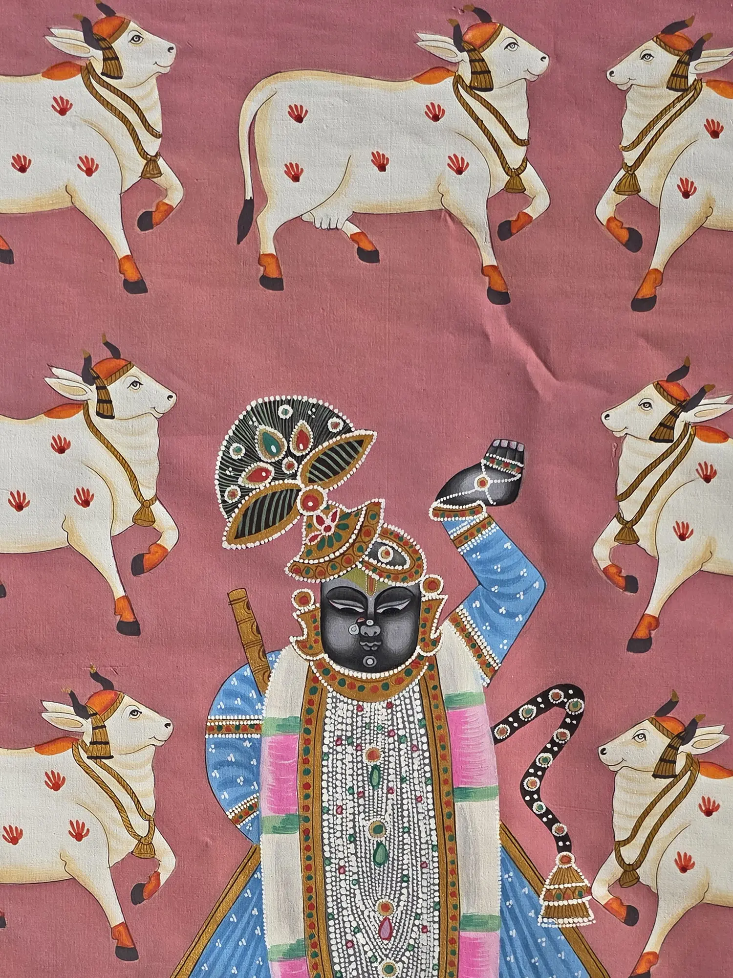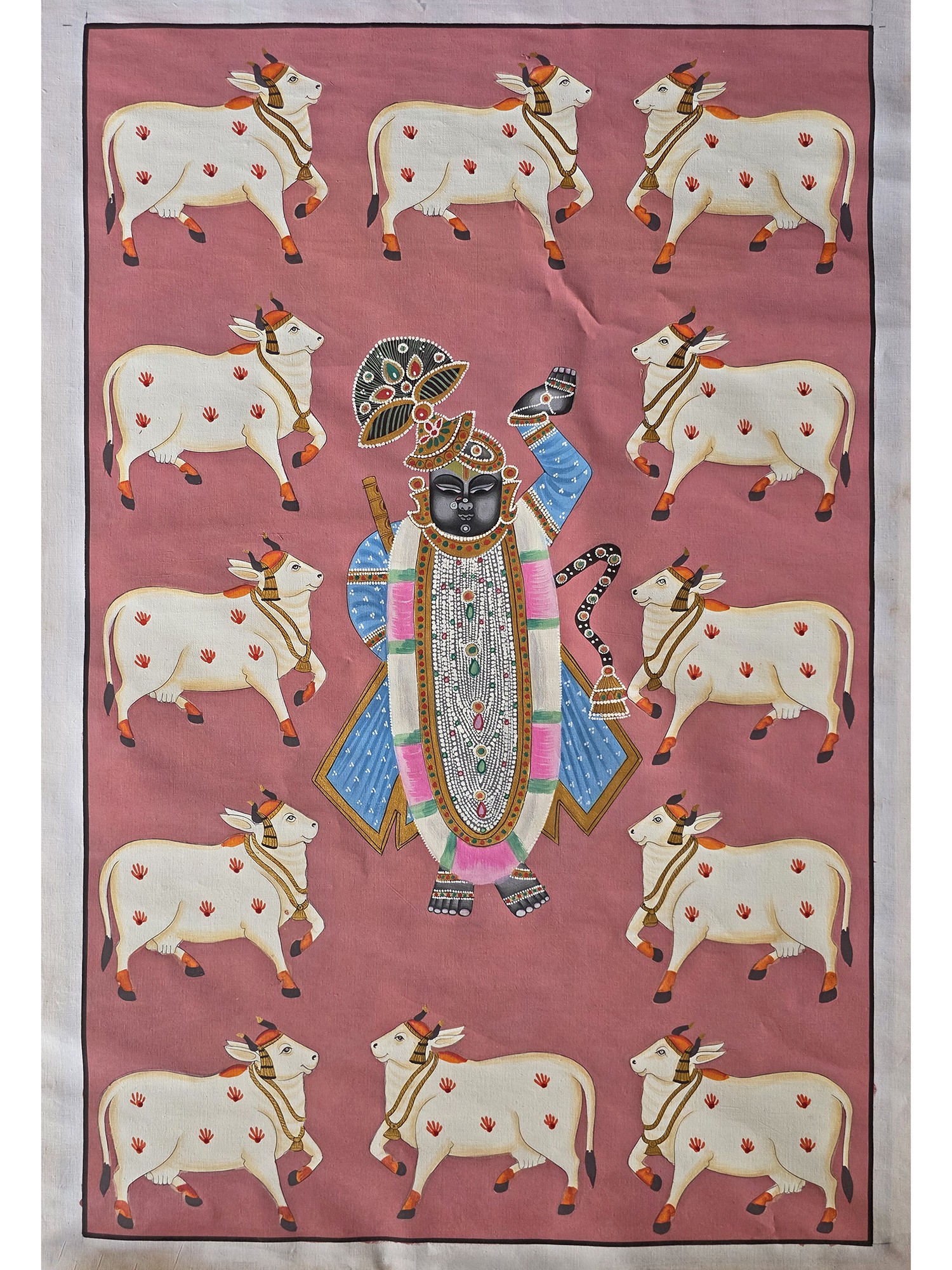 Lord Shrinathji With Cow | Pichwai Art | Watercolor On Cotton