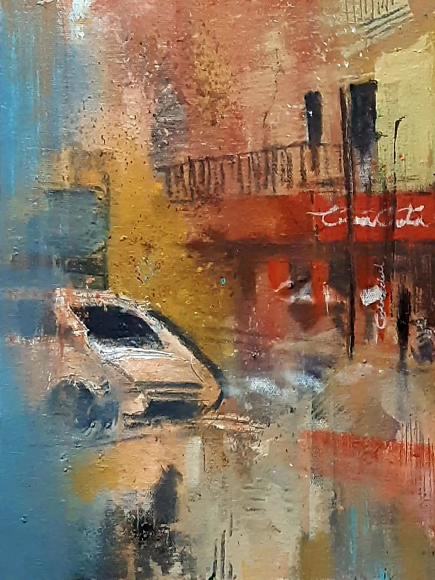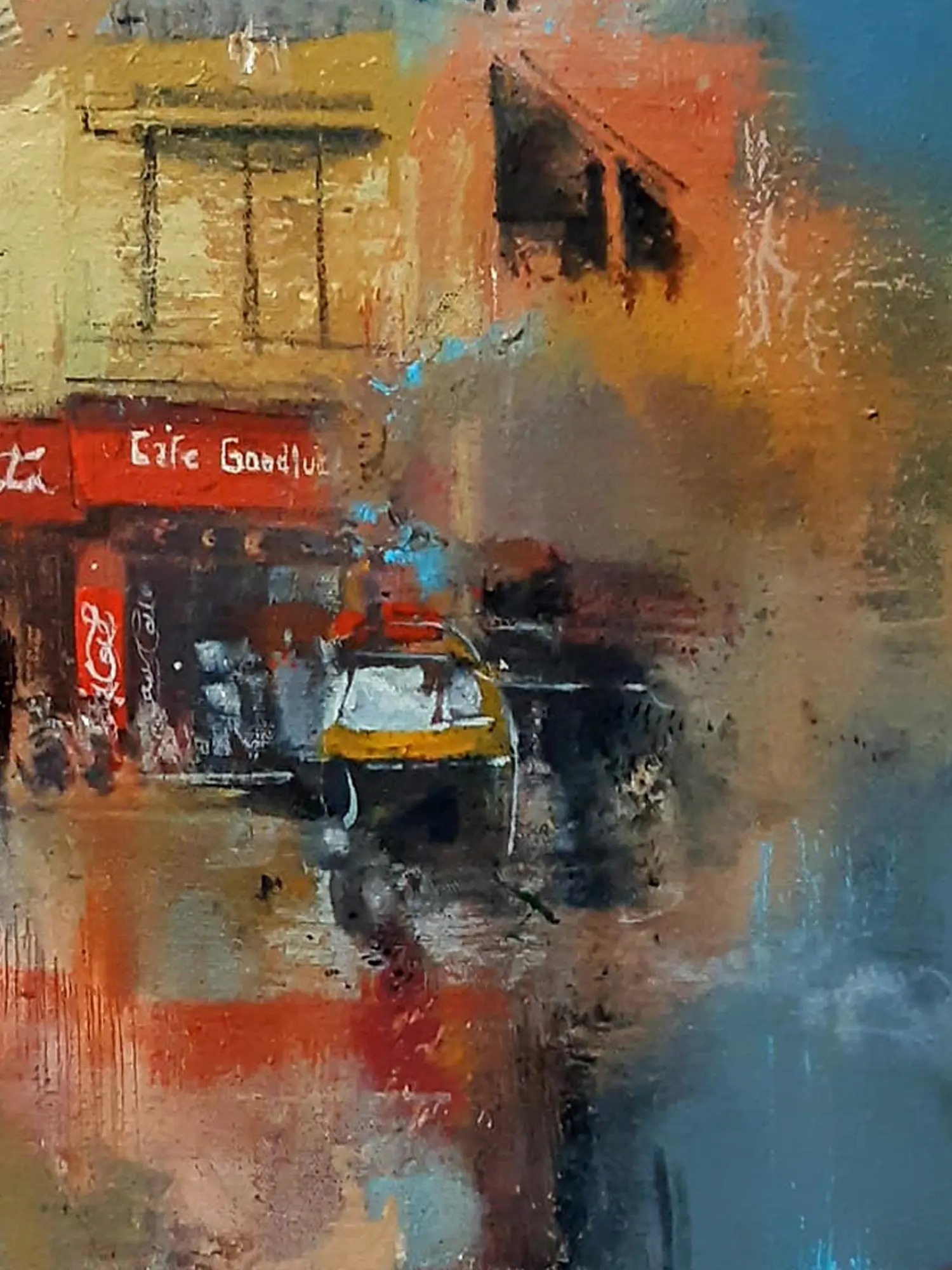 Experience the vibrant energy of a city street captured with an emotive, impressionistic flair. You'll be drawn into a moment alive with atmosphere, where the mundane is transformed into a captivating visual symphony. This artwork invites you to pause and contemplate the beauty found in the everyday.