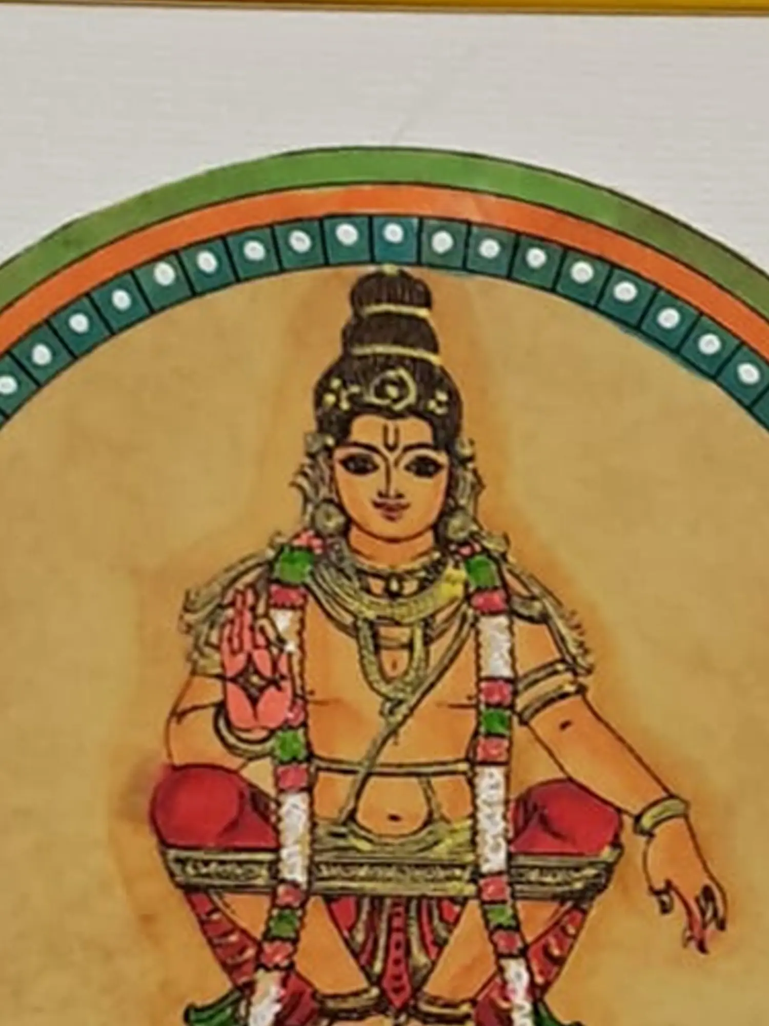 Babita's artistic rendition not only captures the visual aesthetics of Lord Ayyappa but also conveys a sense of spiritual tranquility, making this artwork a harmonious blend of cultural richness and devotional depth in a compact and intricate form.