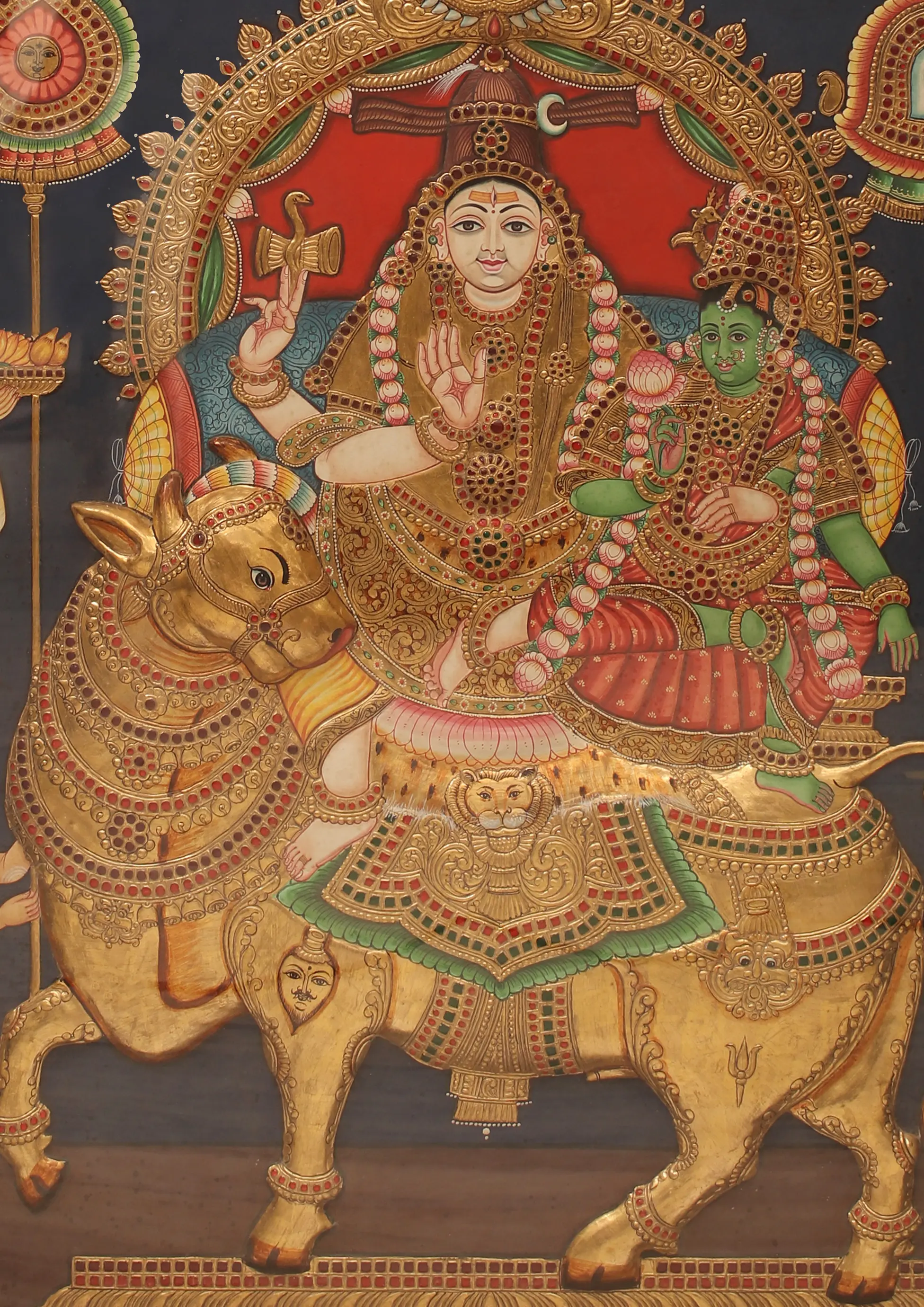 Tanjore Painting of Pradosh Murti Shiva Parvati | Traditional Colour With 24 Karat Gold
