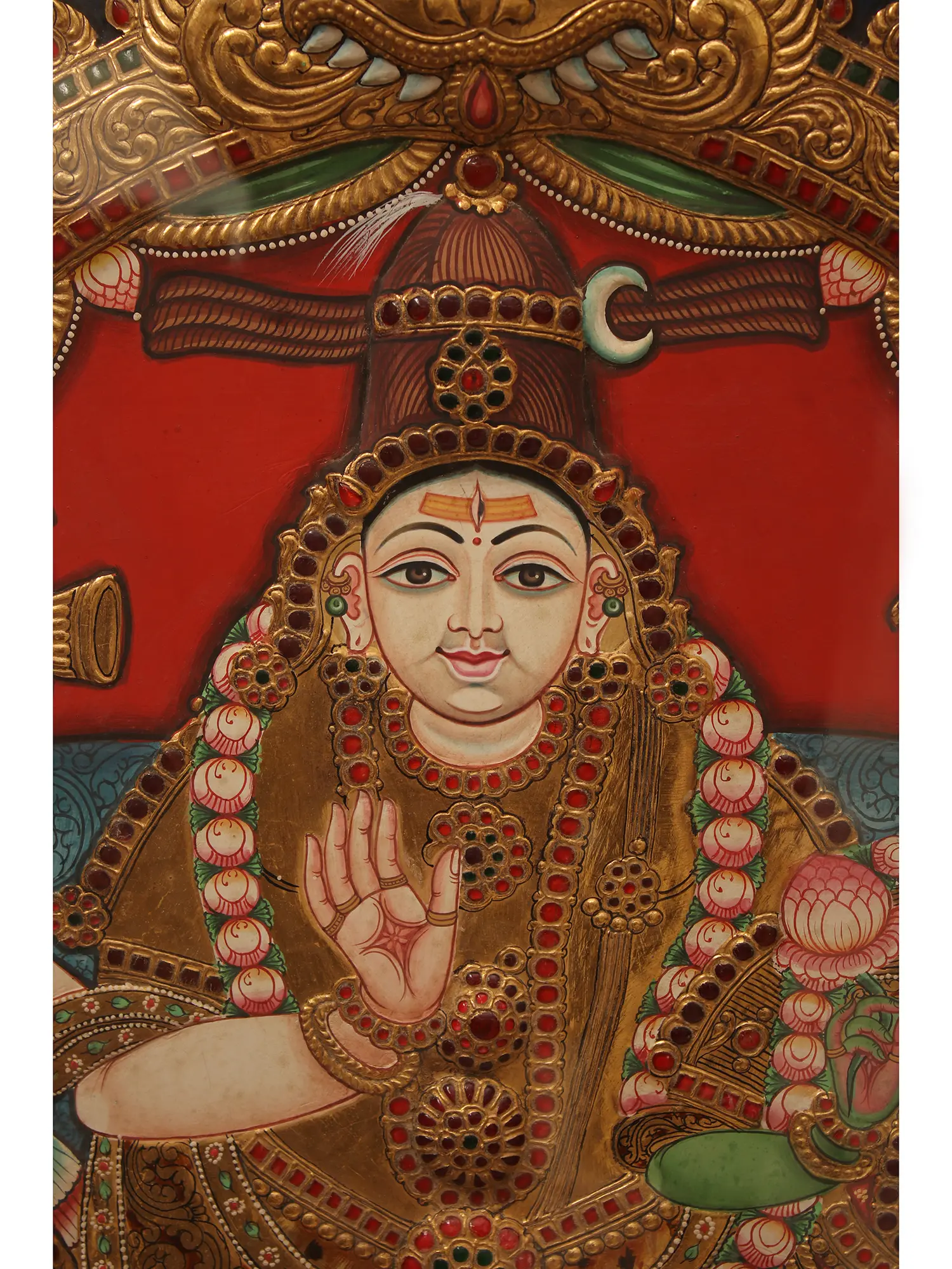 Blessing Shiva Parvati Tanjore Painting with Wooden Framed