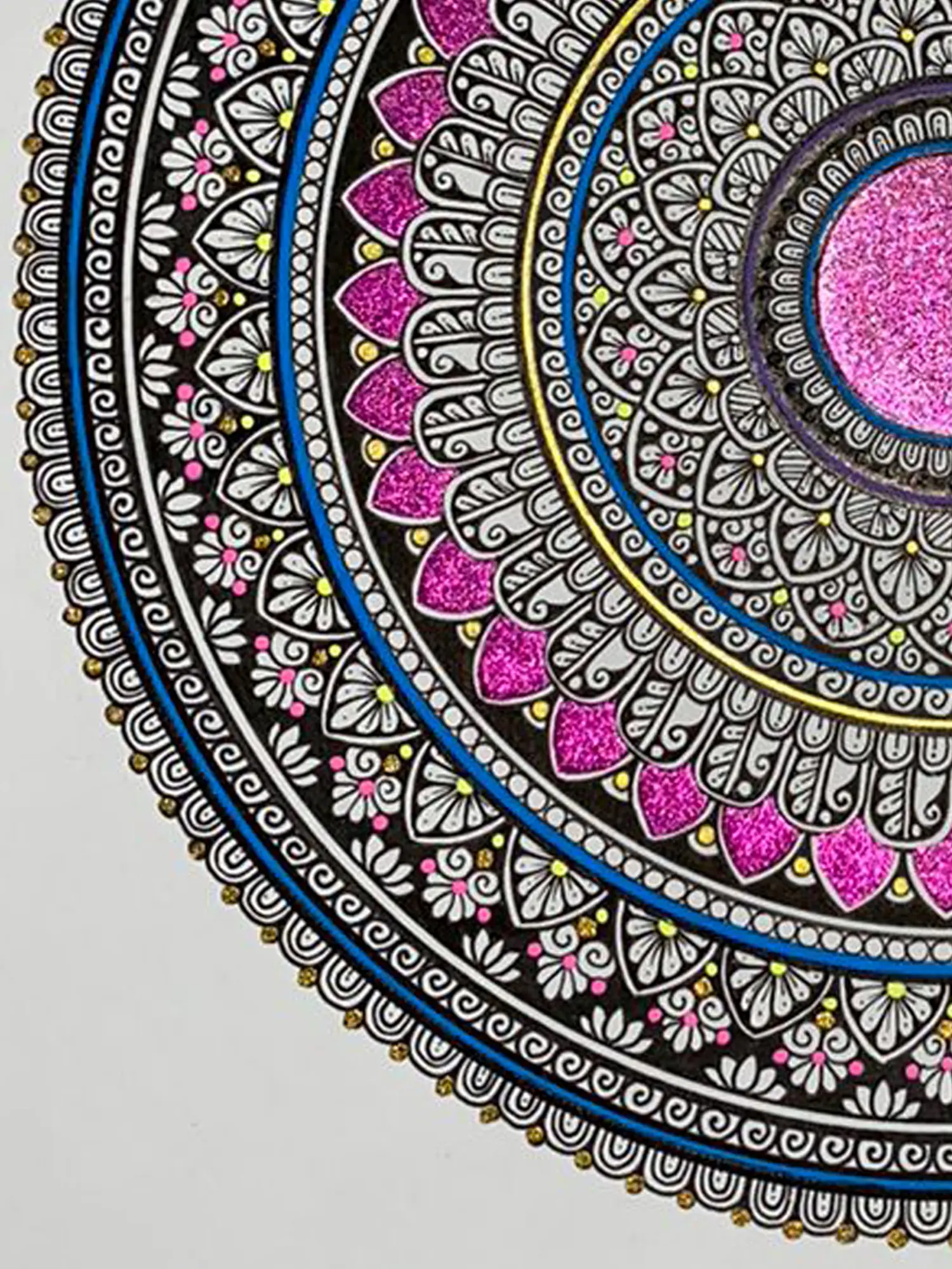 In the enchanting realm of Purple Highlights - Art of Mandala, the interplay of colour and form creates a captivating tapestry of beauty and spiritual depth. Against the backdrop of cosmic indigo, vibrant hues of purple dance and swirl in intricate patterns, evoking a sense of mystique and magic. Each brushstroke captures the essence of divine inspiration, inviting viewers to embark on a journey of inner exploration and self-discovery.