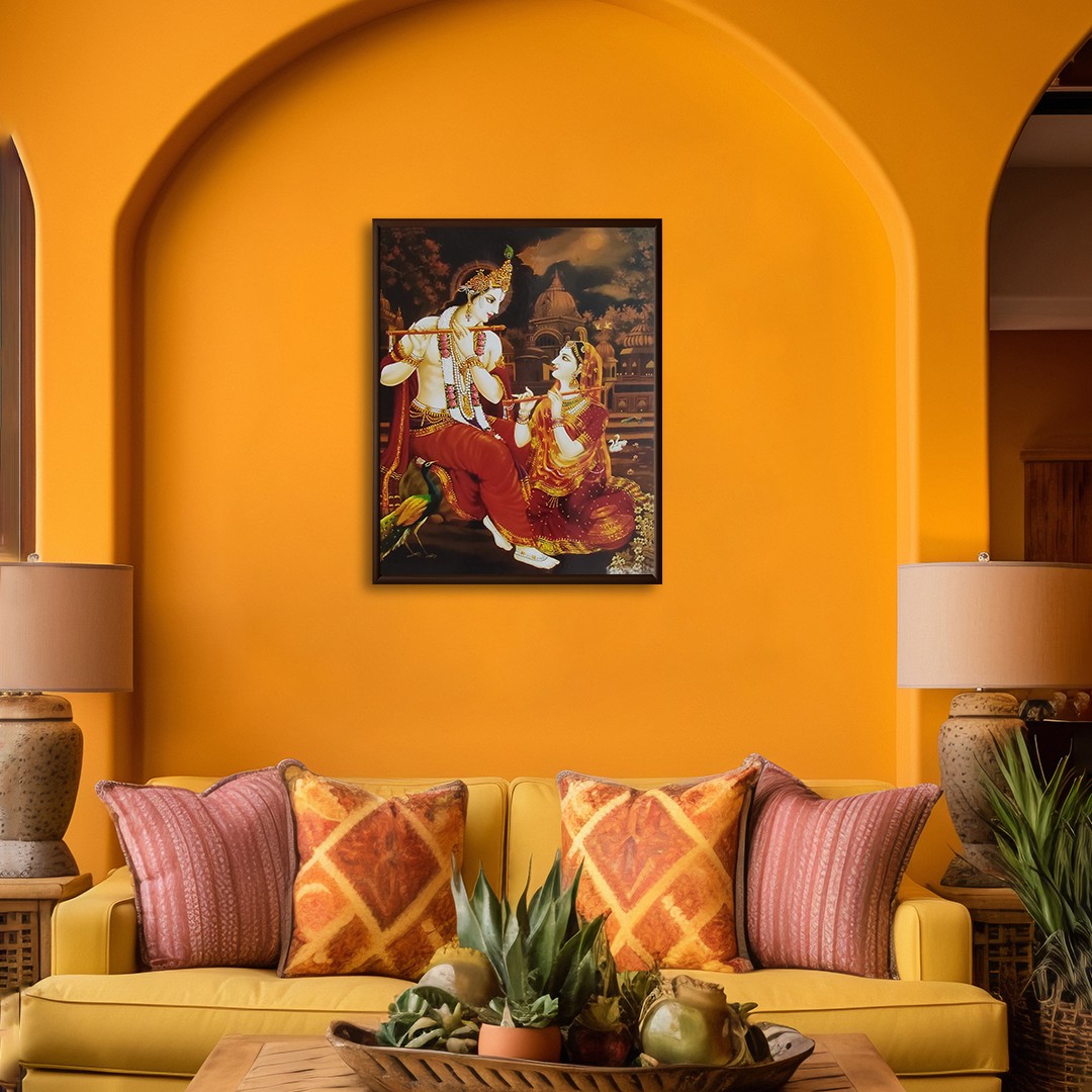 Radha Krishna Tanjore Painting | Traditional Colors With 24K Gold | Teakwood Frame