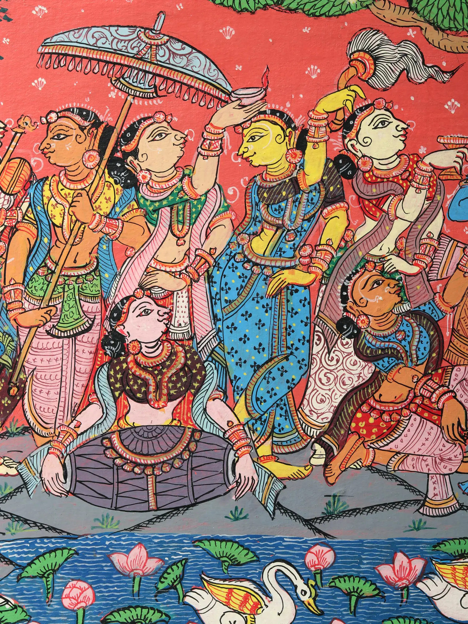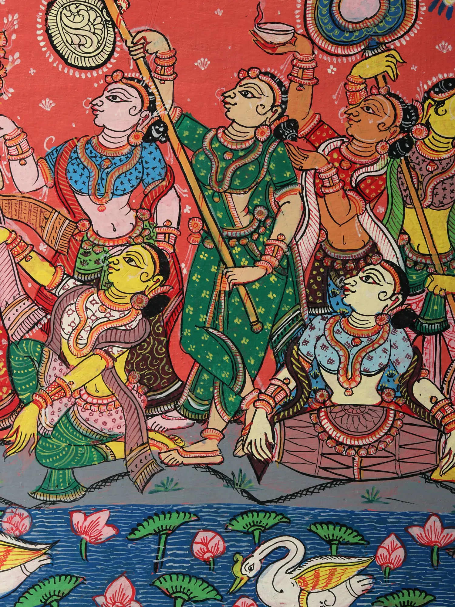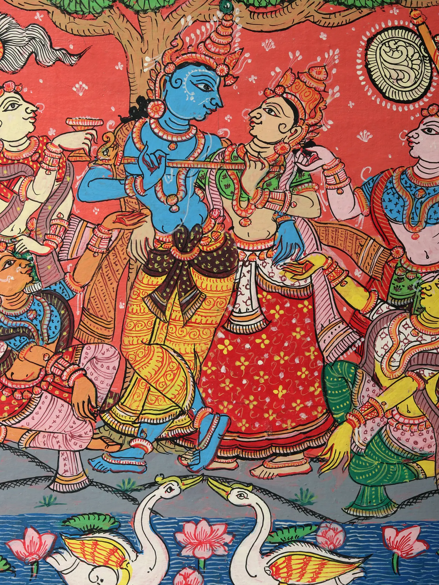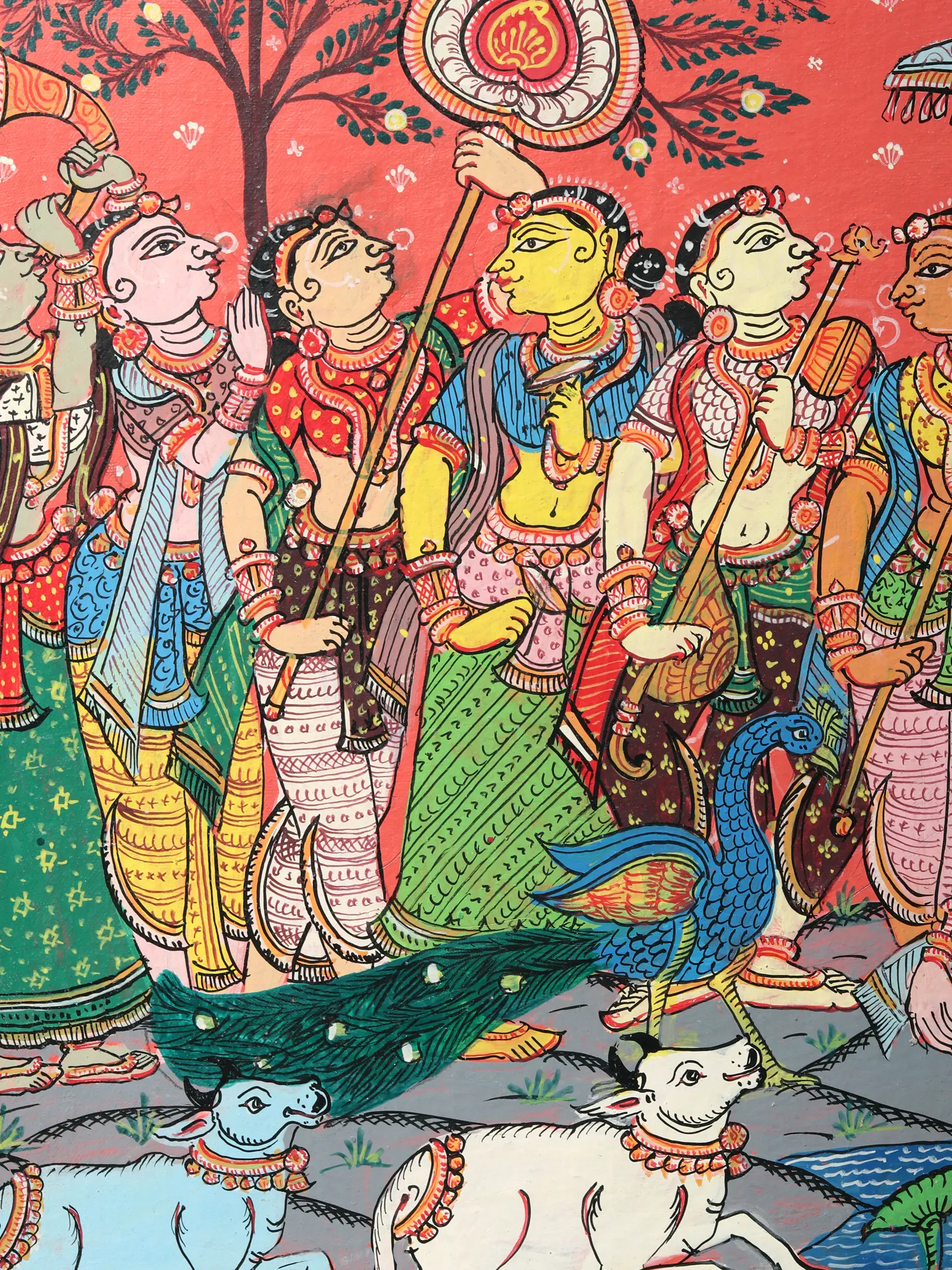 Pattachitra Painting- Radha Krishna With Gopis | Watercolor On Handmade Canvas