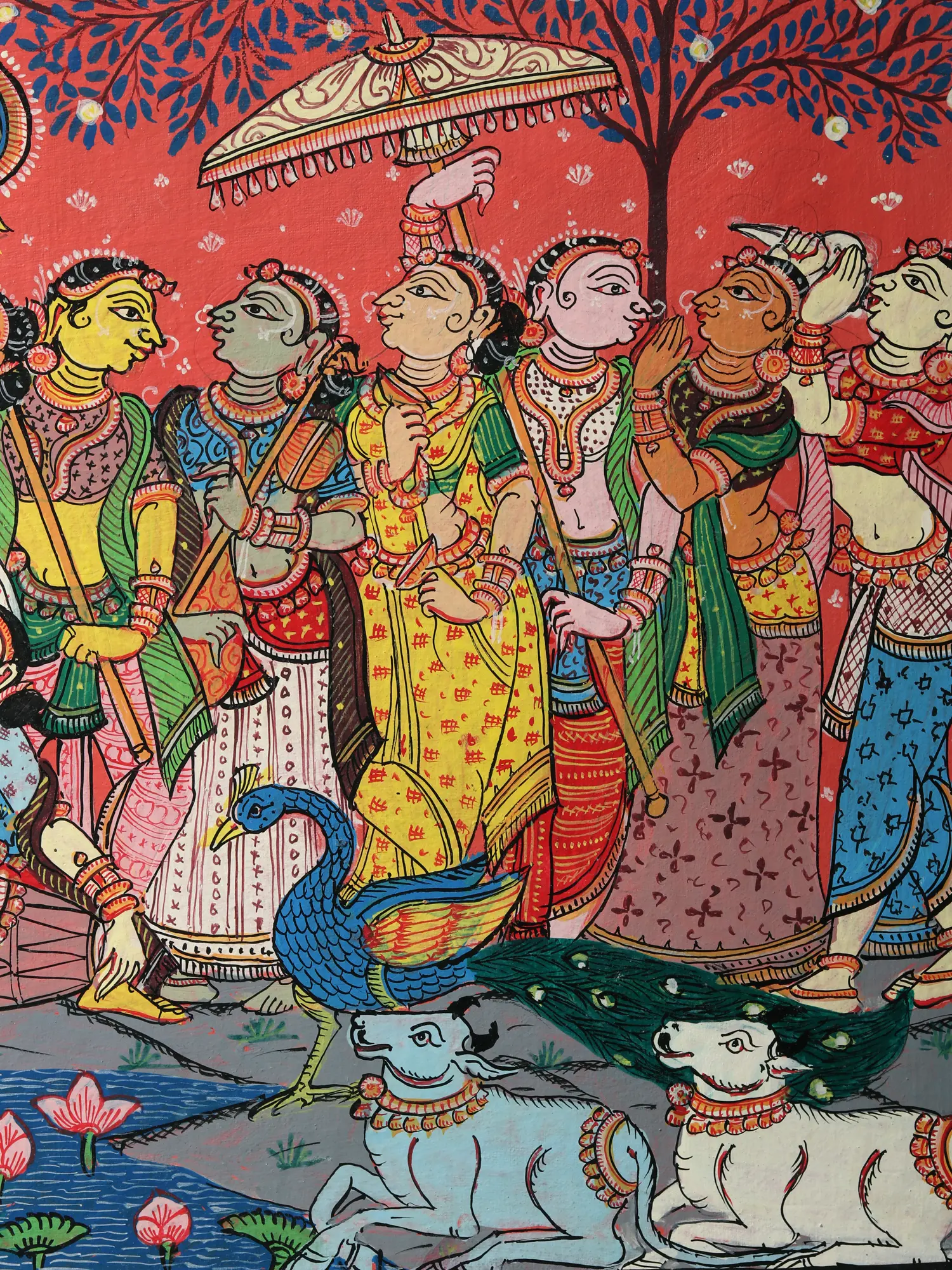Radha And Krishna With Gopis In Vrindavan | Pattachitra Painting | By Rabi Behera