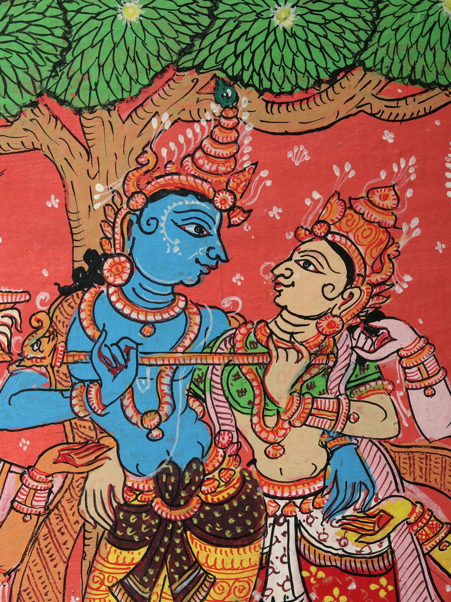 Radha Krishna With Gopis In Frame | Patta Painting | Odisha Art