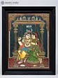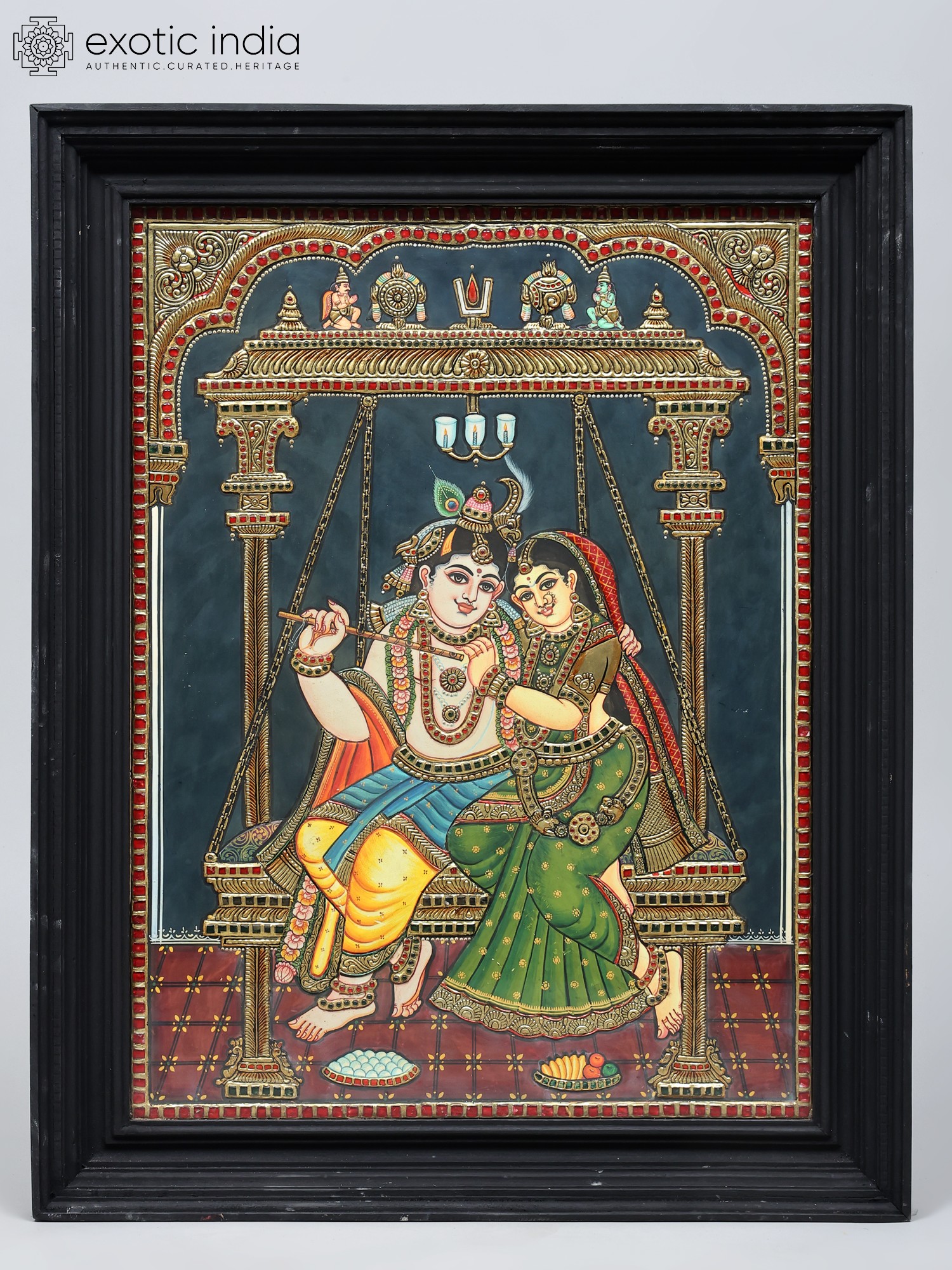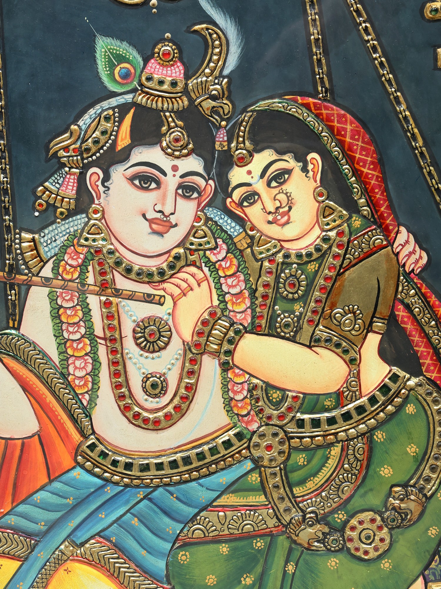 Standing Radha Krishna Tanjore Painting with Wooden Frame