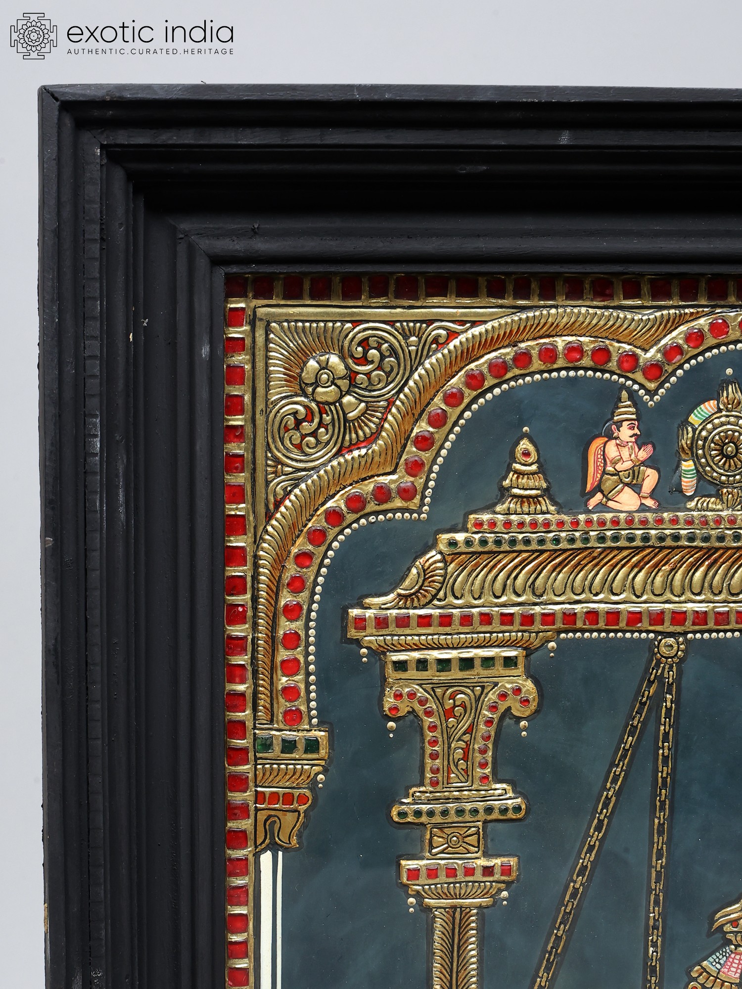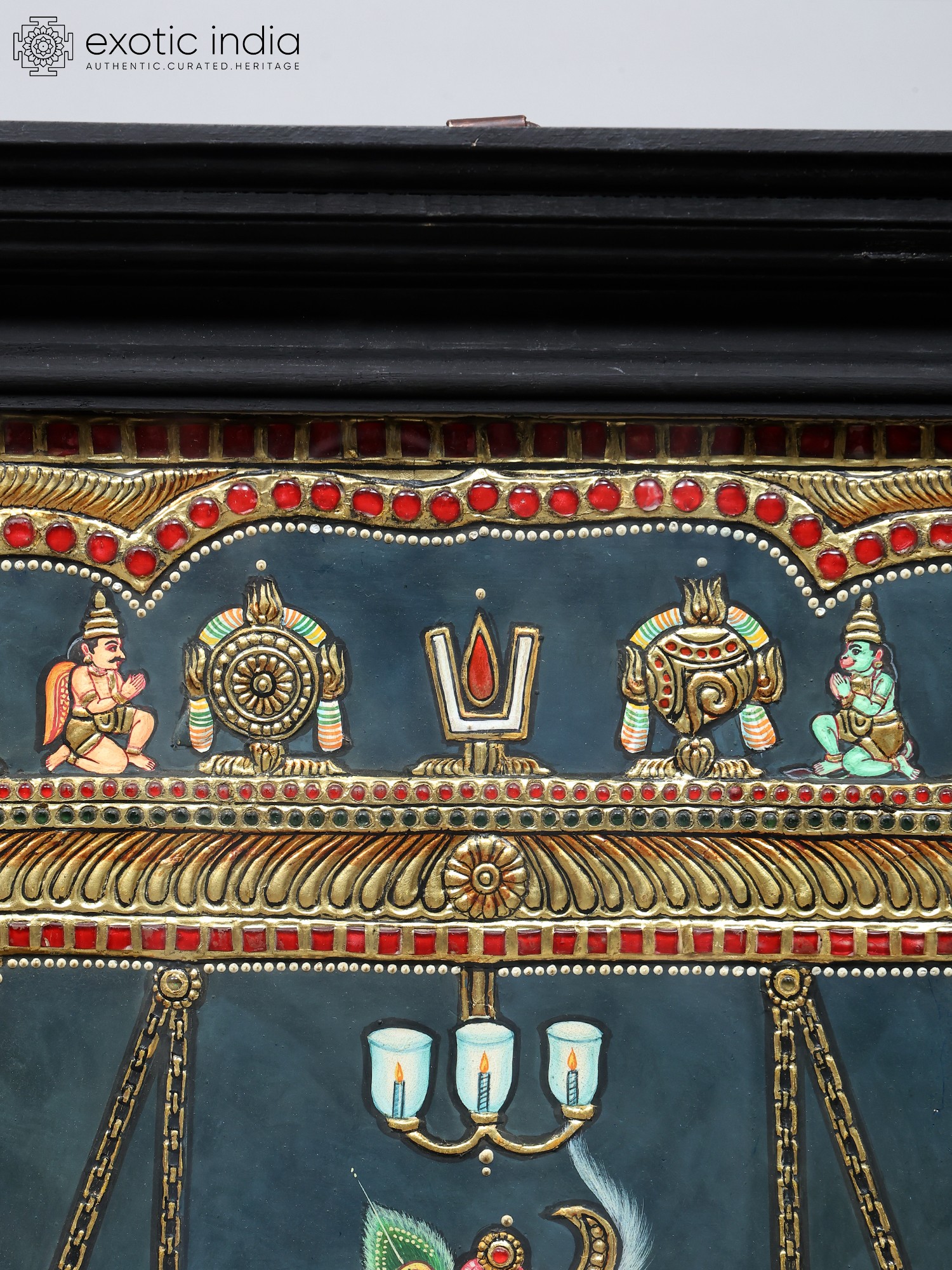 Divine Love of Radha Krishna – Traditional Tanjore Painting with Wooden Door Frame | 24 Karat Gold Work