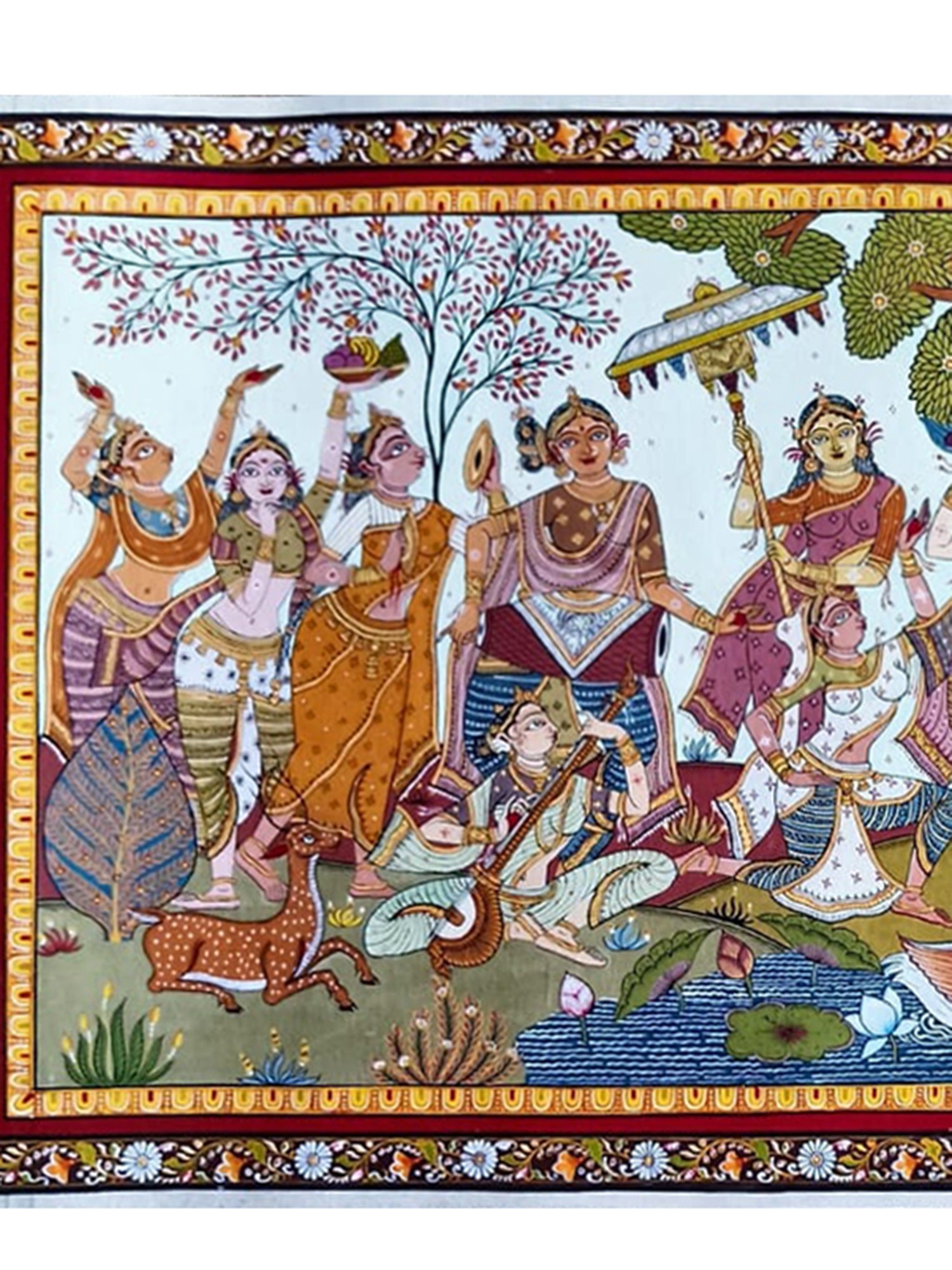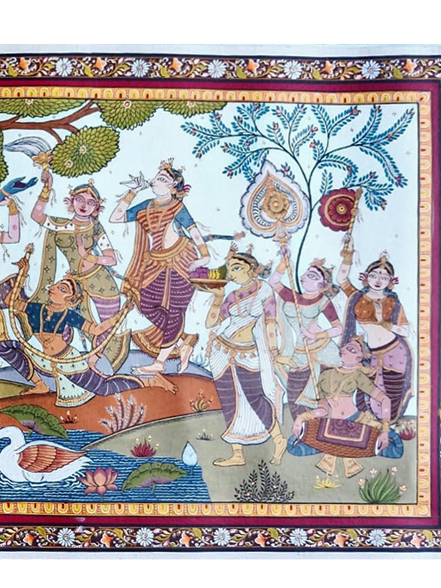 Pattachitra Painting- Radha Krishna With Gopis | Watercolor On Handmade Canvas