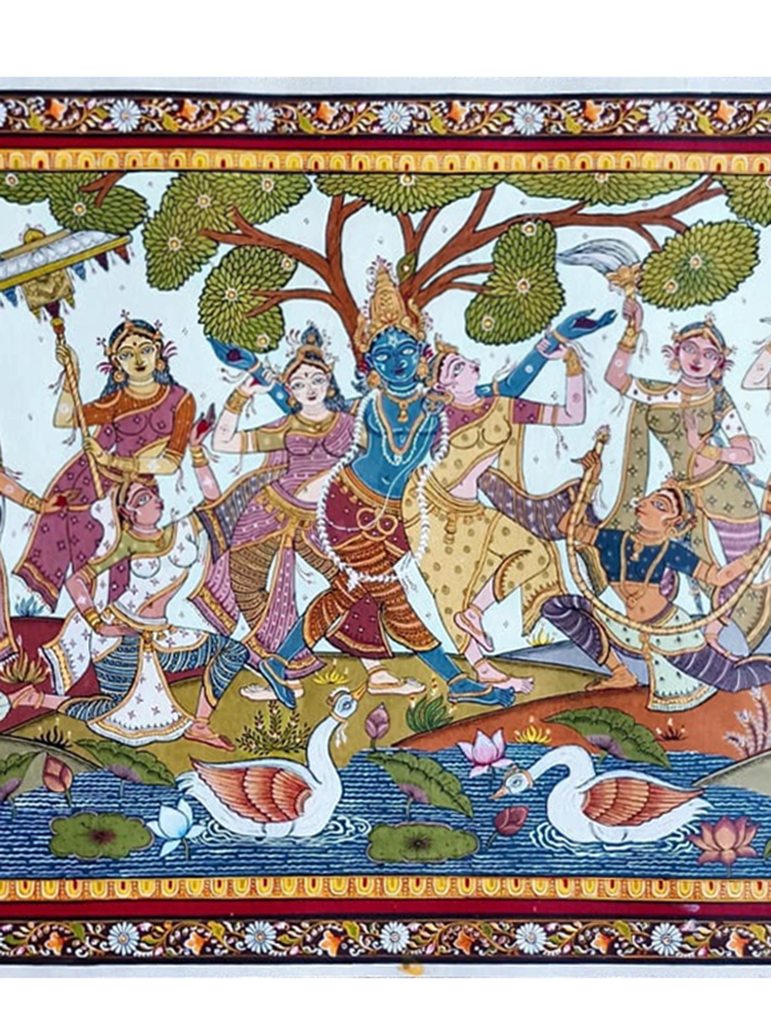 Radha Krishna with Gopis | Pattachitra Painting from Odisha