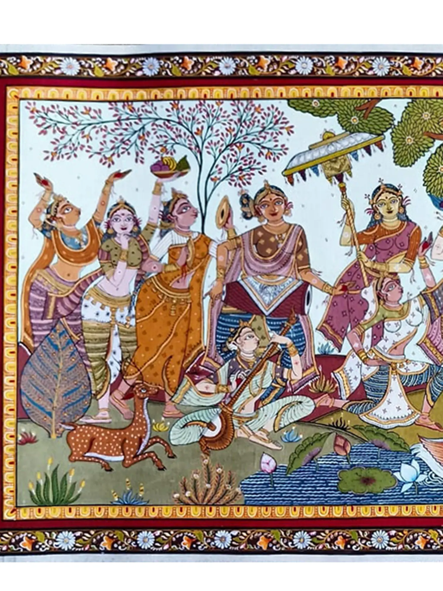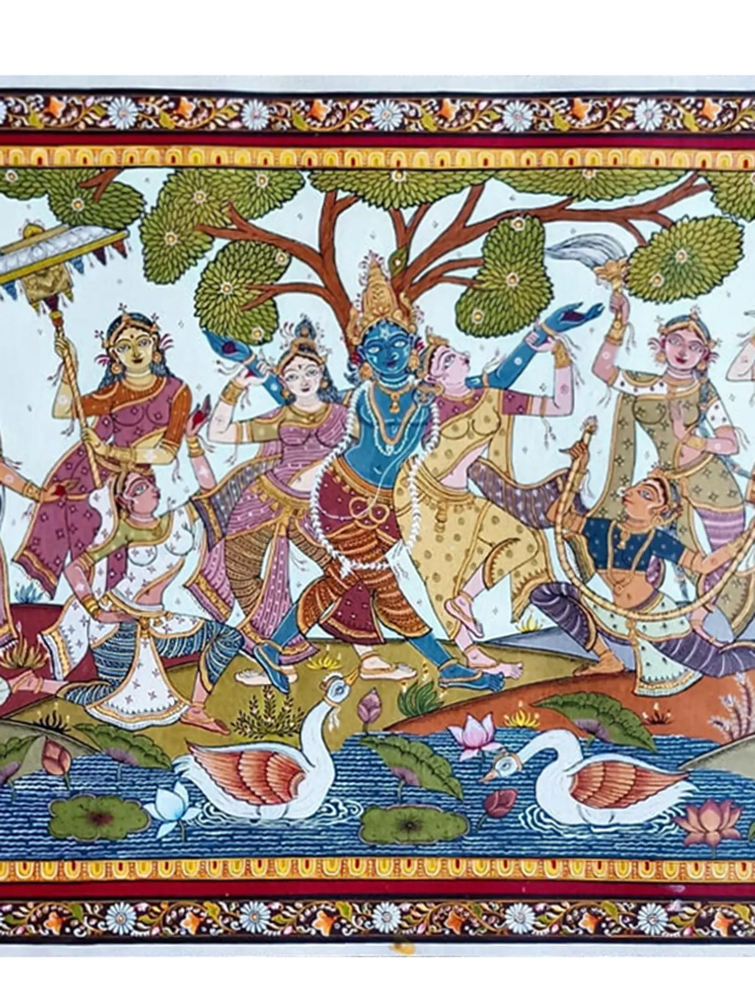 Krishna Leela Pattachitra Painting | Natural Colors on Handmade Canvas | By Sachikant