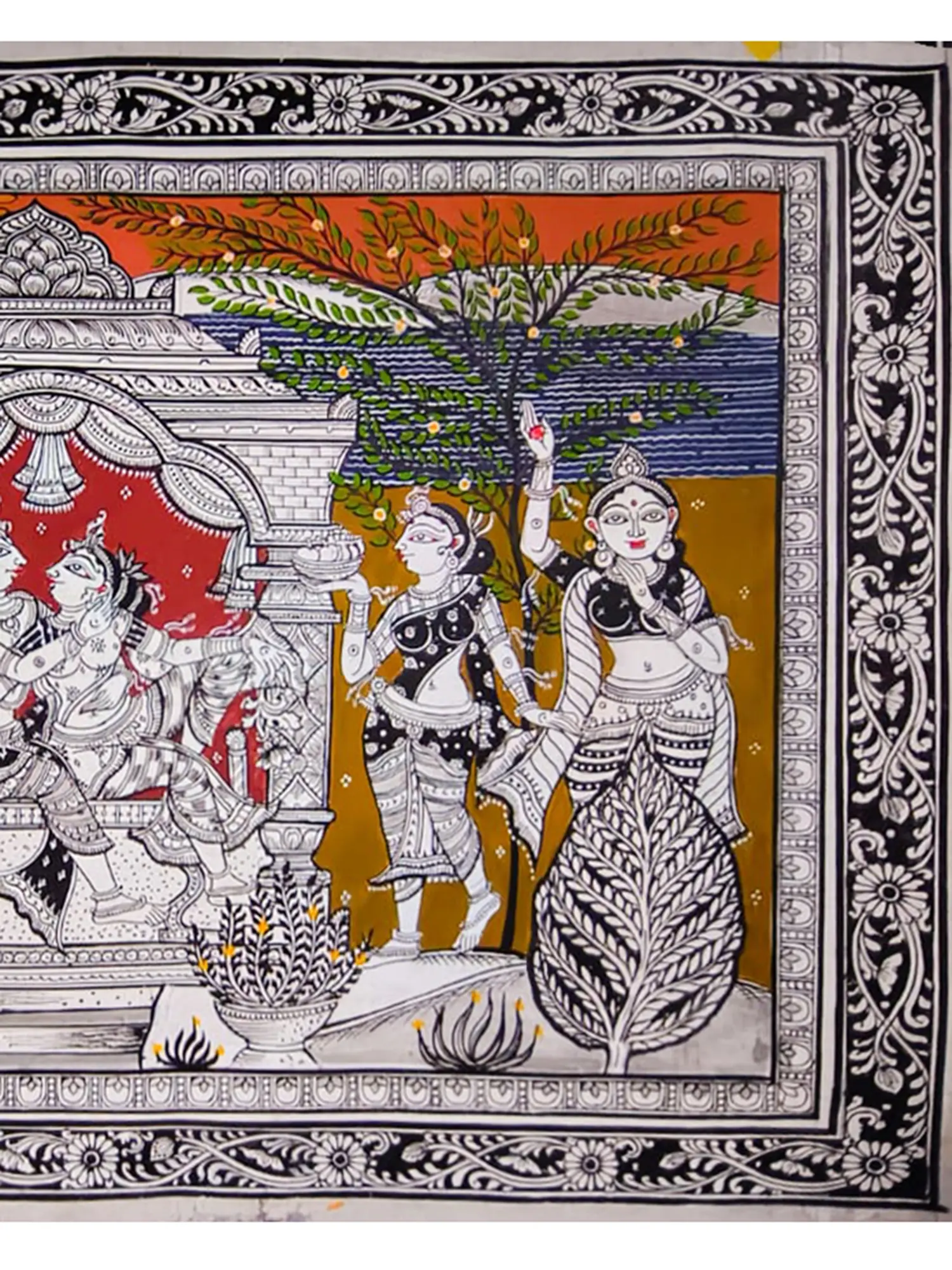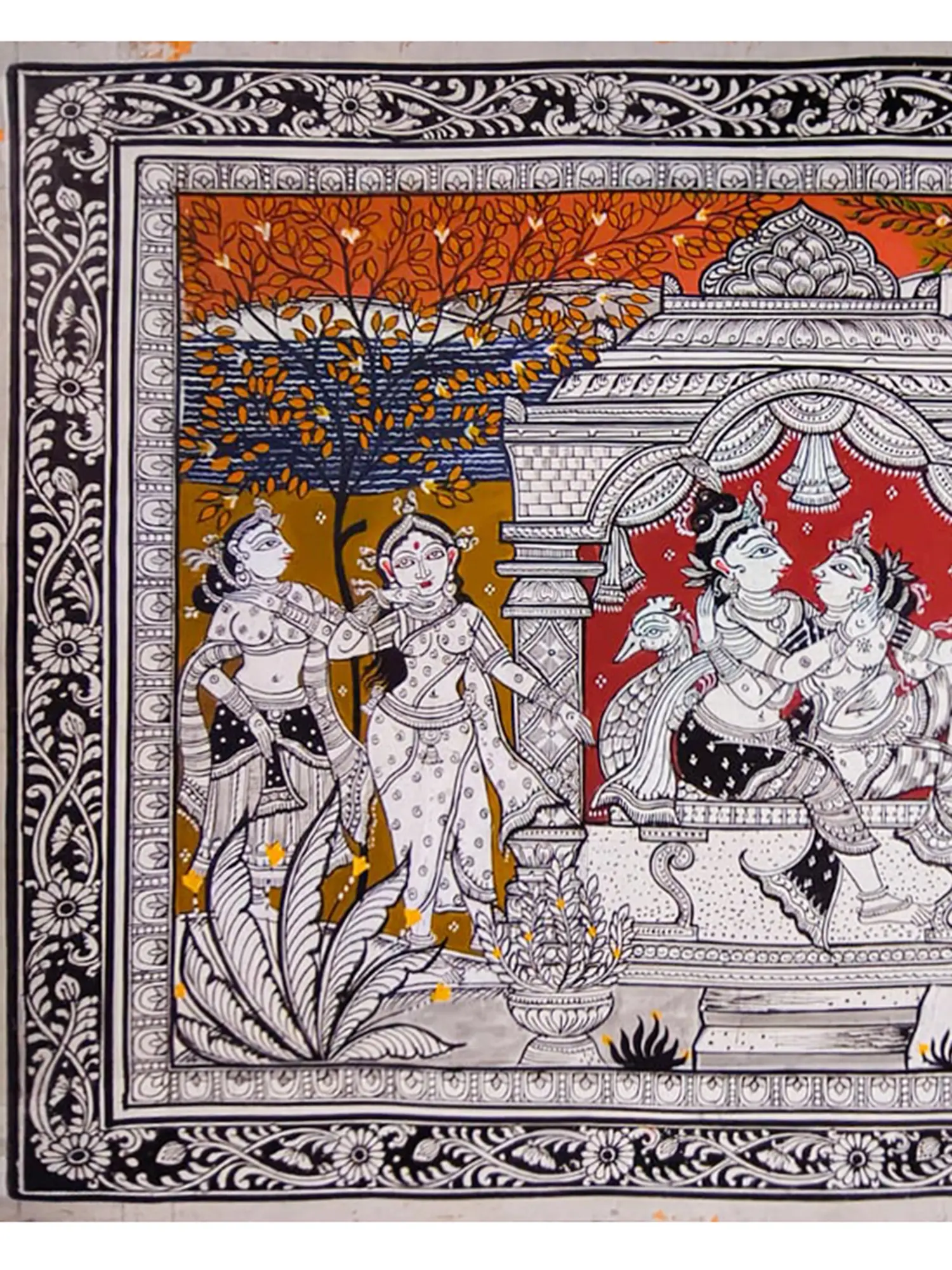 Krishna Leela Pattachitra Painting | Natural Colors on Handmade Canvas | By Sachikant