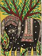 The elaborate ornaments on the elephant and the harmonious blend of colors not only celebrate the regal aura of the majestic creature but also serve as a visual testament to the artistic finesse and cultural significance embedded in Madhubani paintings.