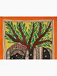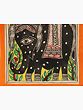 This Regal Elephant Madhubani Painting showcases a majestic black elephant adorned with an intricately decorated headdress and back cover, exuding regality. Against a sacred yellow background, the elephant stands gracefully in front of a vibrant tree, creating a captivating juxtaposition of colors. The traditional Madhubani style, marked by intricate detailing and vibrant hues, brings forth the cultural richness of the art form.
