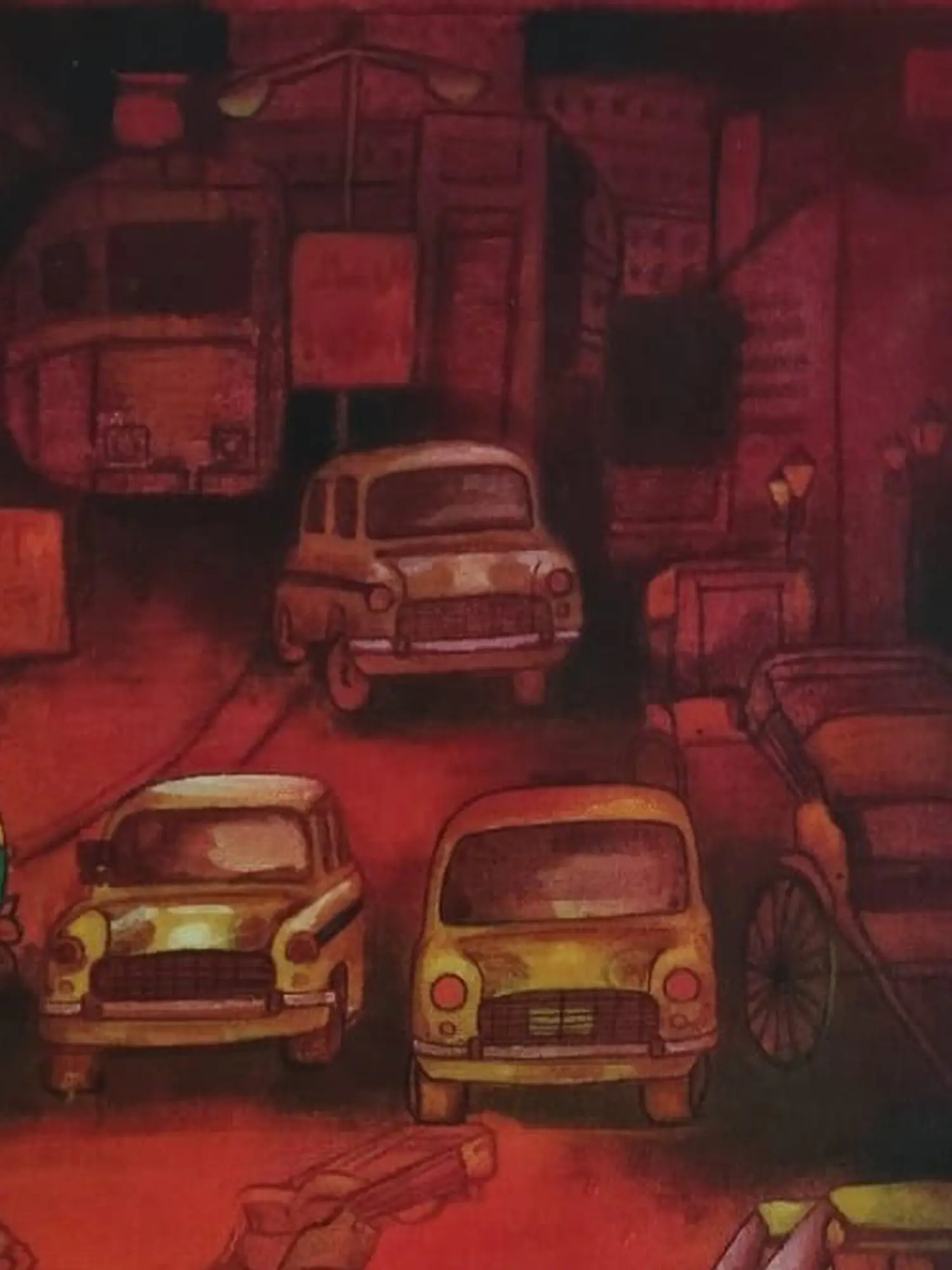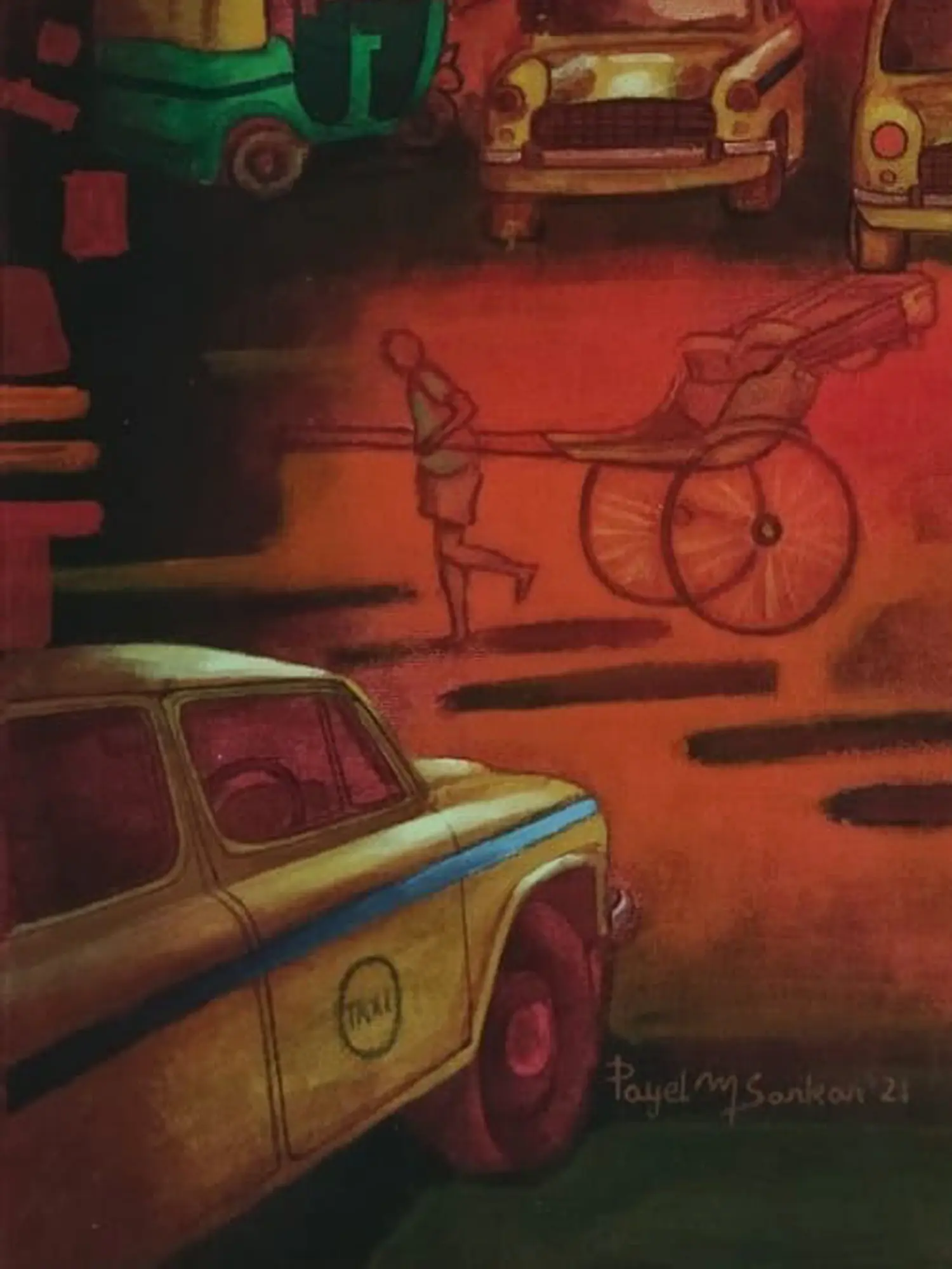Taxis On Kolkata Road | Acrylic On Canvas | By Payel Mitra