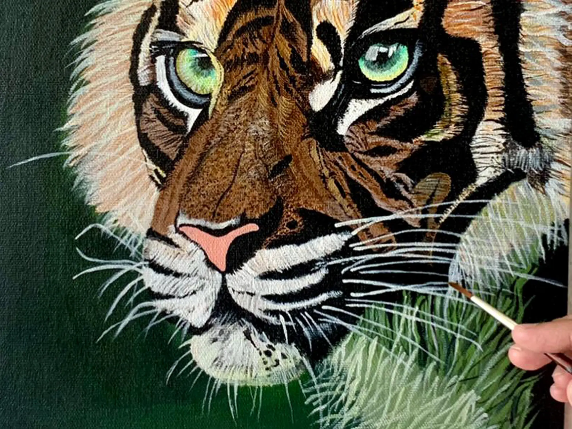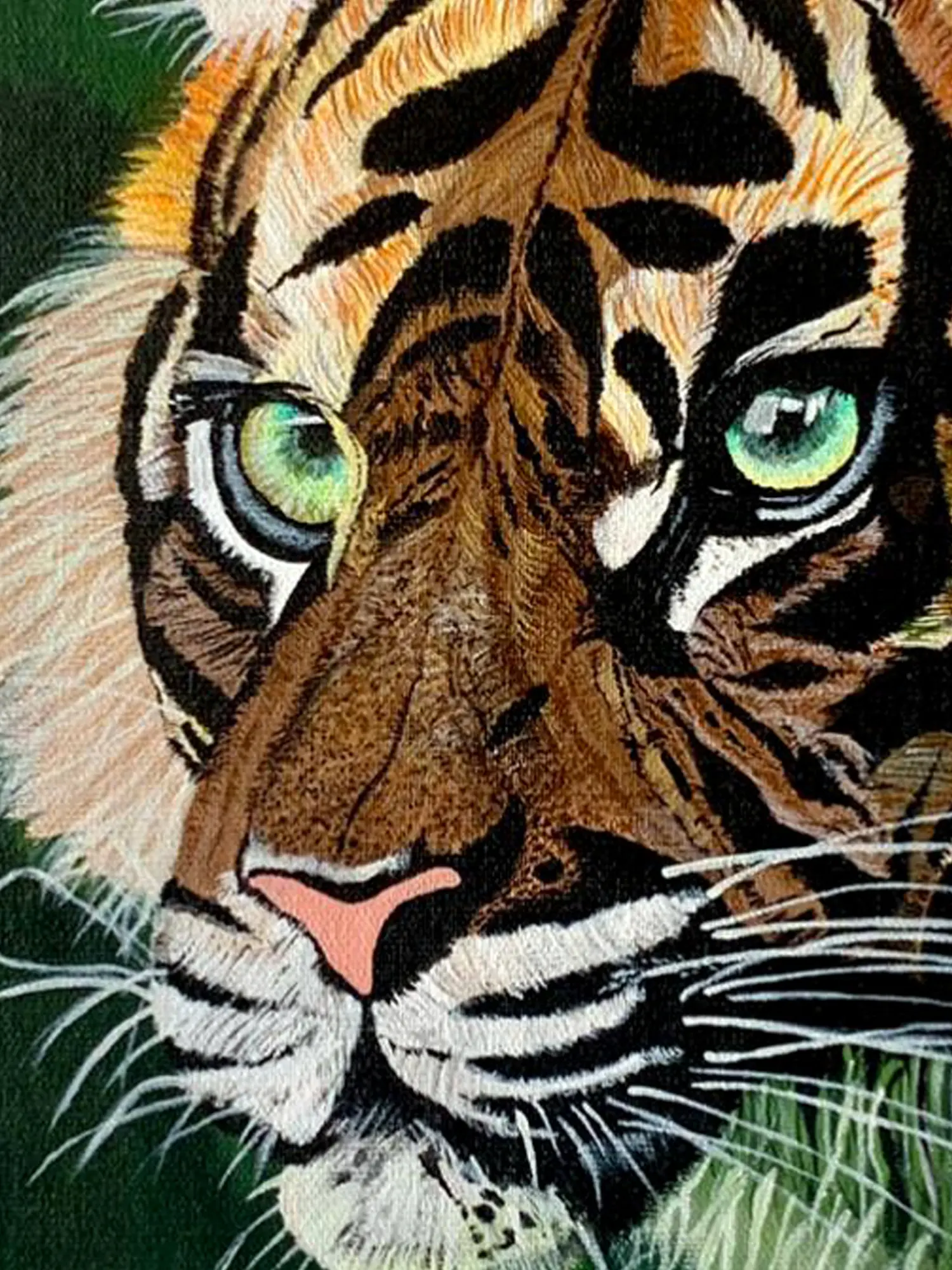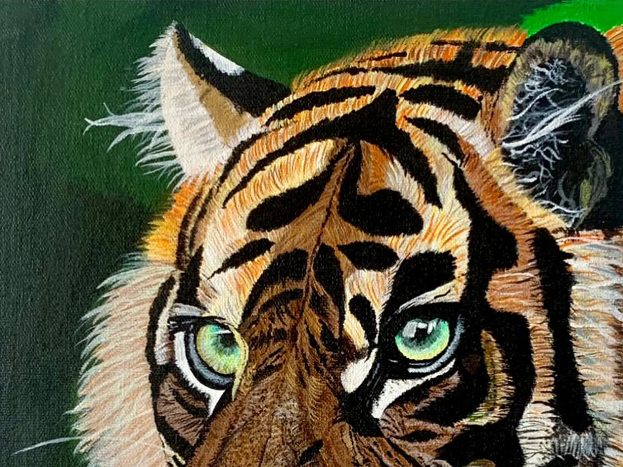 The canvas becomes a captivating realm where the wild spirit of this magnificent creature is preserved. Through expert use of acrylics, Jain's artwork not only pays homage to nature's grandeur but also serves as a visual celebration of the Royal Bengal Tiger's majestic presence.