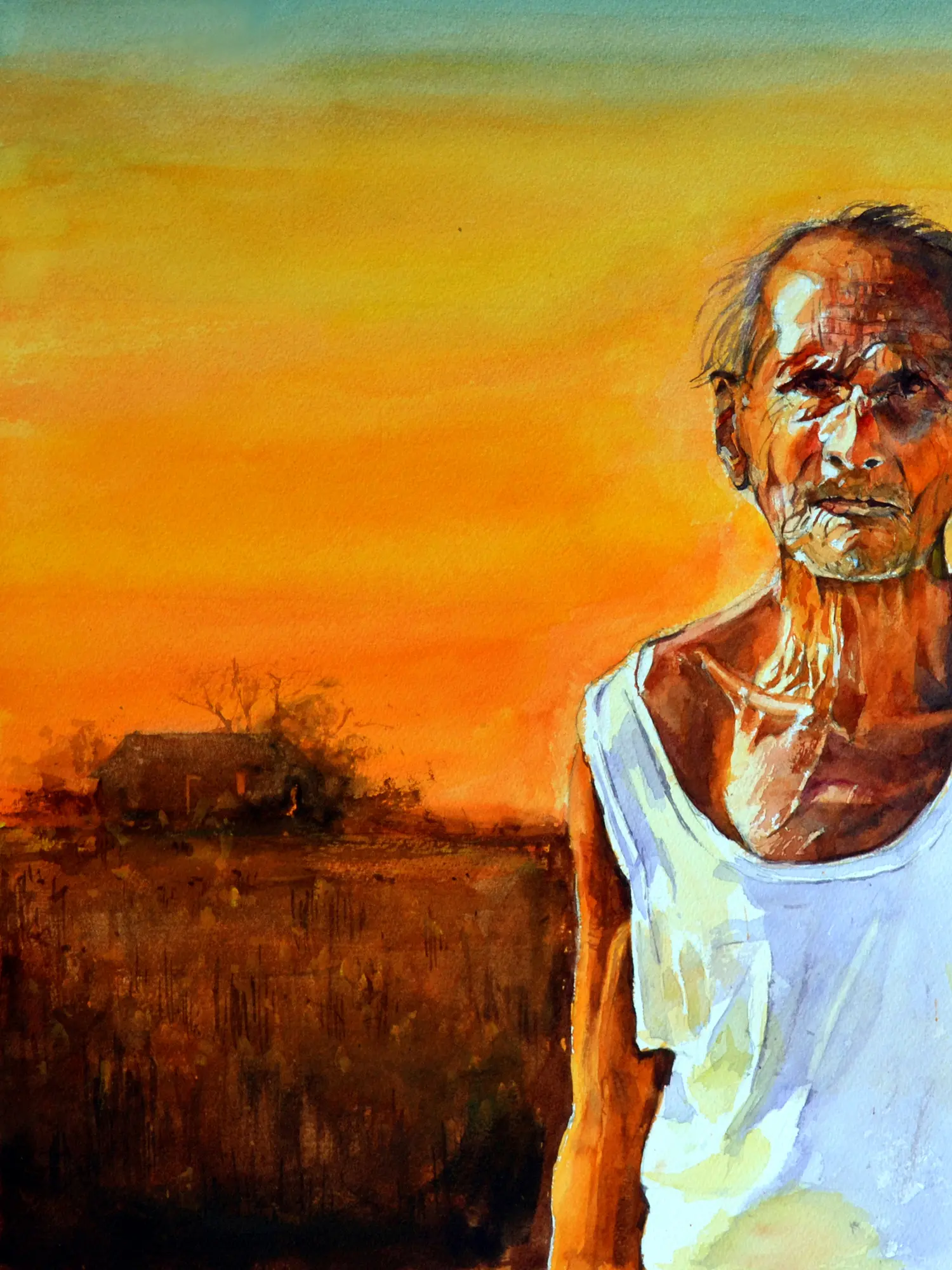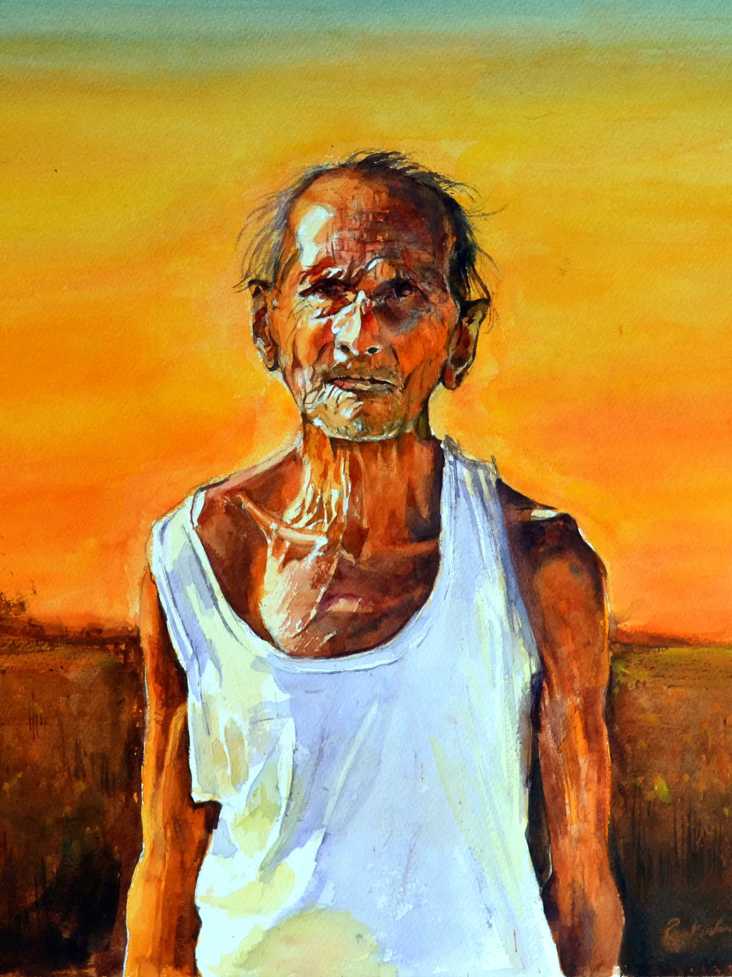 Gratitude - A Farmer | Watercolor on Paper | By Ramkrishna Paul