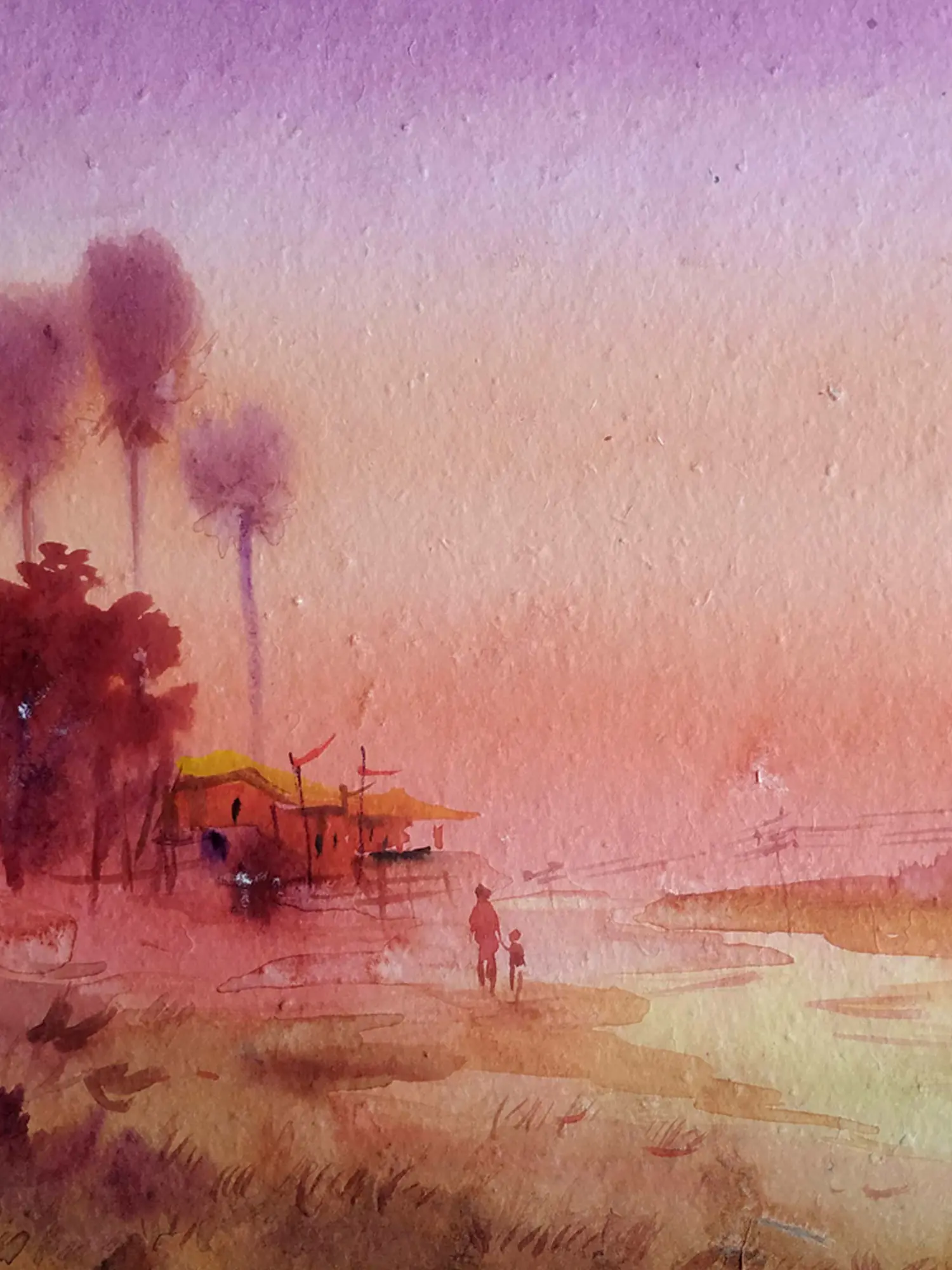 Path to Home | Acrylic on Canvas | Landscape Painting by Anant Roop Art Studio