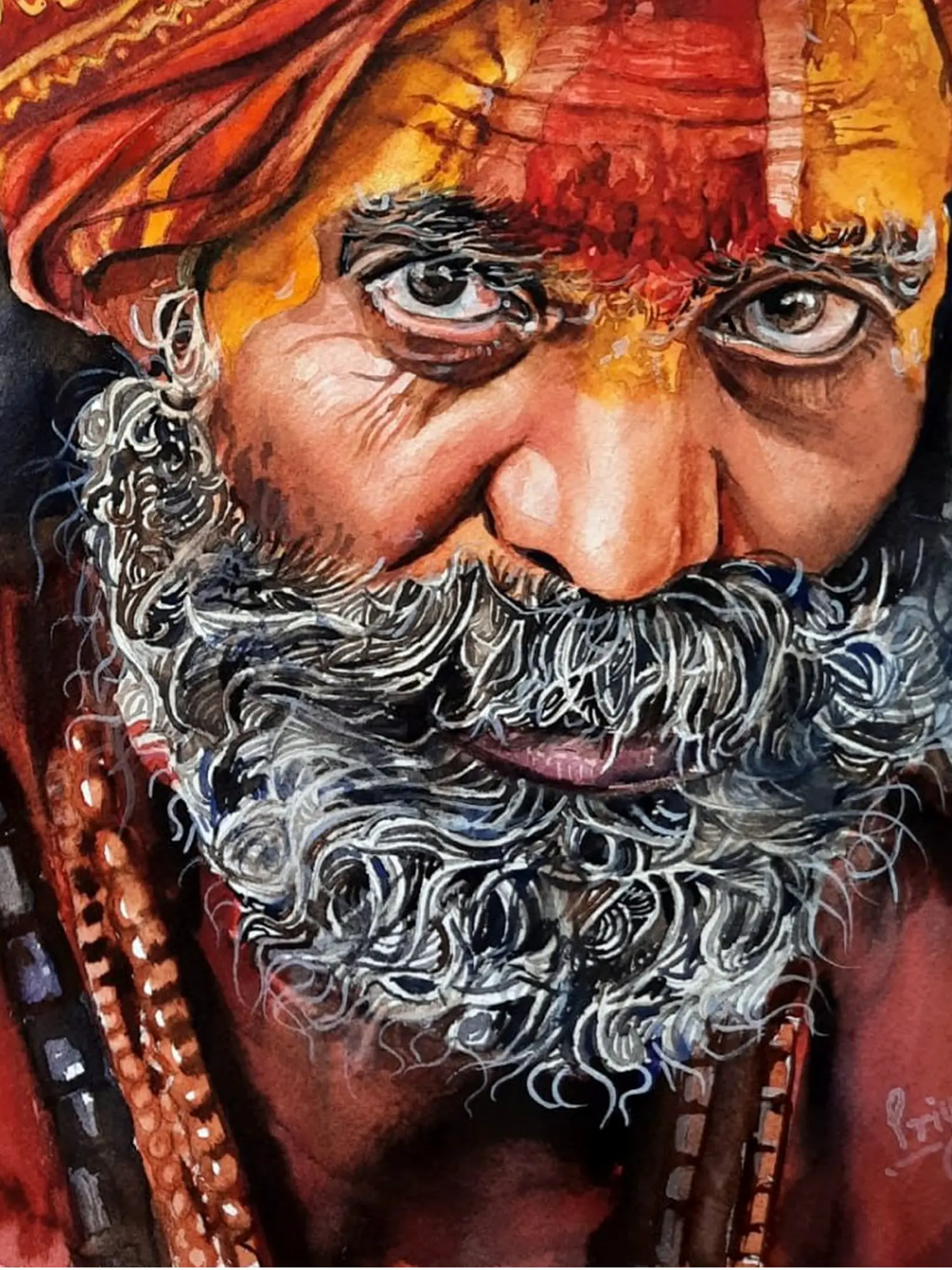 Sadhu Painting | Watercolor On Paper | Nishikant Palande