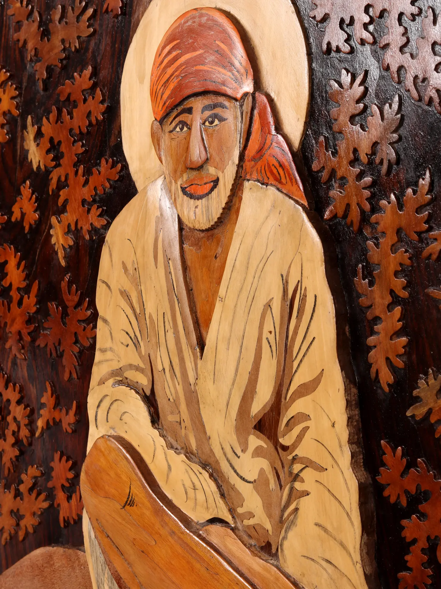 Sai Baba of Shirdi | 3D Wood Panel with Inlay Work