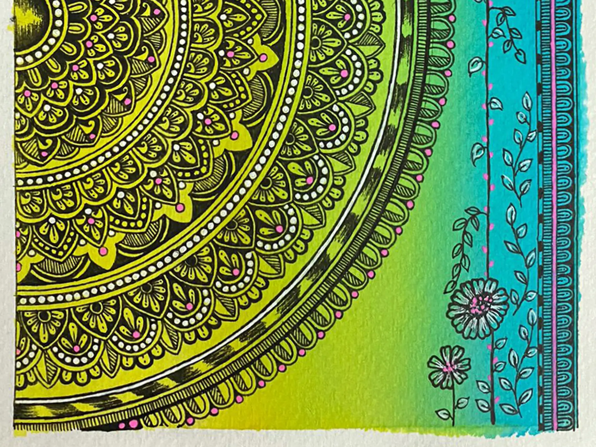 Crafted with watercolours, this masterpiece by “Rashi Agarwal” captivates with its elaborative details and harmonious symmetry. Symbolizing unity and balance, the Mandala draws you into a meditative journey, where stresses dissolve and inner peace flourishes. Hang it in your living space to create a serene ambiance, or gift it to a loved one for a touch of mindful elegance. Let this radiant artwork serve as a reminder to embrace the beauty of the present moment and find solace in the art of mindfulness.