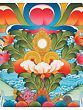 A Thangka is a traditional Tibetan Buddhist painting that usually depicts a Buddhist Deity (Buddha or Bodhisattva), a scene, or a mandala. These paintings are considered important paraphernalia in Buddhist rituals. They are used to teach the life of the Buddha, various lamas, and Bodhisattvas to the monastic students, and are also useful in visualizing the deity while meditating. One of the most important subjects of thangkas is the Bhavacakra (the wheel of life) which depicts the Art of Enlightenment. It is believed that Thangka paintings were developed over the centuries from the murals, of which only a few can be seen in the Ajanta caves in India and the Mogao caves in Gansu Province, Tibet.