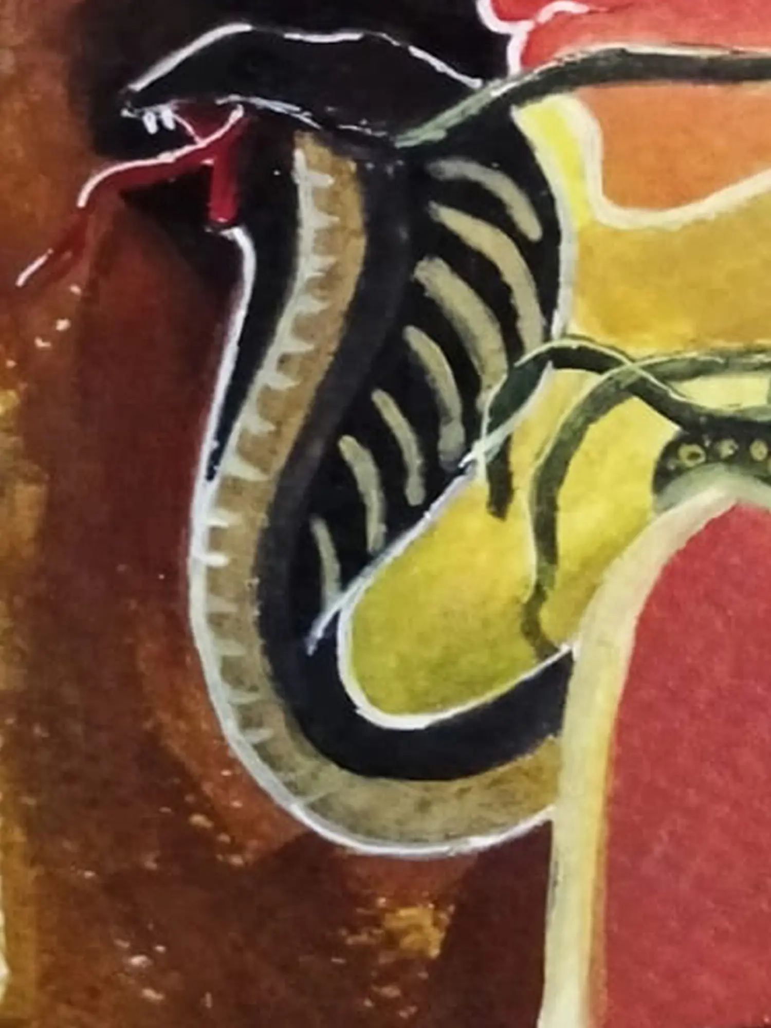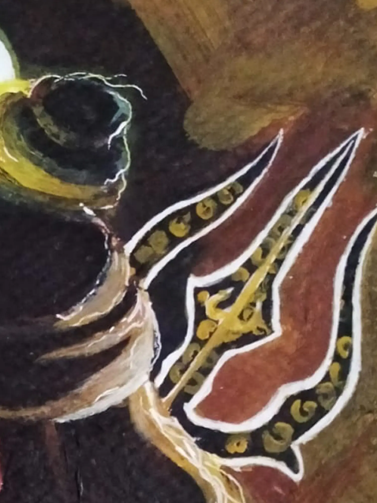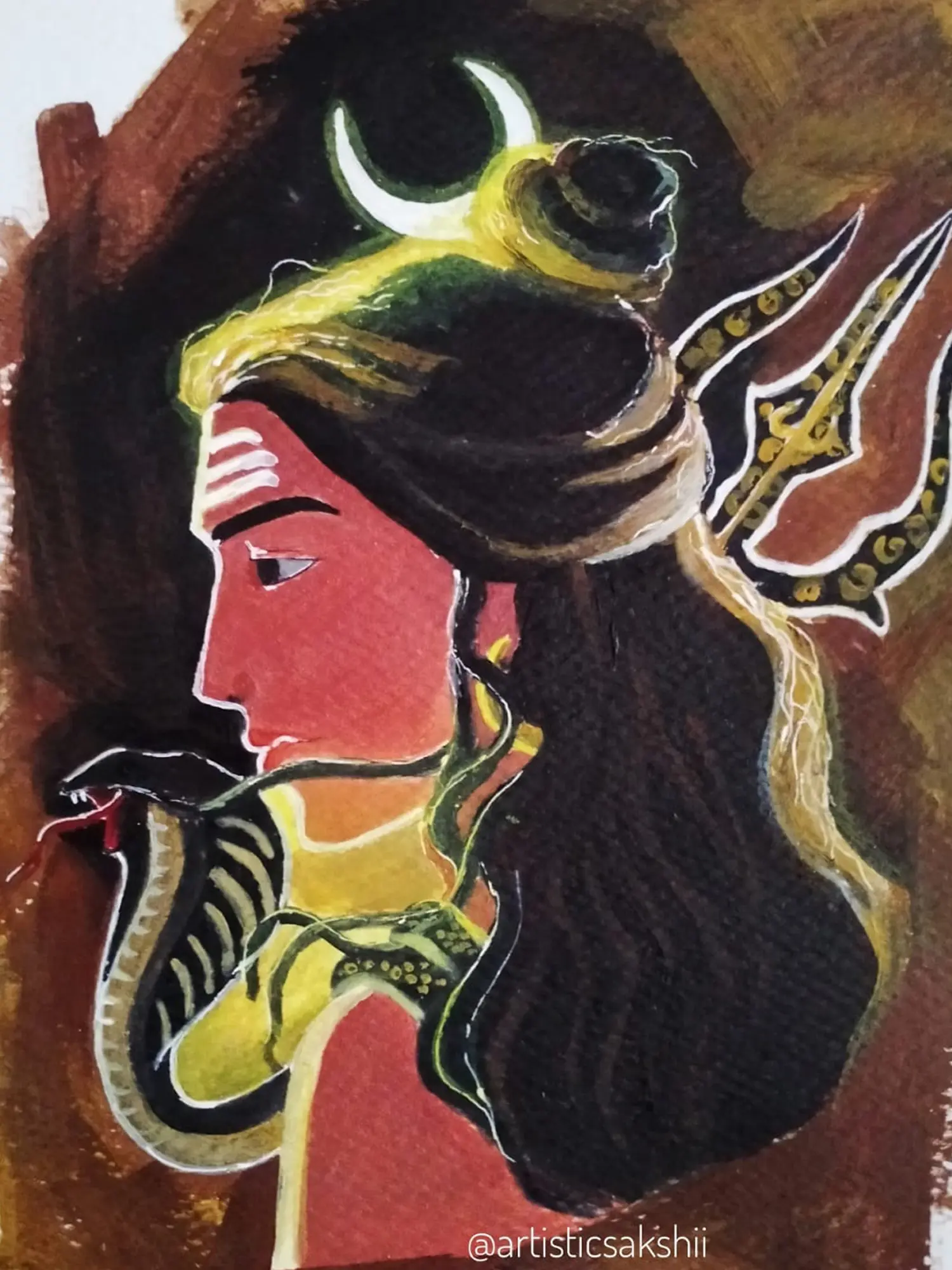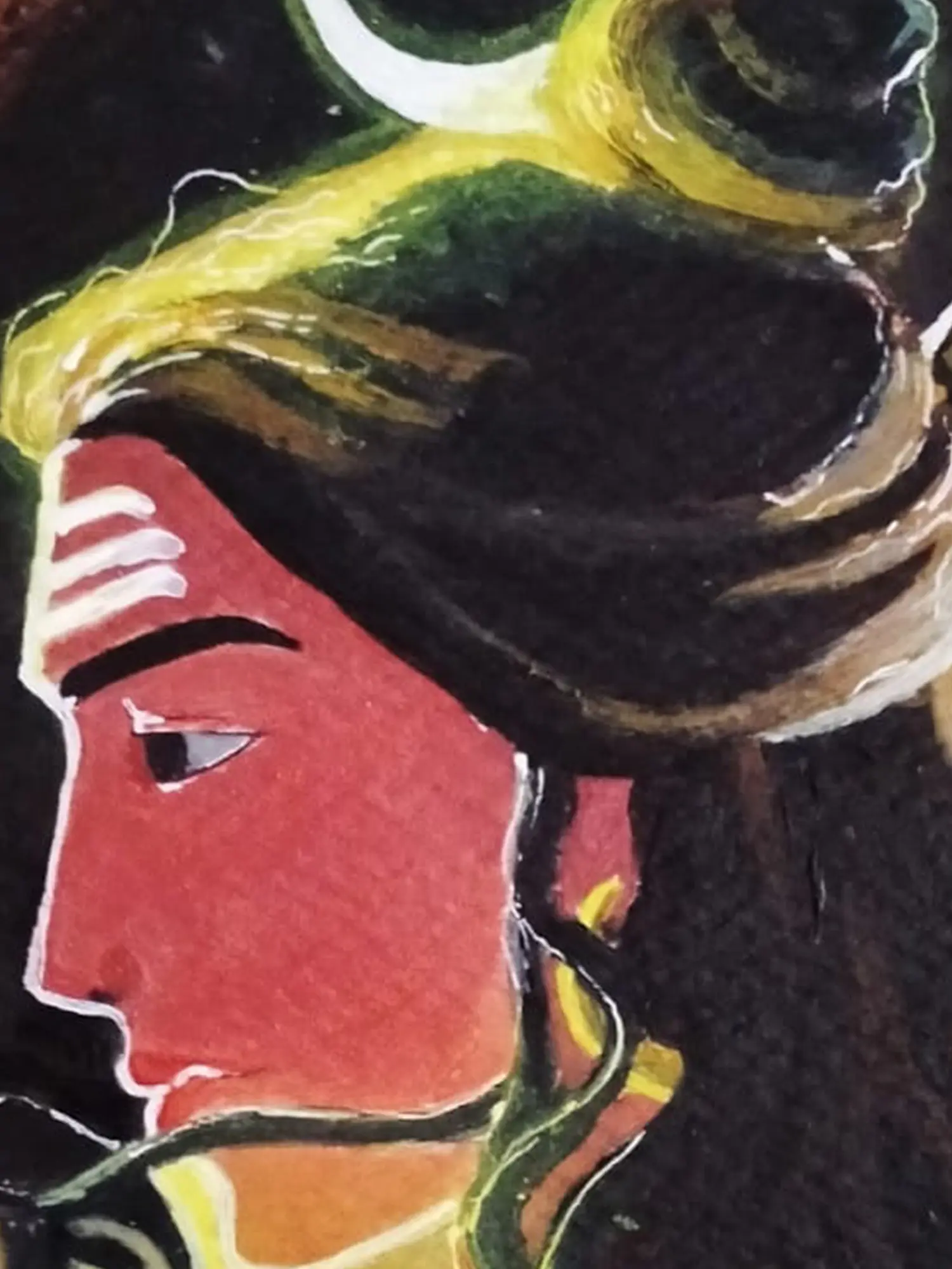This dynamic watercolour depicts Shiva Shankara, the embodiment of auspiciousness. Energetic colours capture his dynamic pose and the powerful trident he wields. The artwork reflects the philosophy of Shiva as the bringer of transformation and liberation, brought to you from the heights of Kailash.