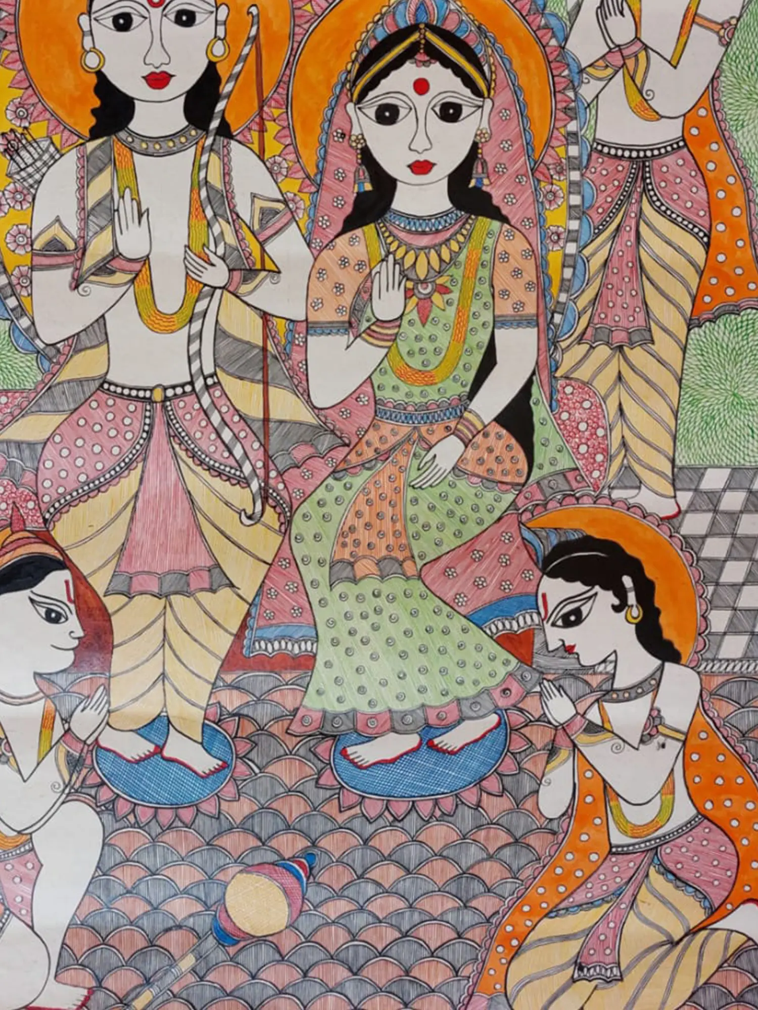 Ram Darbar - The Story Of Ramayana | Natural Stone Color On Handmade Canvas | By Sachikant