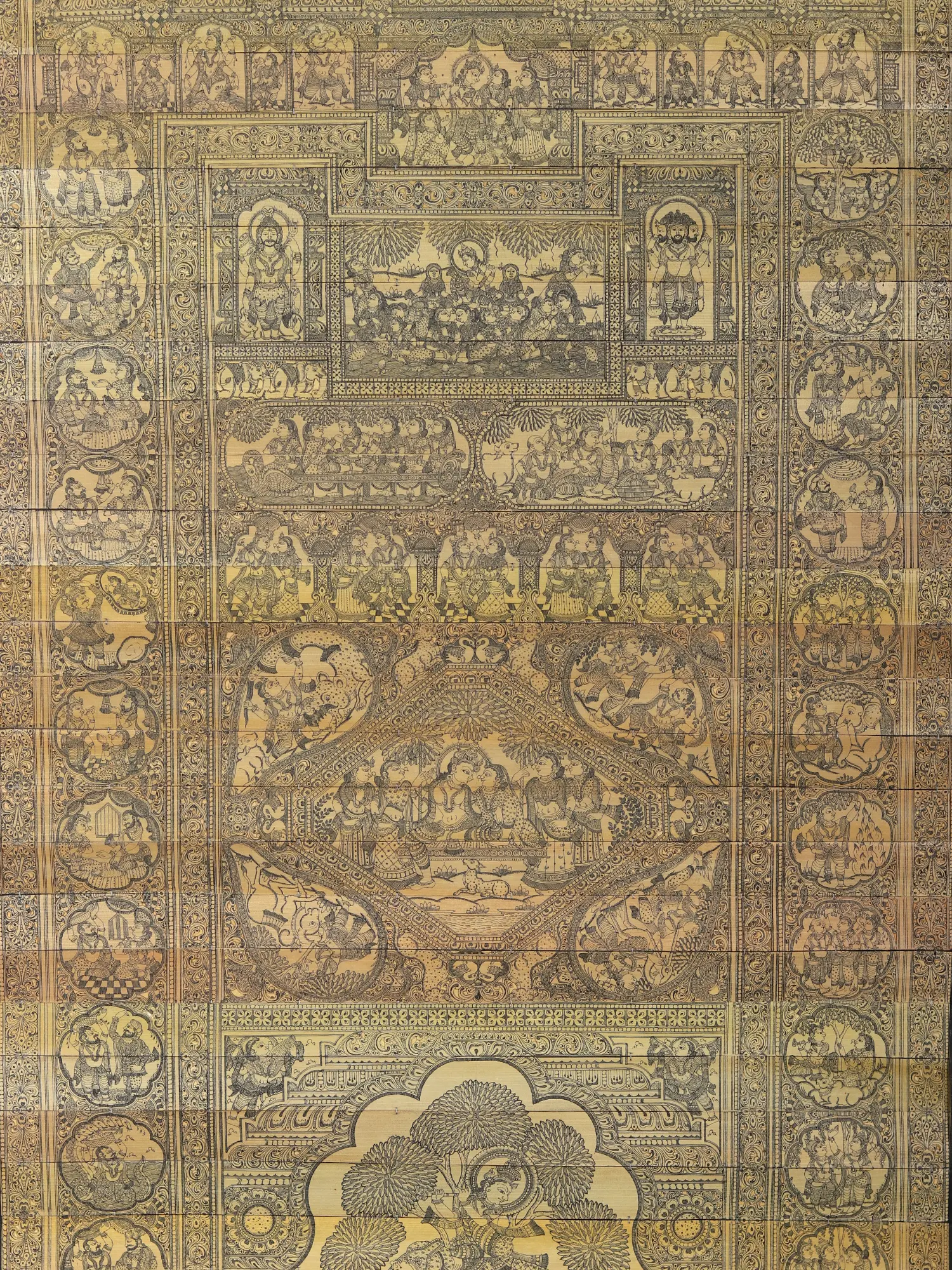 Immerse yourself in the visual storytelling of ancient epics, captured in a truly unique and revered artistic medium. This remarkable piece offers a window into a rich cultural heritage, a testament to devotion and artistry passed down through generations.