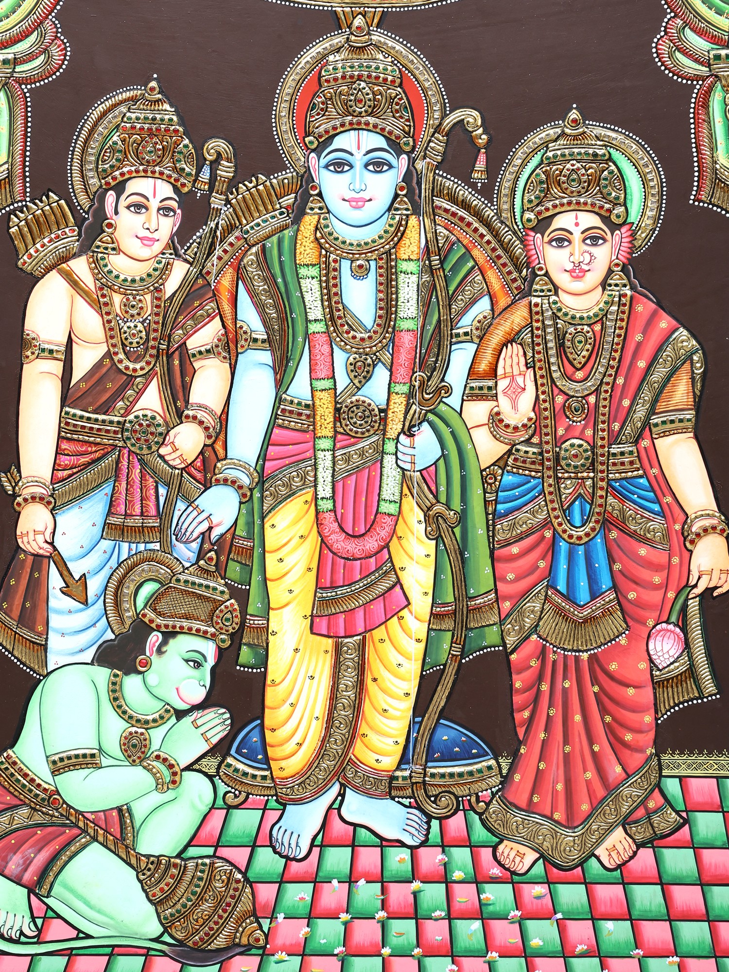 Ram Darbar Tanjore Painting | Traditional Colors with Gold Work