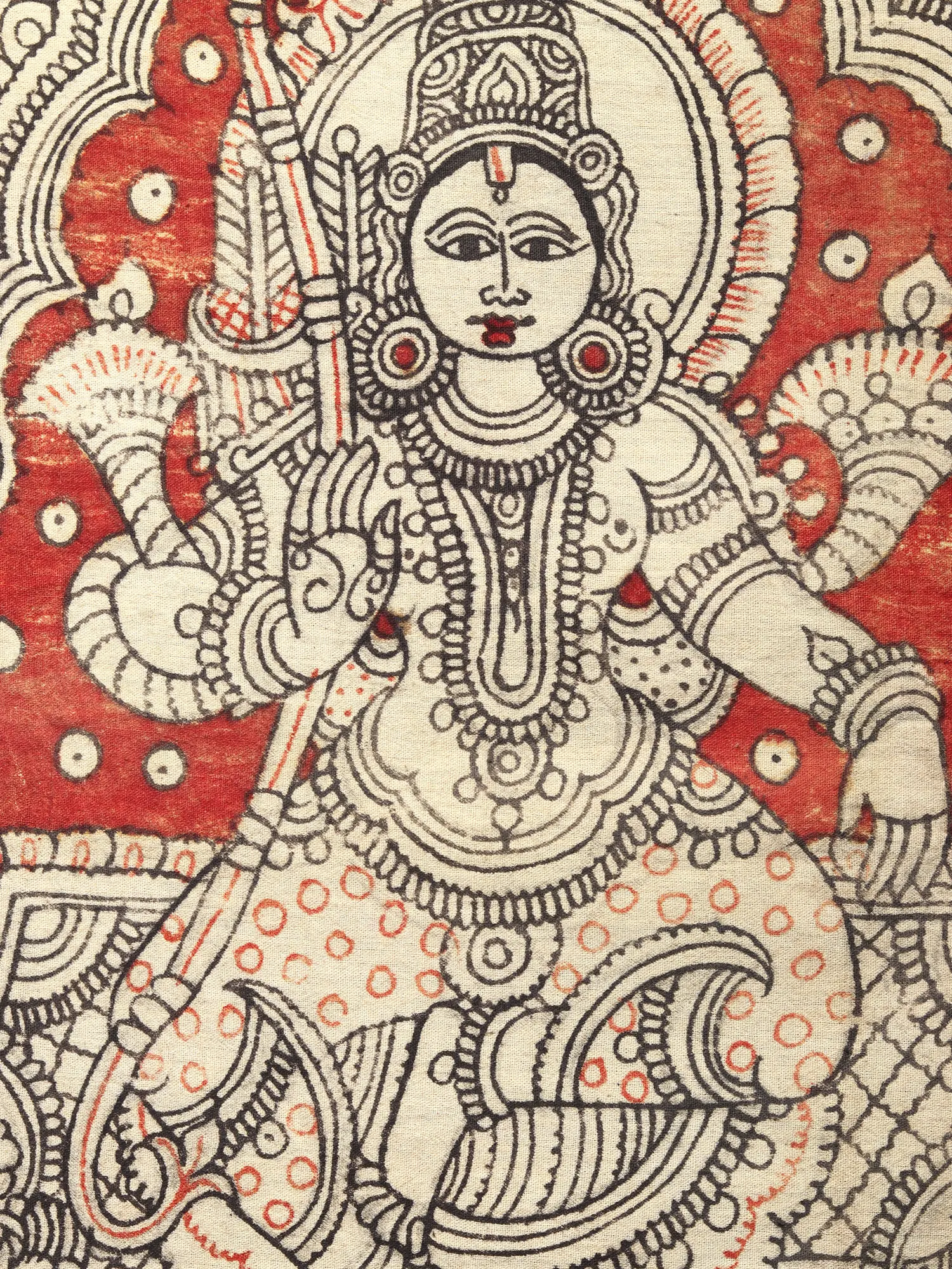 Tap-Shoe Printed Kalamkari Dupatta from Telangana with Zari Border