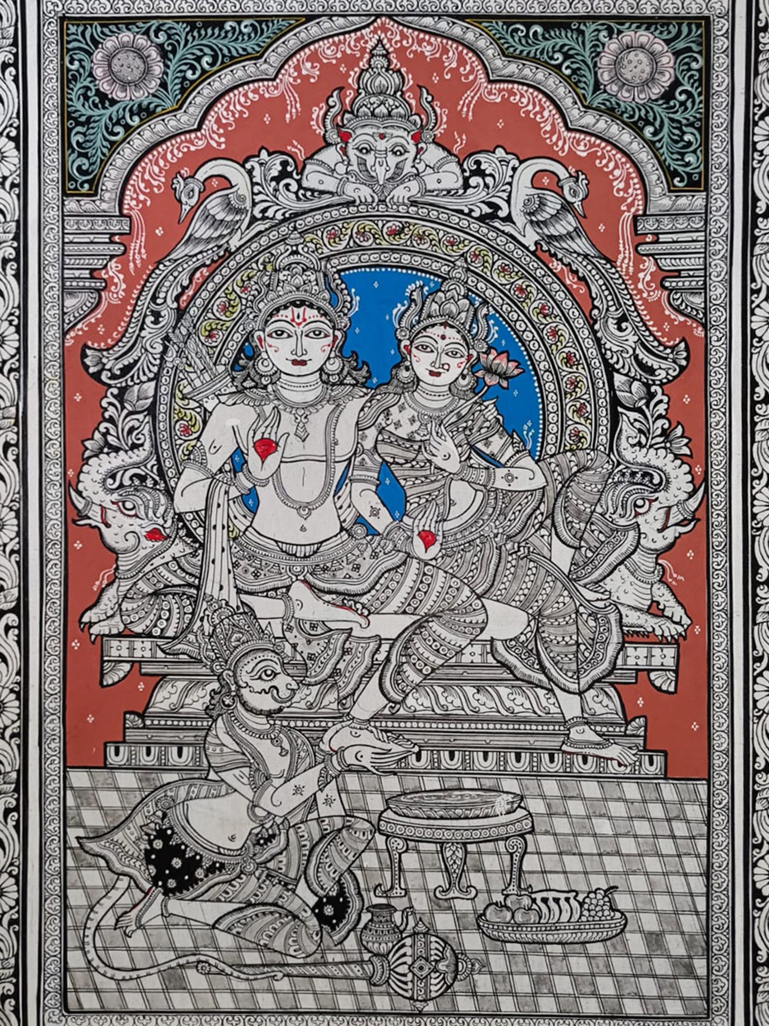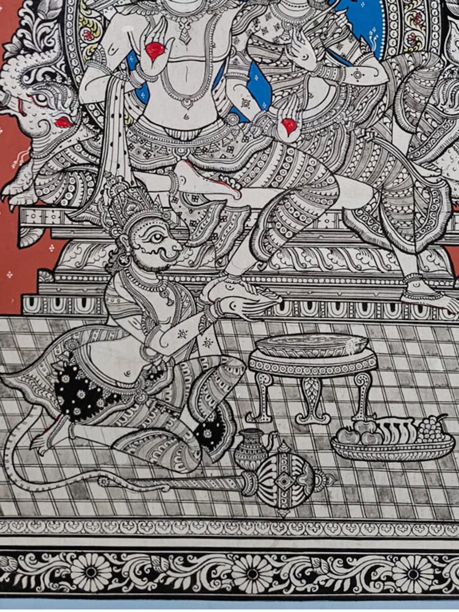 Lord Hanuman Tearing His Chest to Show Shri Ram and Sita In His Heart | Kerala Mural Painting by Vishnu Shreedhar