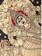 A lotus, emerging from his navel, bears Lord Brahma. The use of a black background enhances the divinity, making the celestial figures stand out prominently. This art piece captures the cosmic elegance of Lord Vishnu while allowing the devotee to pay homage to the intricate mythology, creating a visual symphony of devotion and divine grace.