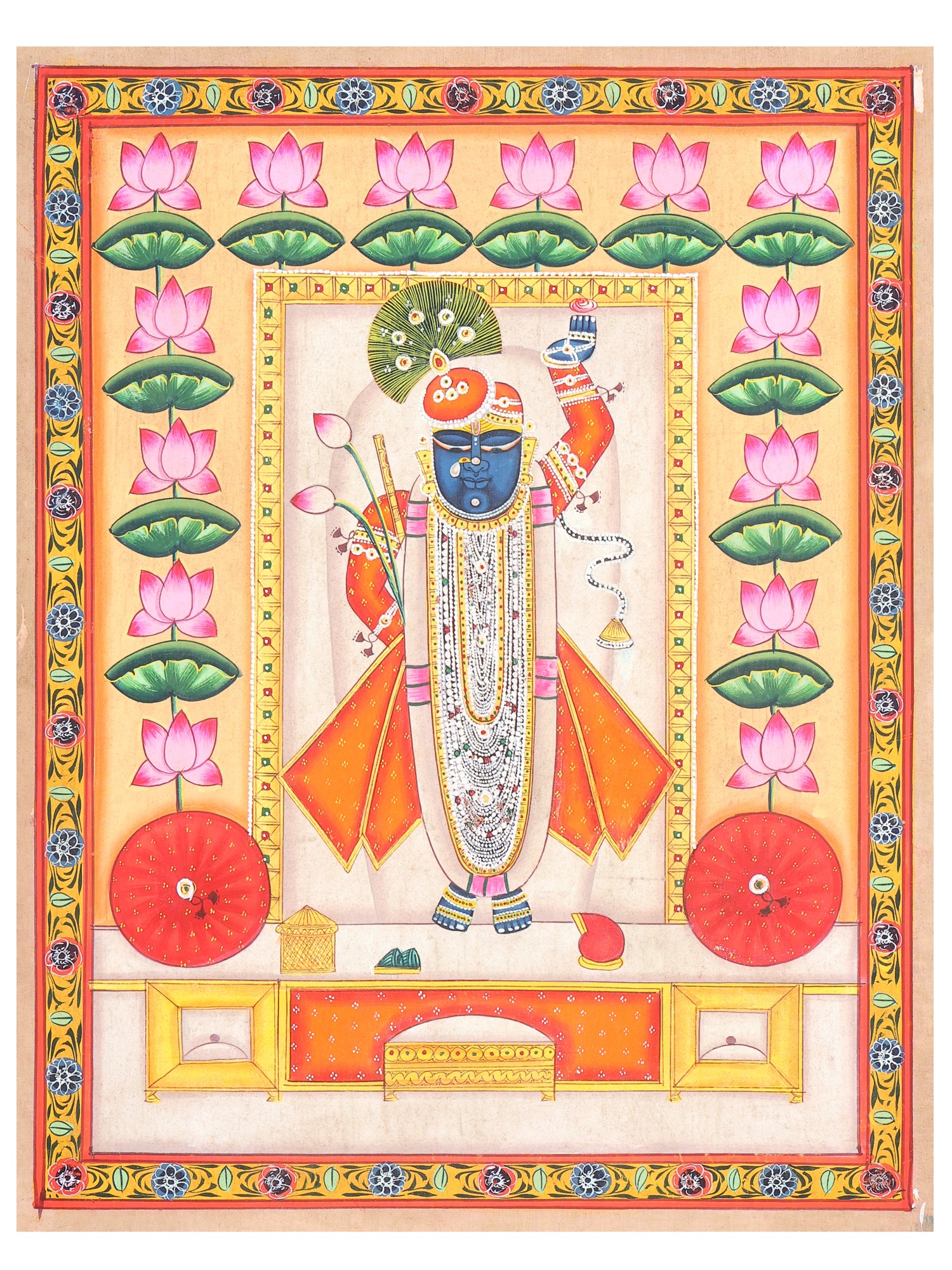 Sacred Shrinathji in Lotus Bloom | Pichwai Painting