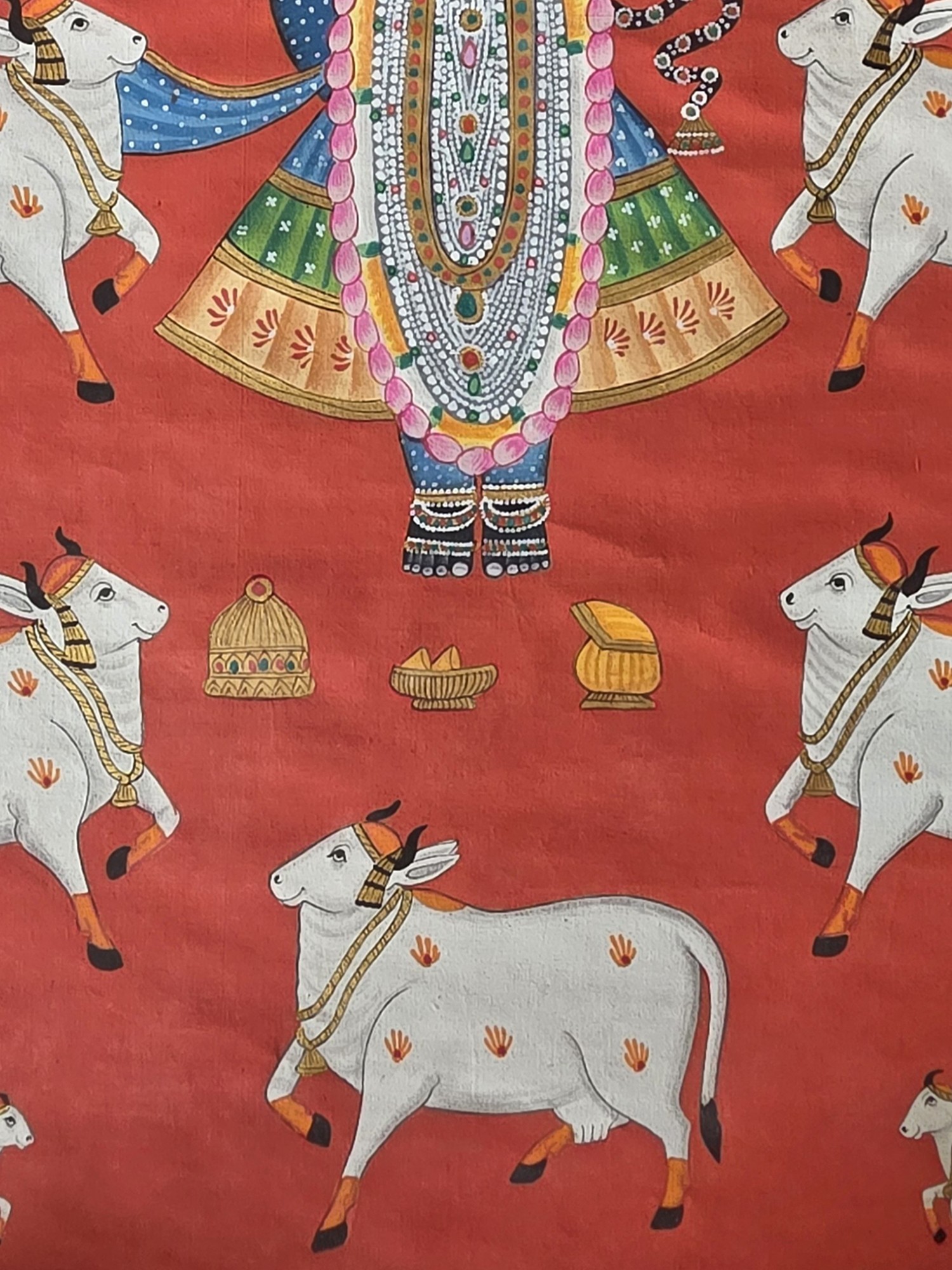 Dancing Lord Krishna with Rukmini and Satyabhama | Pattachitra Painting from Odisha