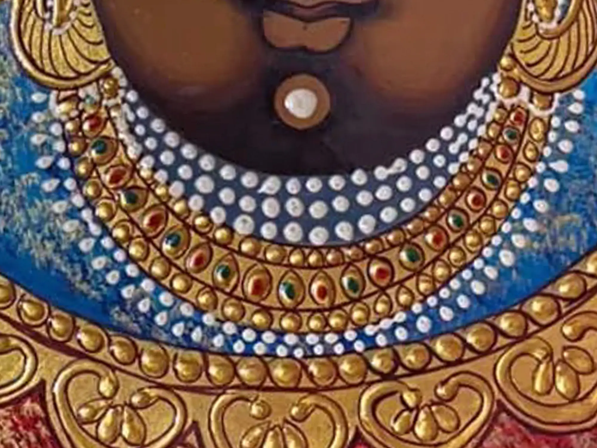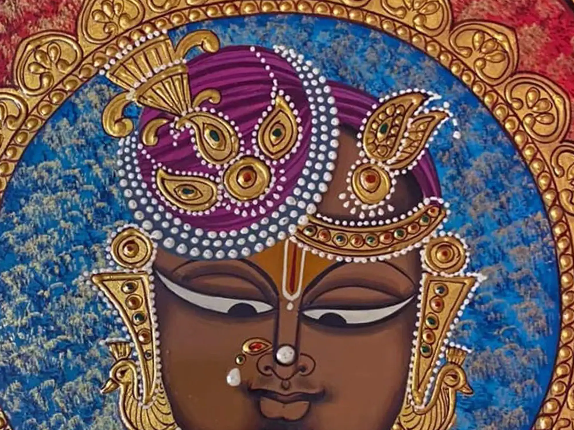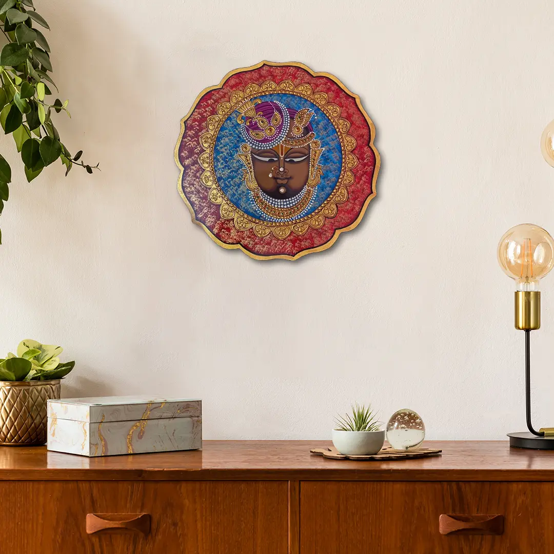 Set on a canvas of MDF (Medium-density fibreboard), this artwork which represents “Bhagwan Shrinathji” will take you to a realm where divinity meets artistic mastery. Adorned regally, “Bhagwan Shrinathji,” the embodiment of “Lord Sri Krishna” in his youthful form, radiates grace and eternal charm. Crafted meticulously by the skilled hands of artist Jagriti Bhardwaj, this masterpiece embodies the essence of devotion and tradition. Displayed in homes or sacred spaces, this sacred mandala invokes serenity and devotion, fostering a connection to the almighty.