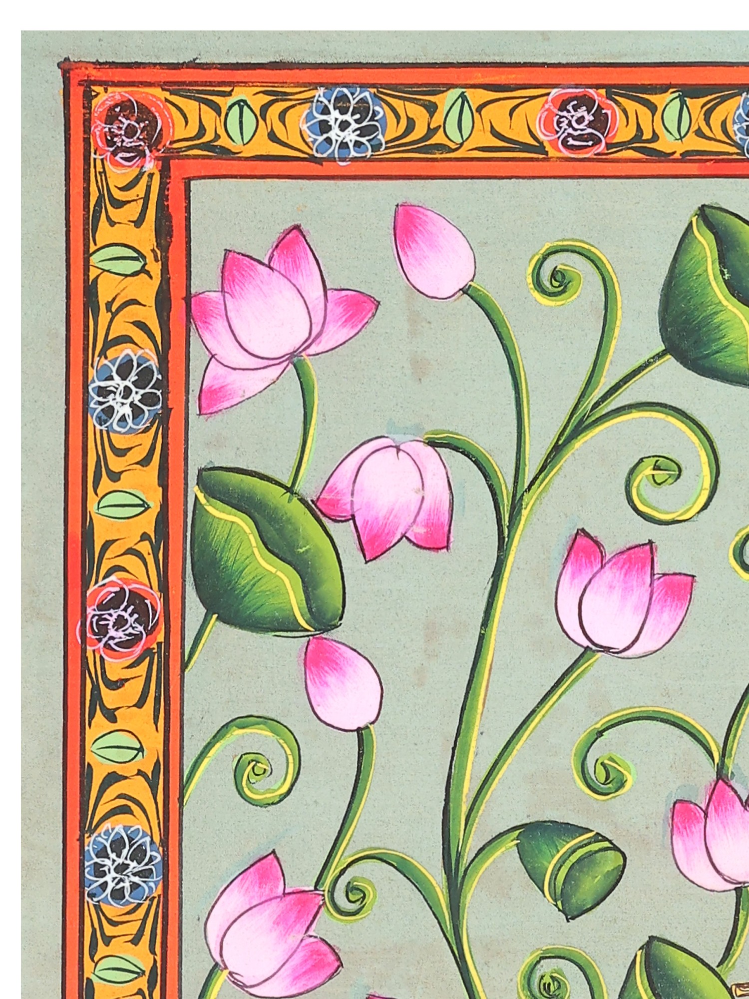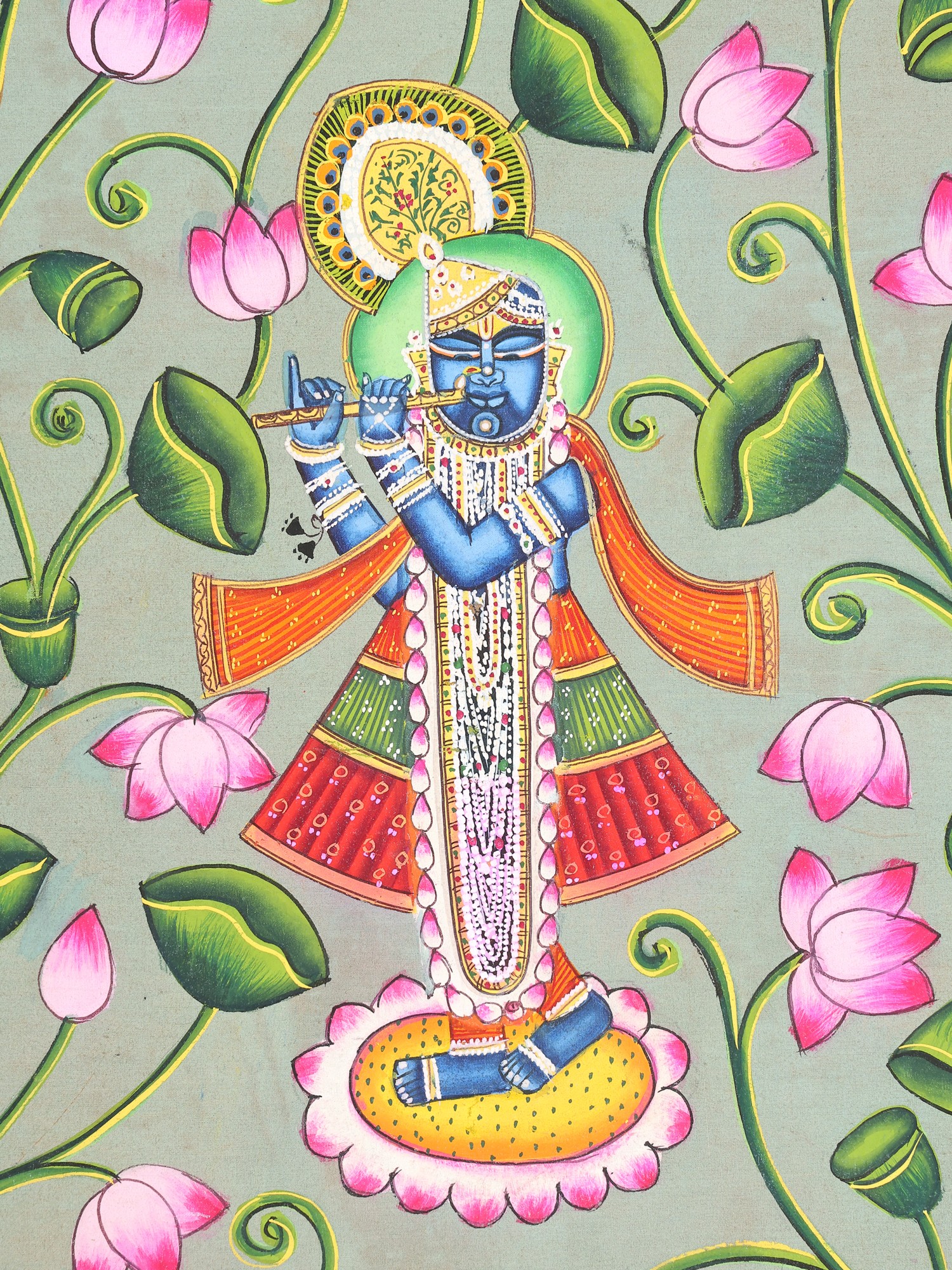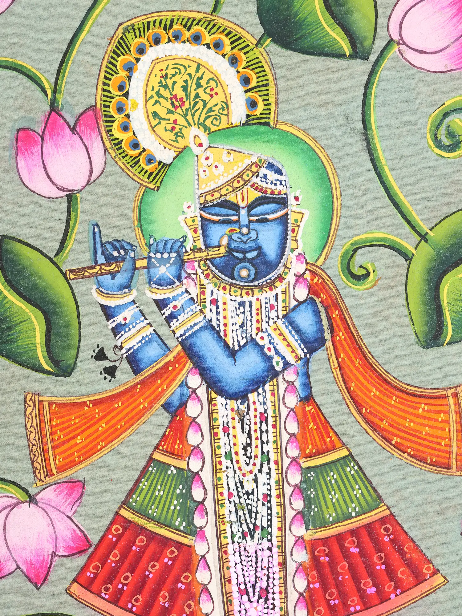 Sacred Shrinathji in Lotus Bloom | Pichwai Painting