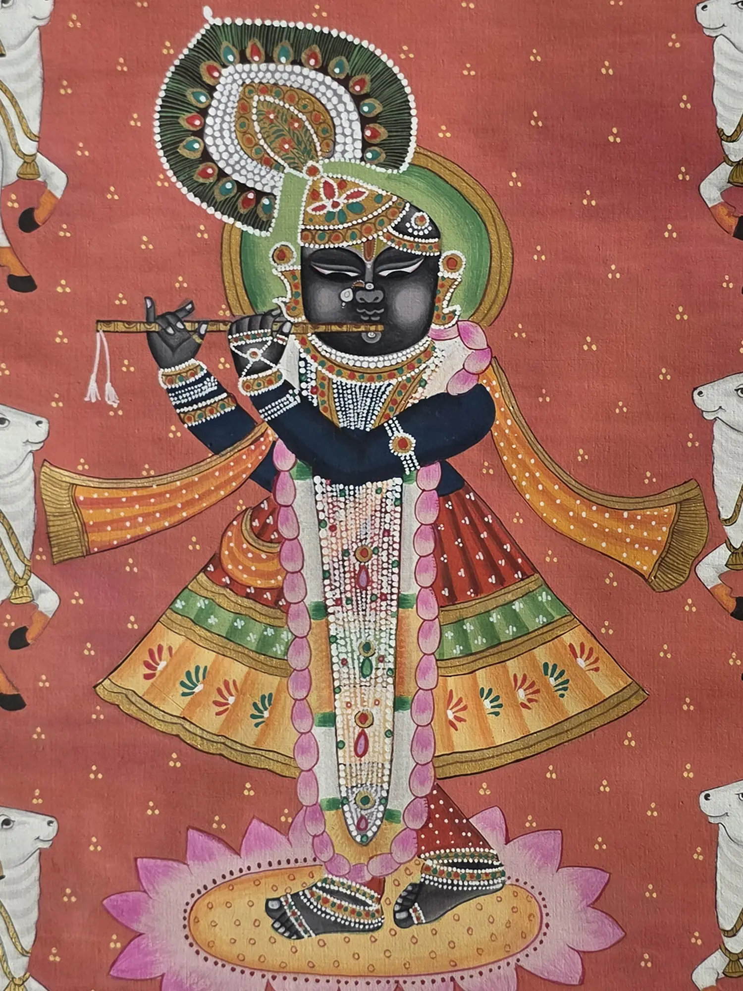Lord Shrinathji With Cow | Watercolor On Cotton | Pichwai Art