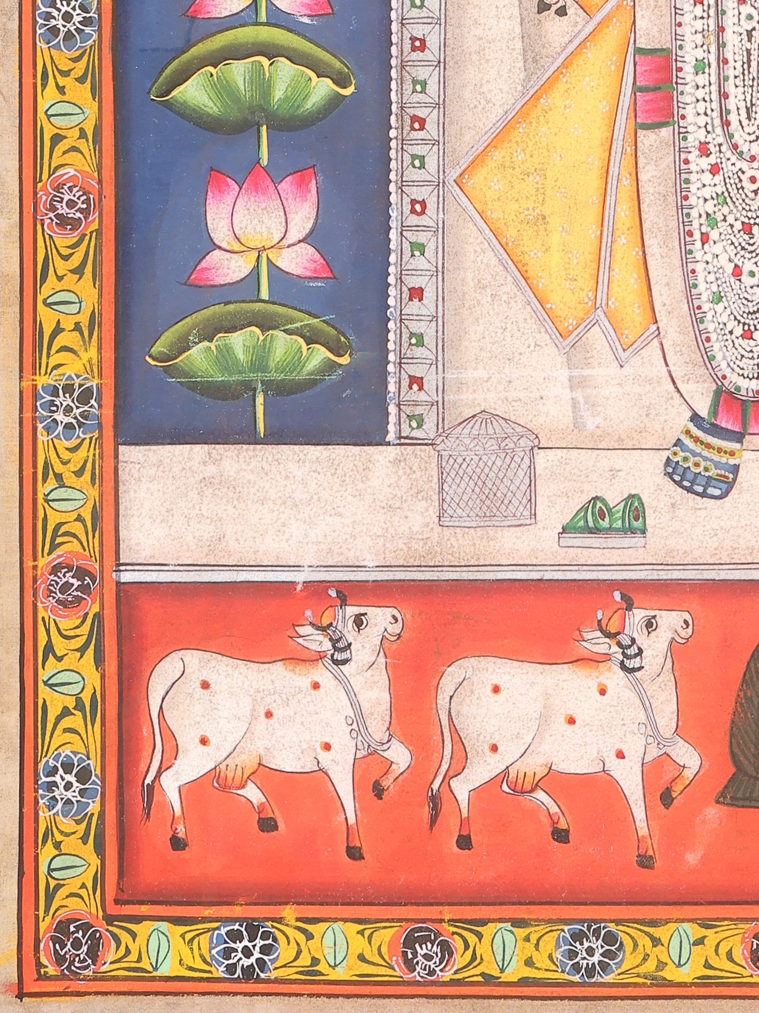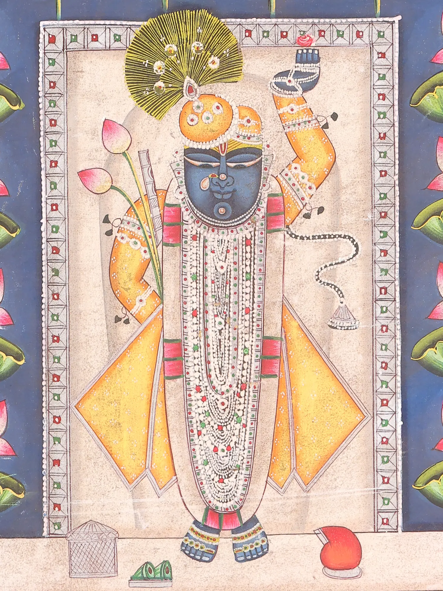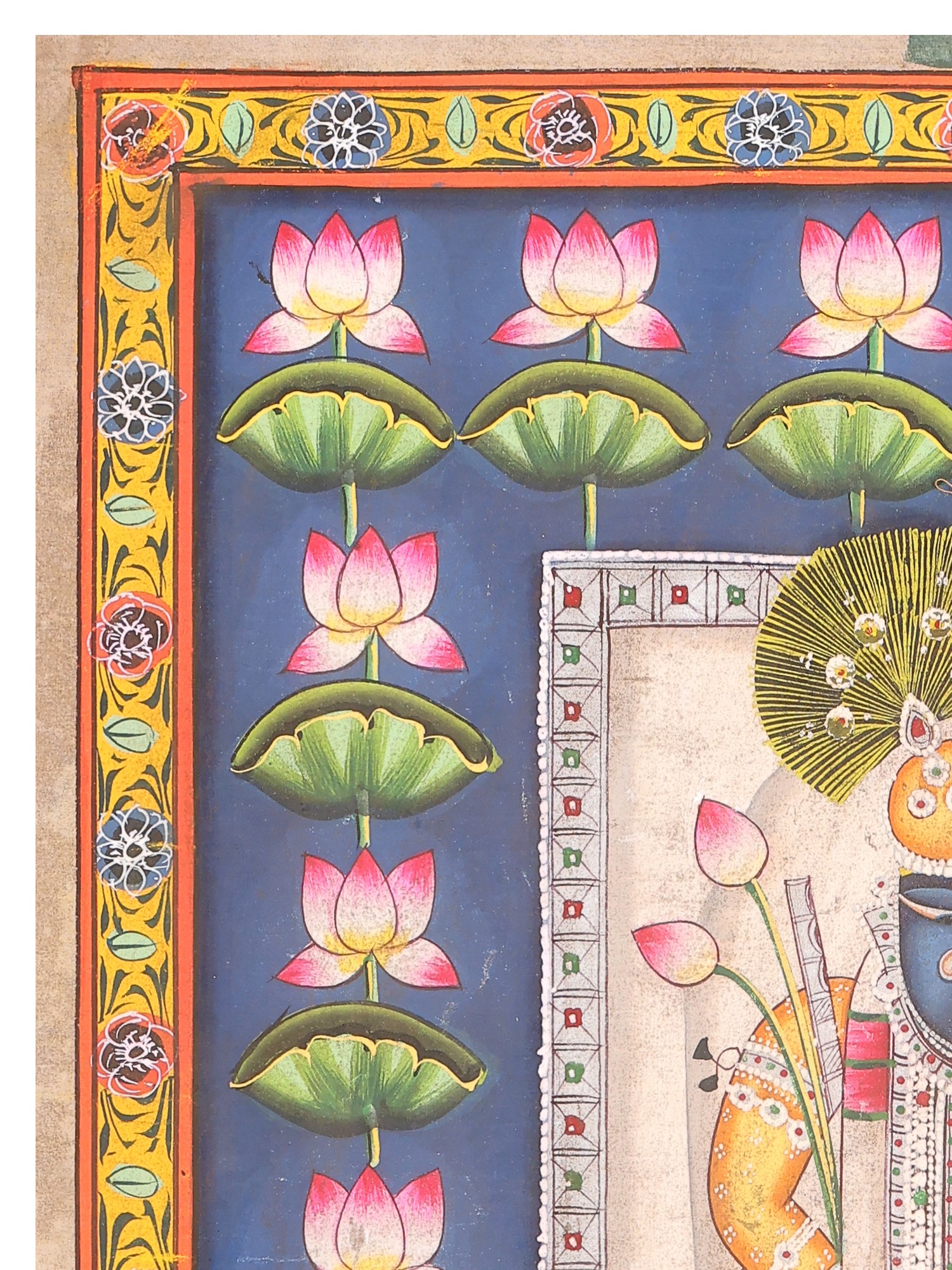Sacred Shrinathji in Lotus Bloom | Pichwai Painting