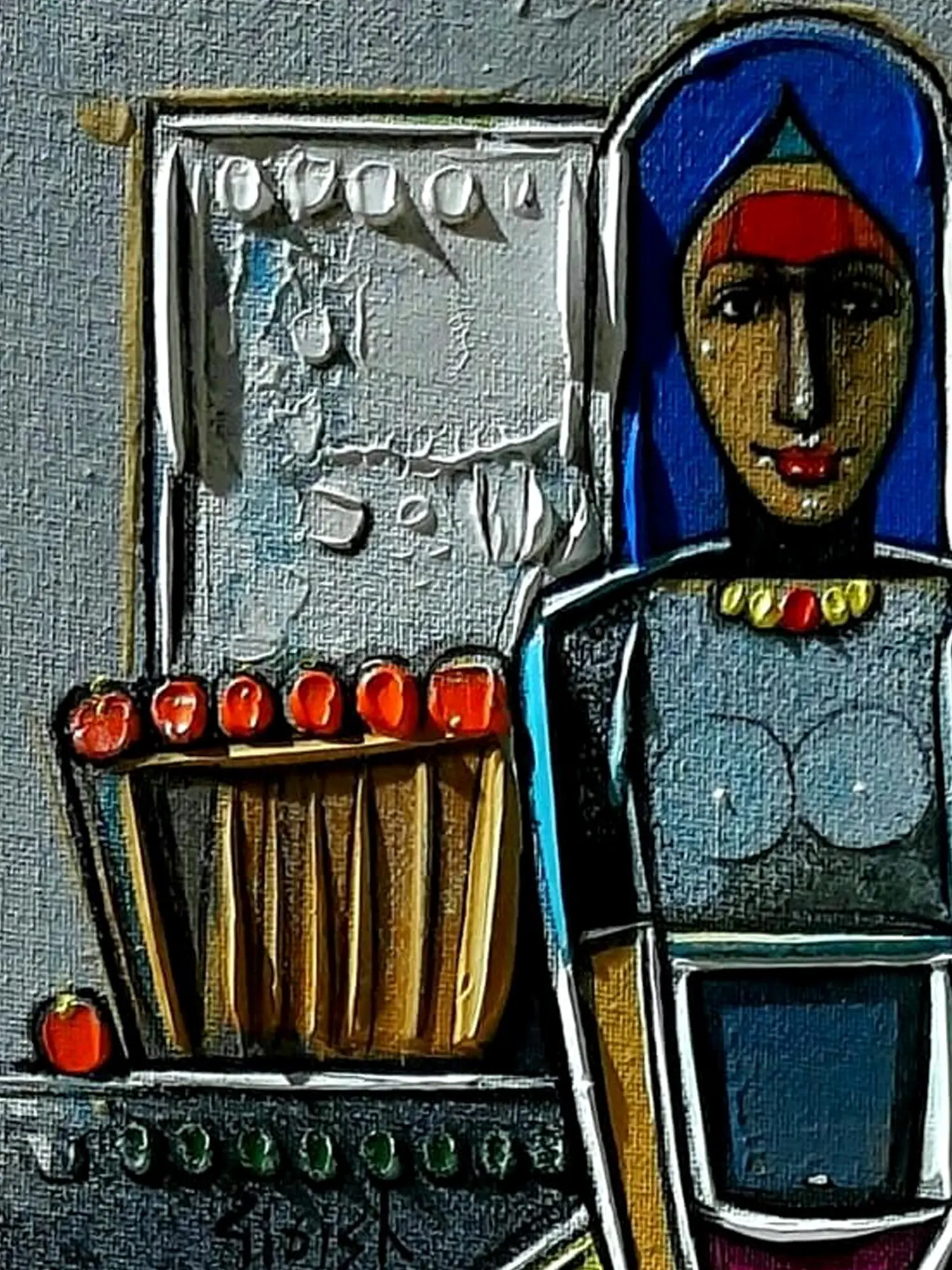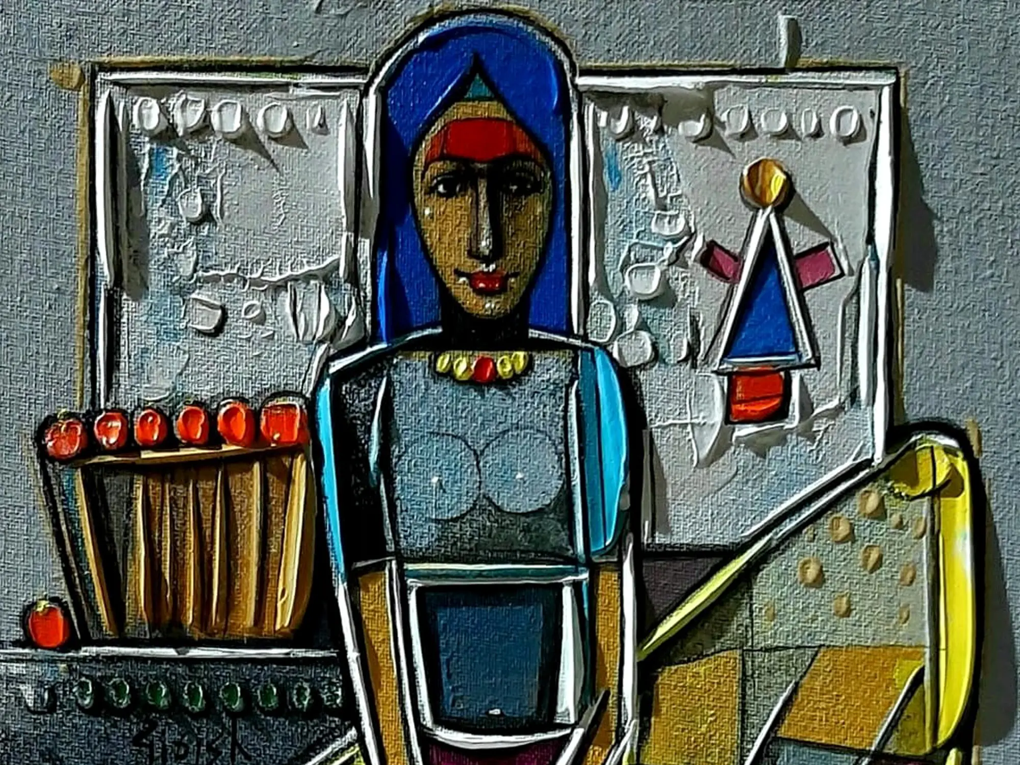 Turbaned Man Playing Drum | Painting by Girish Adannavar