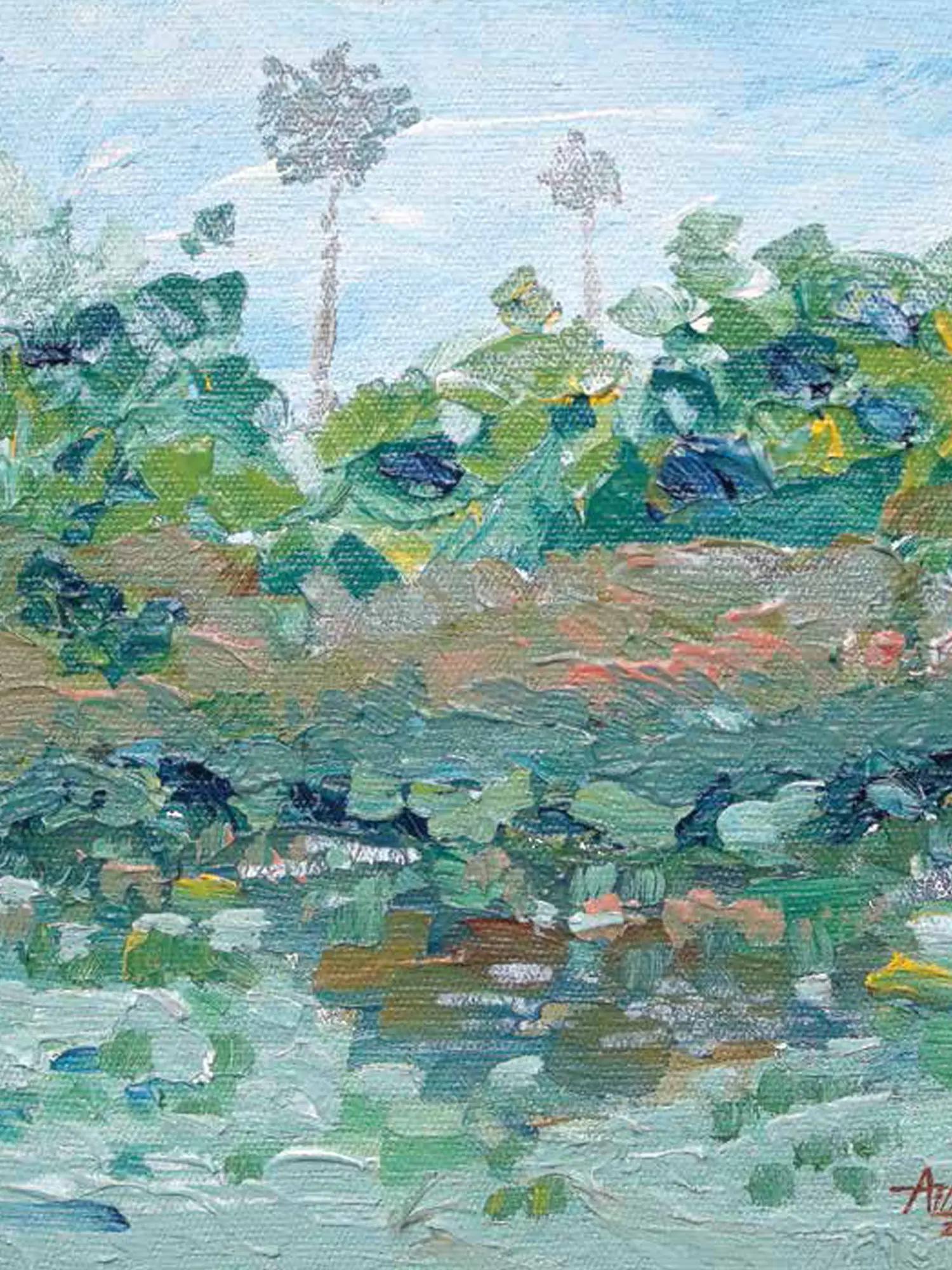 Forest Landscape in Blue Sky - With Frame | Acrylic Color | By Parisha Thukral